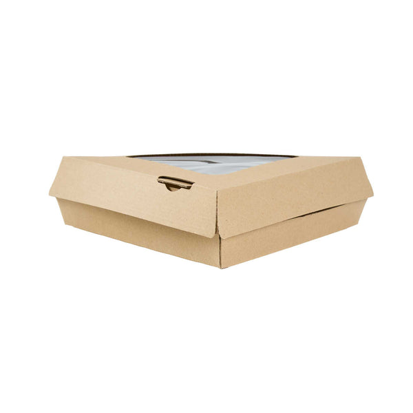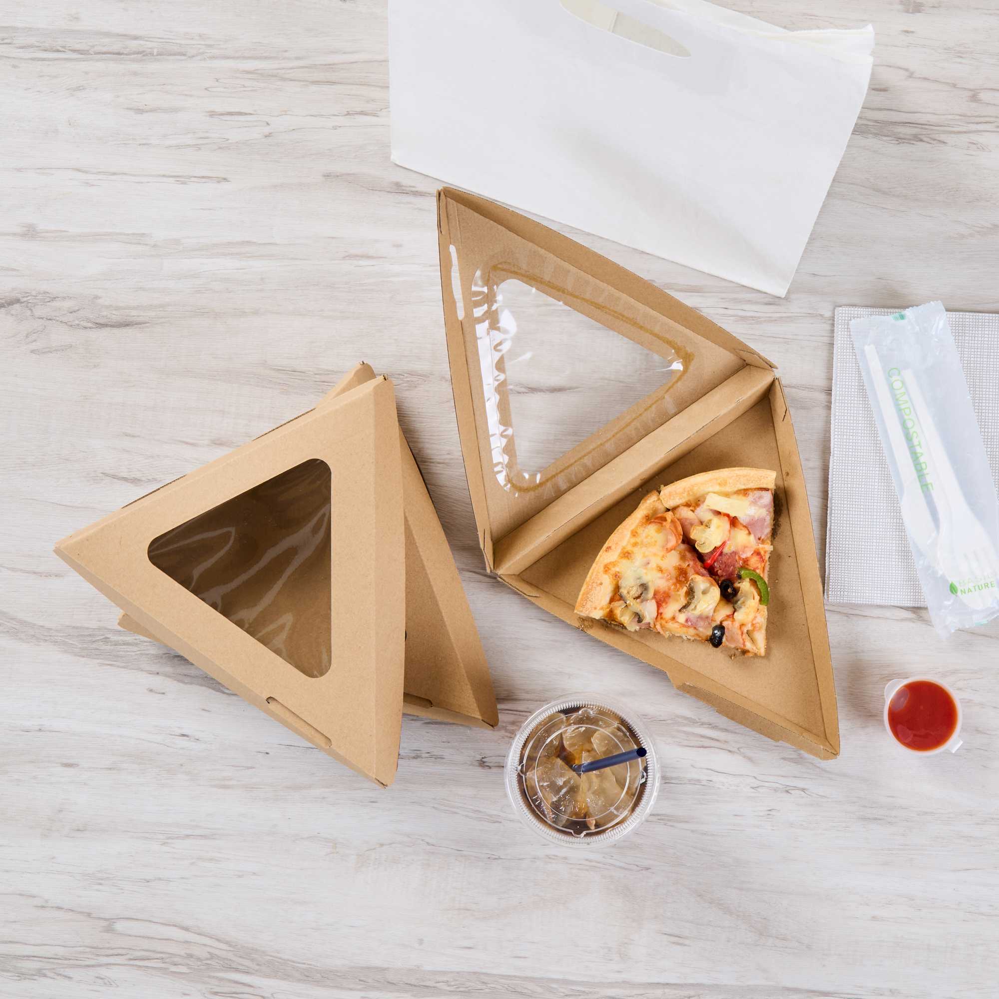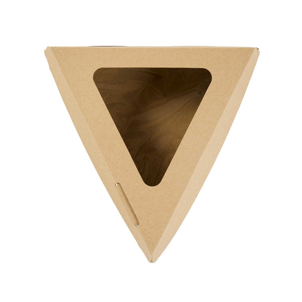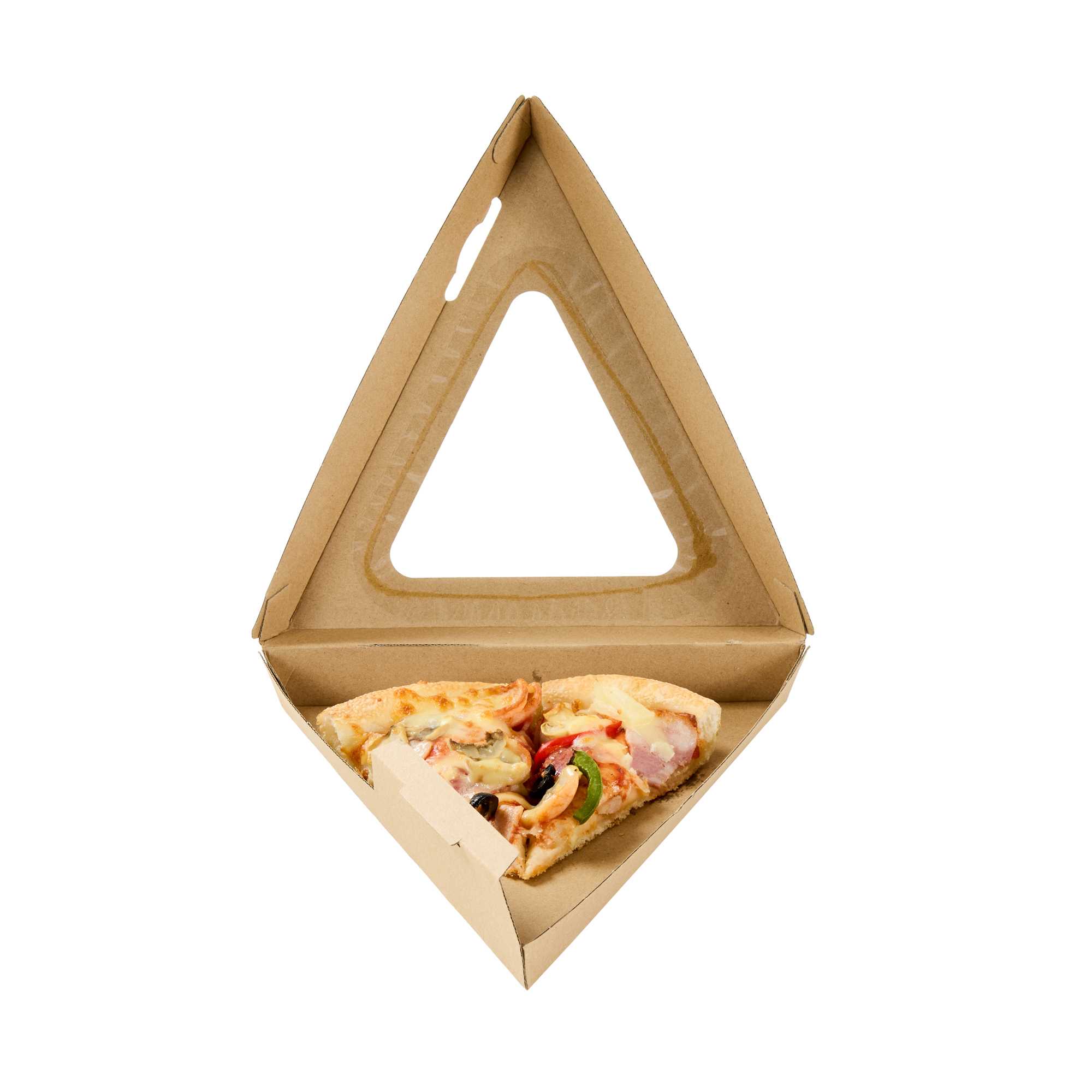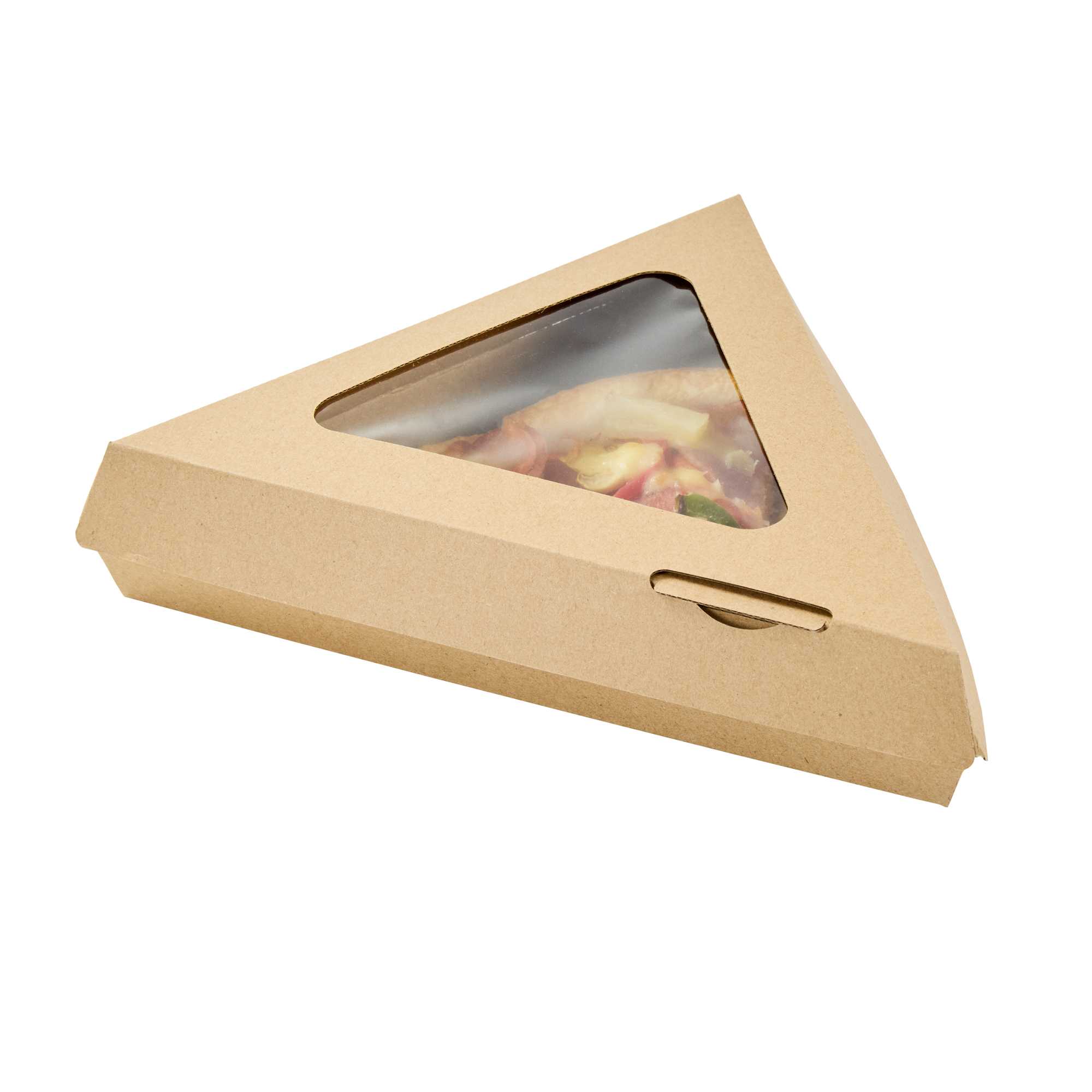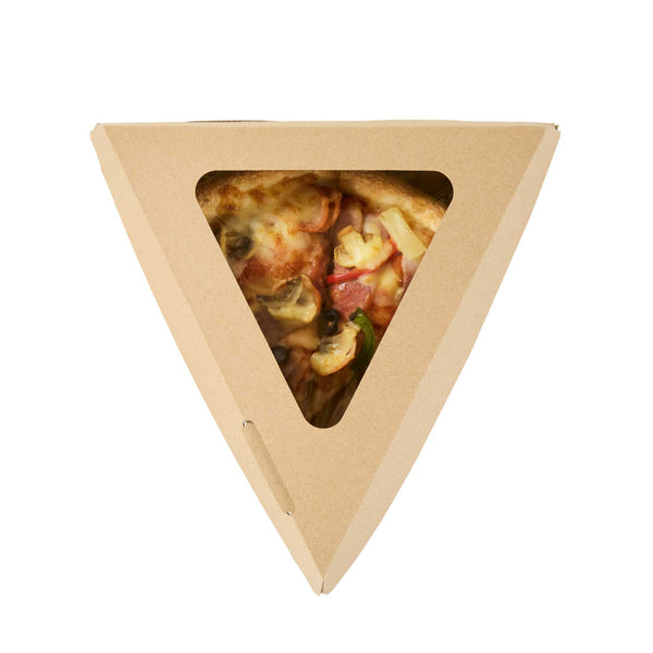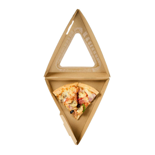 KRAFT PAPER CORRUGATED PIZZA SLICE BOX - CLAMSHELL, WITH PLA WINDOW