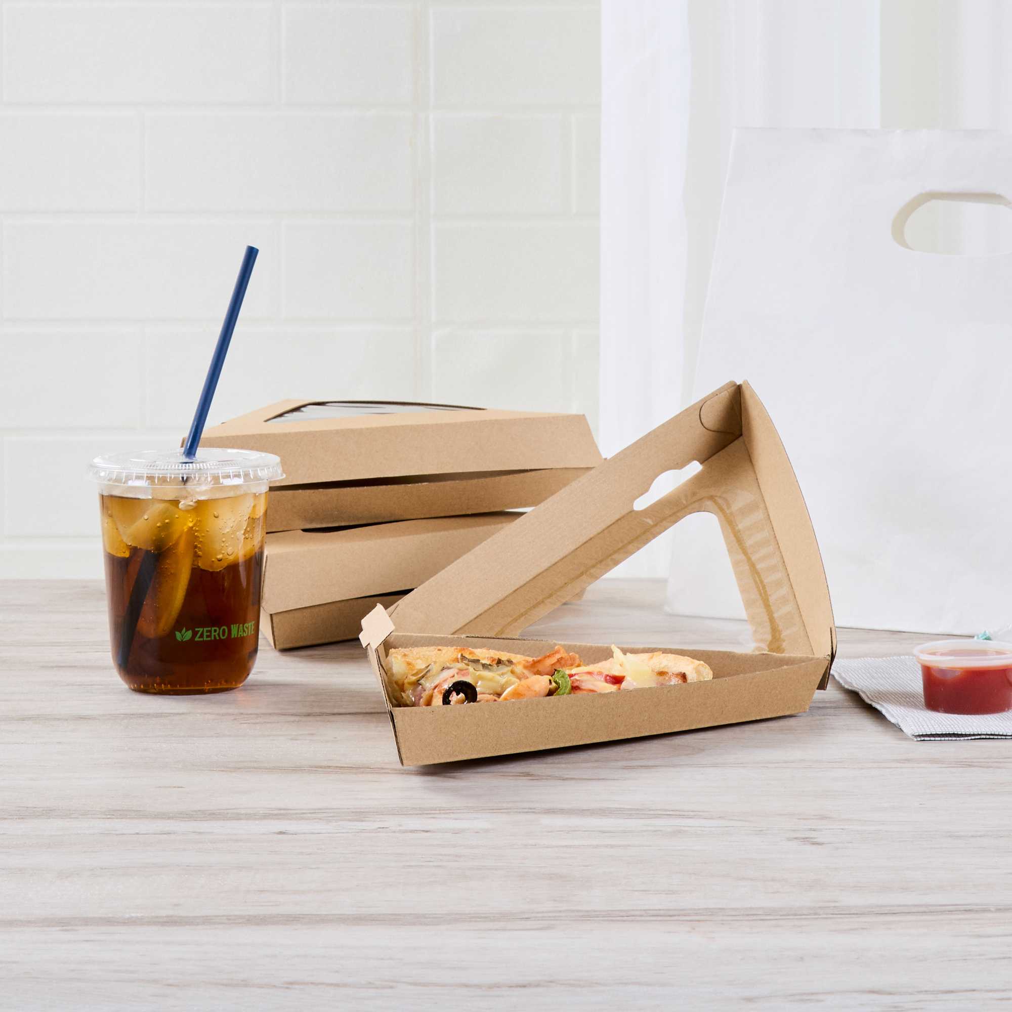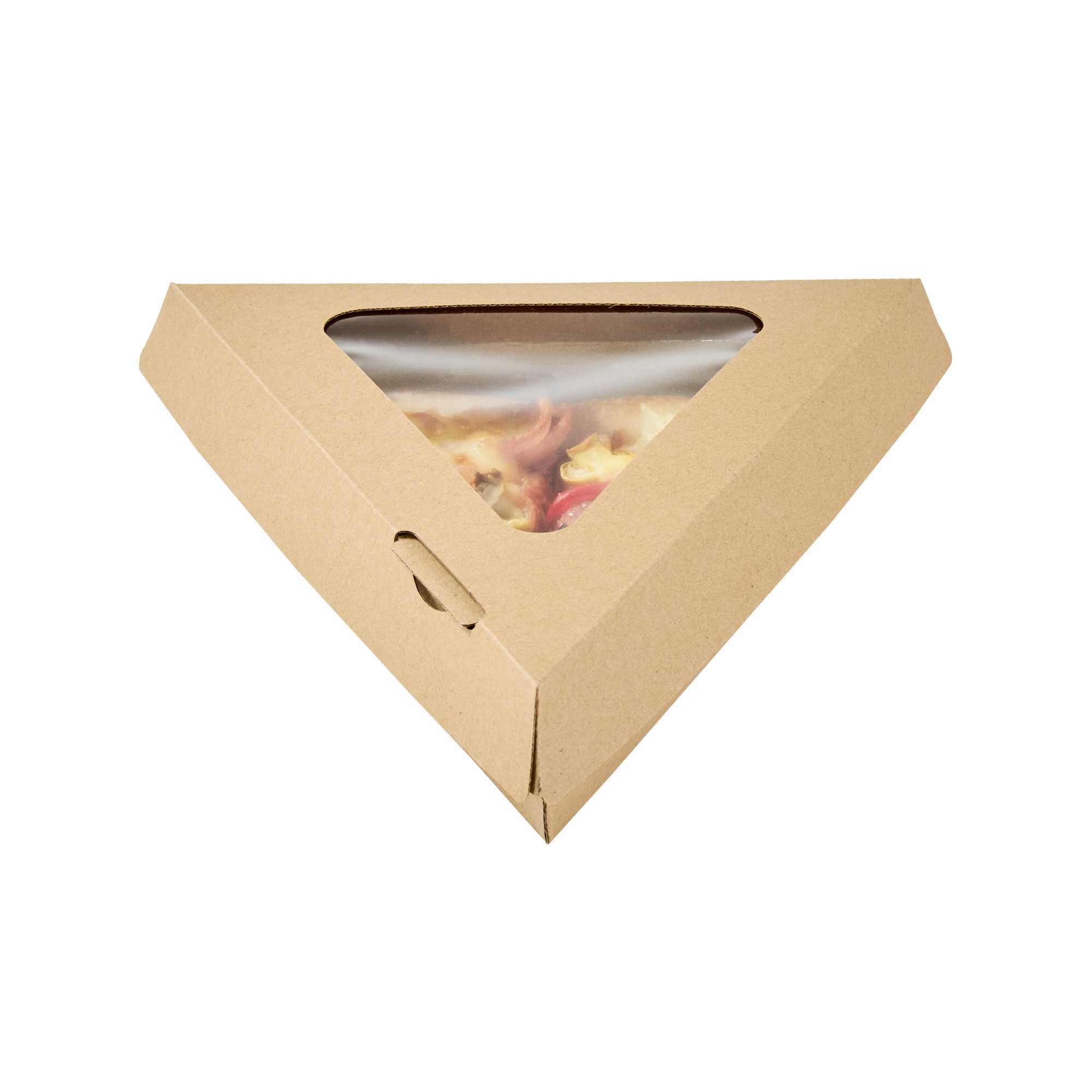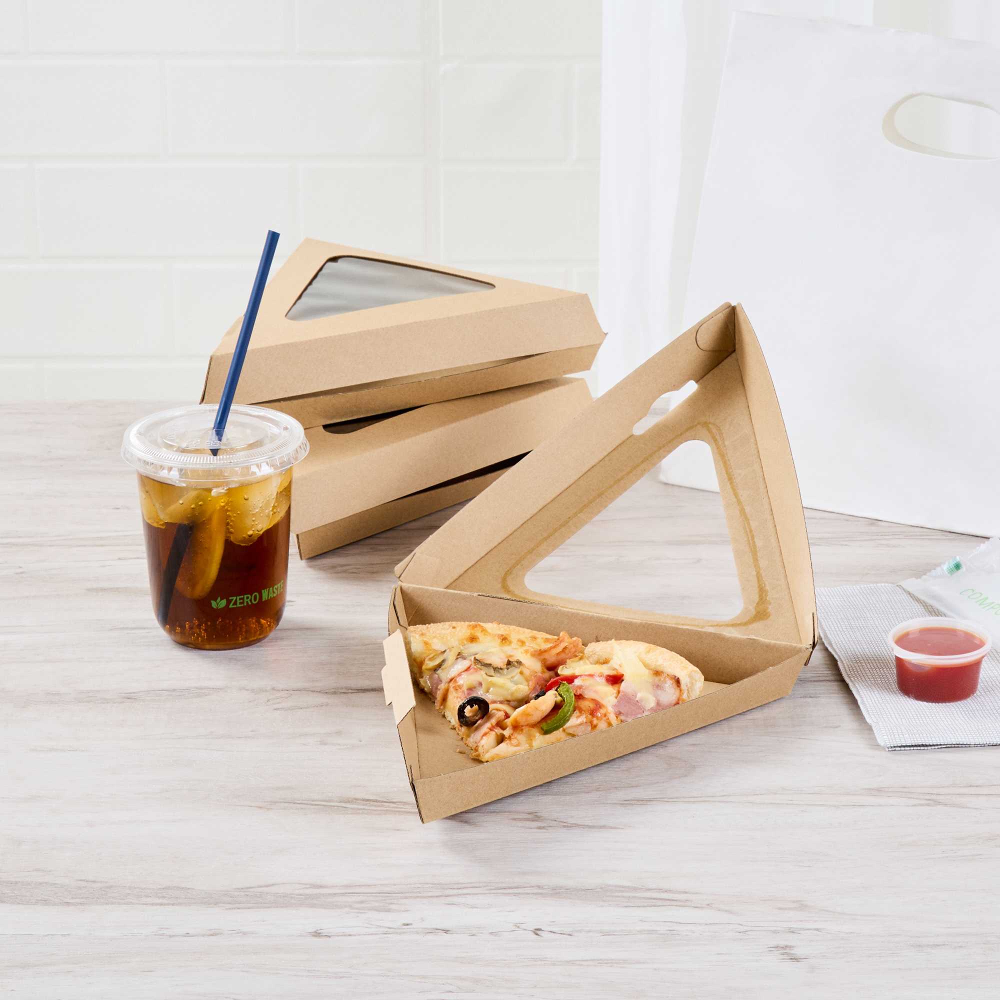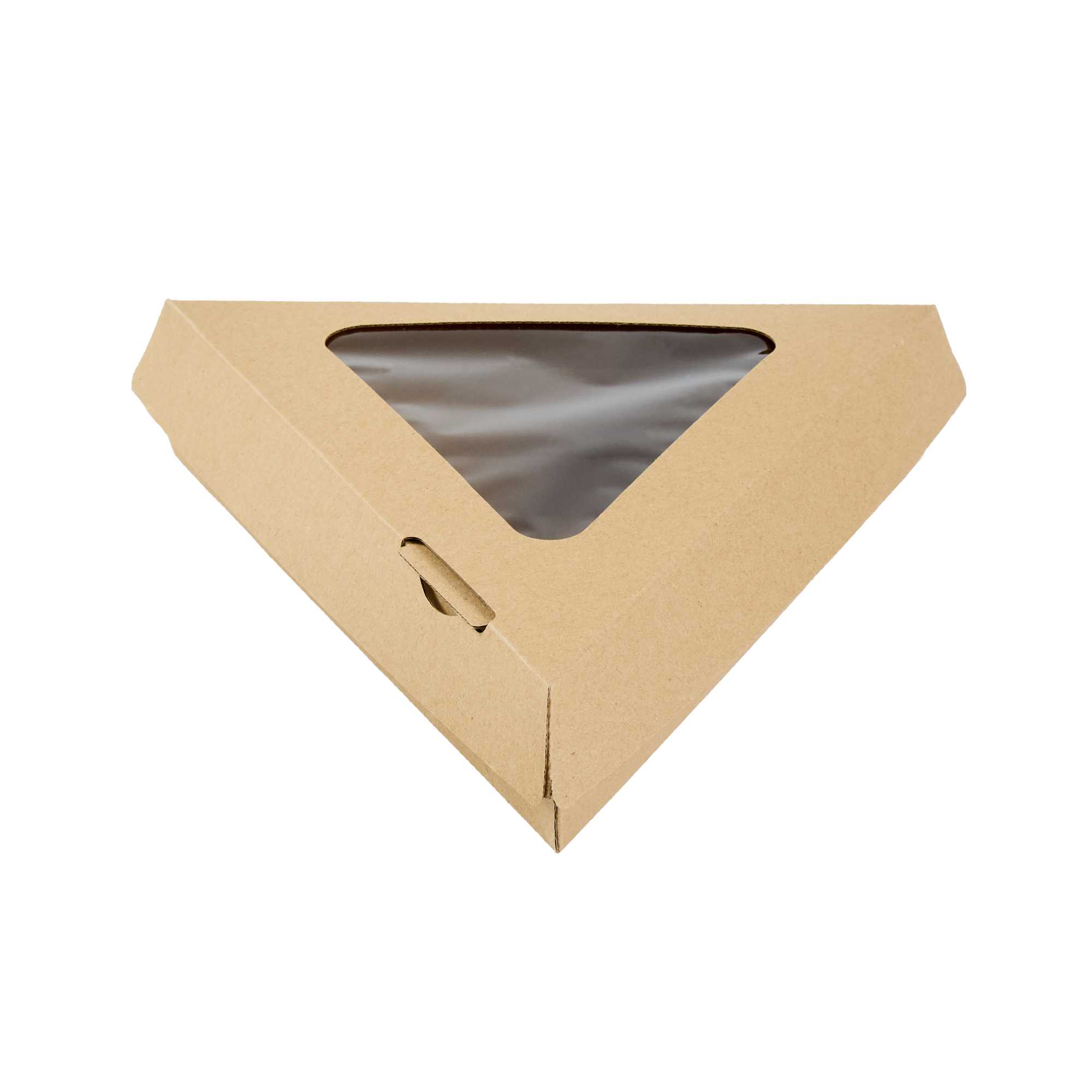 KRAFT PAPER CORRUGATED PIZZA SLICE BOX - CLAMSHELL, WITH PLA WINDOW