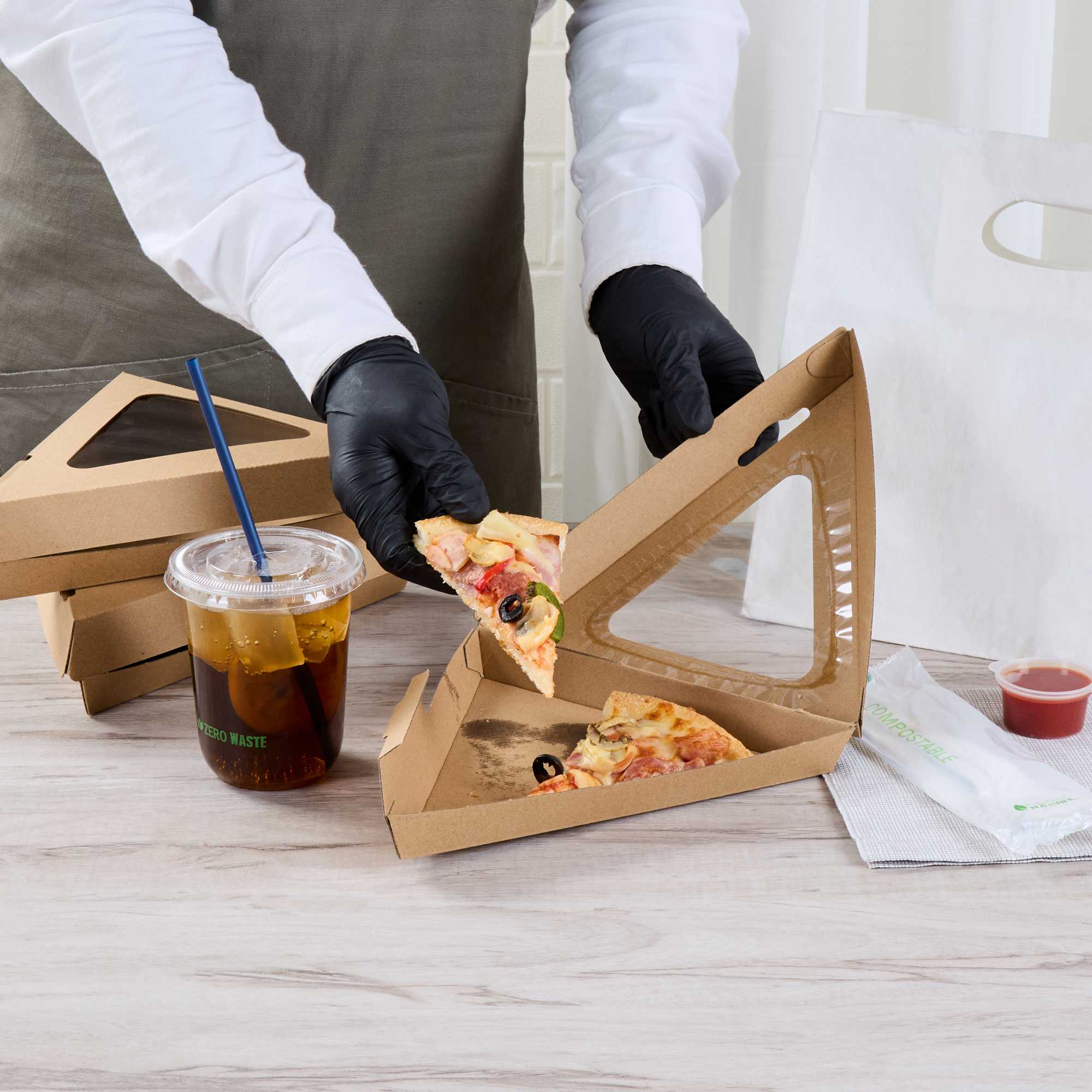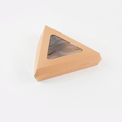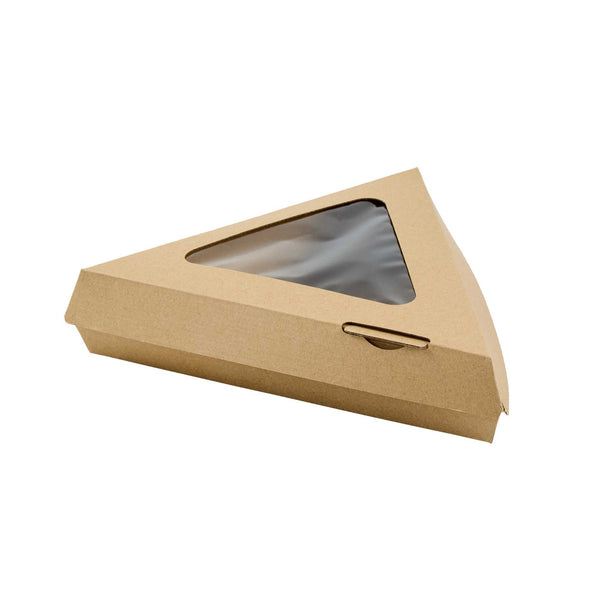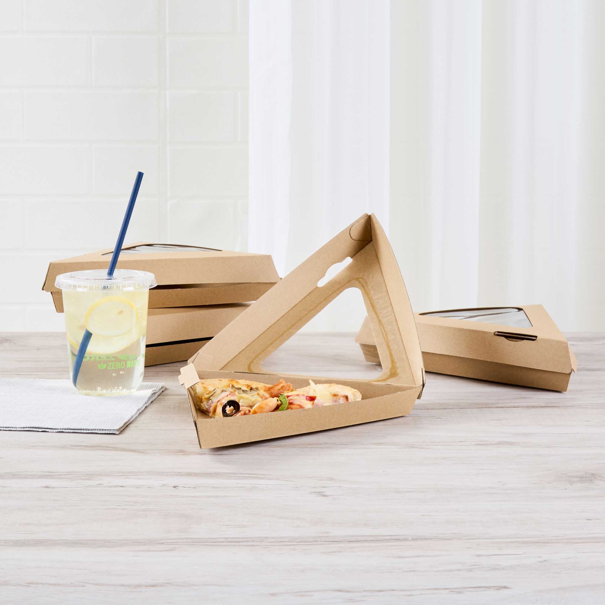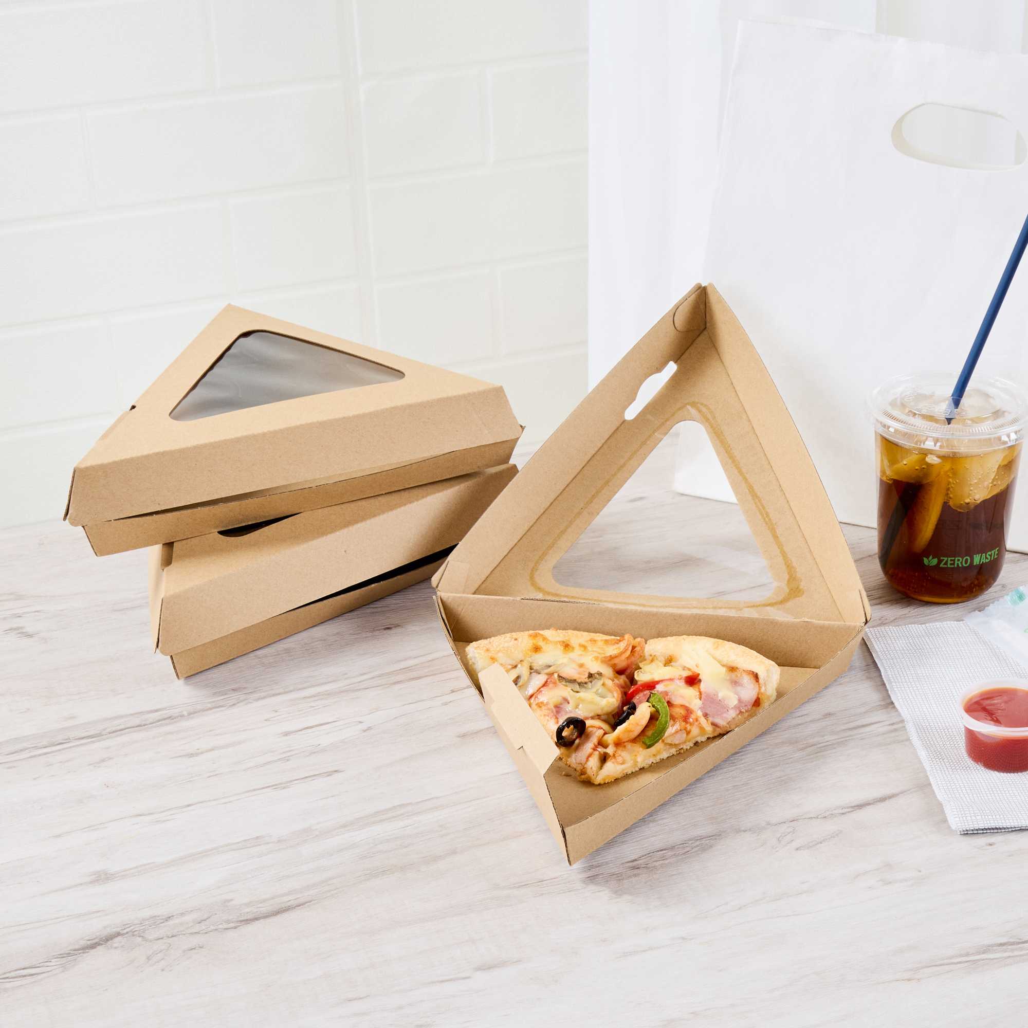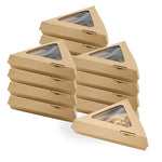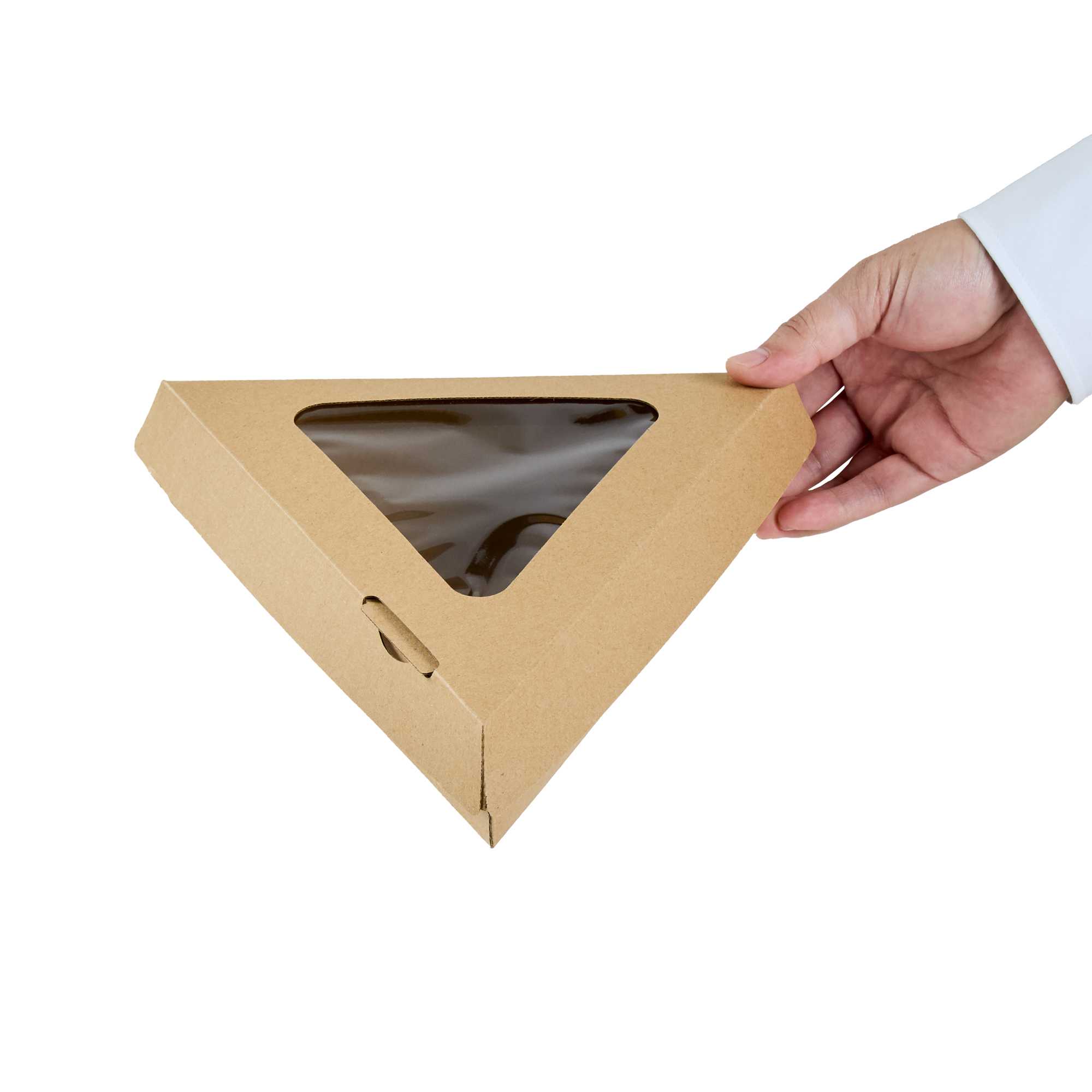 KRAFT PAPER CORRUGATED PIZZA SLICE BOX - CLAMSHELL, WITH PLA WINDOW