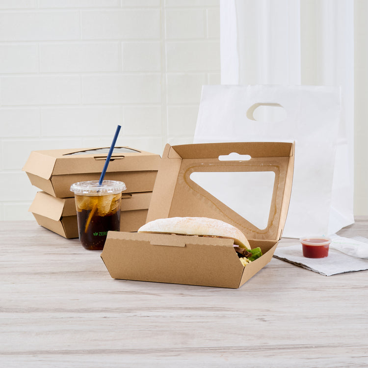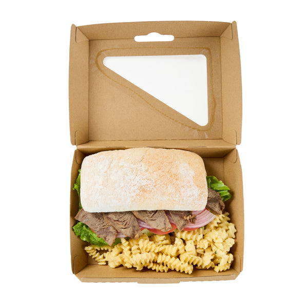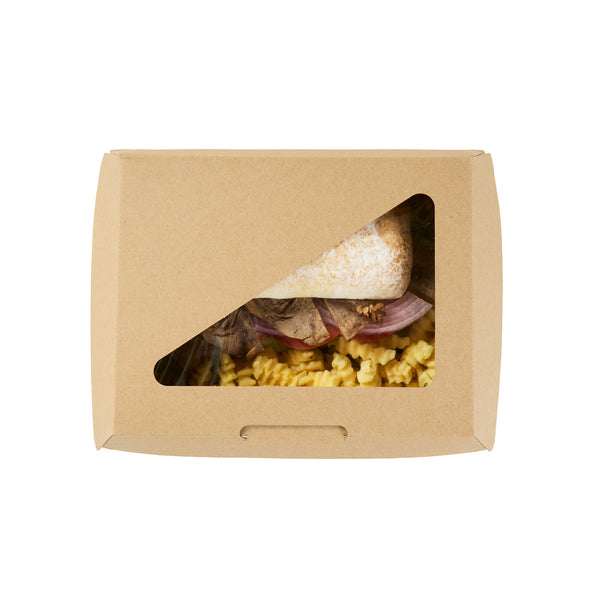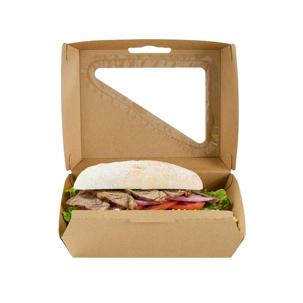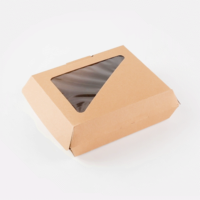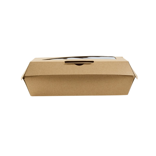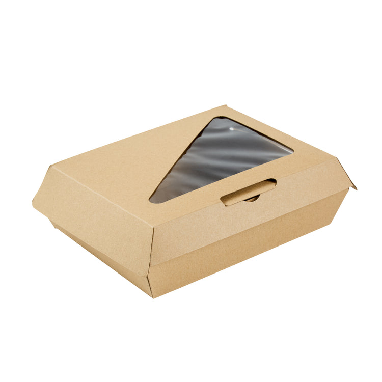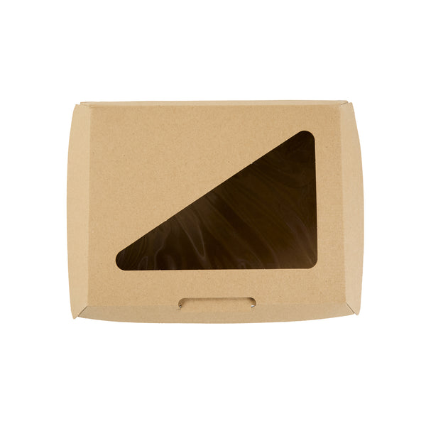 RECTANGLE KRAFT PAPER CORRUGATED CLAMSHELL CONTAINER - WITH PLA WINDOW