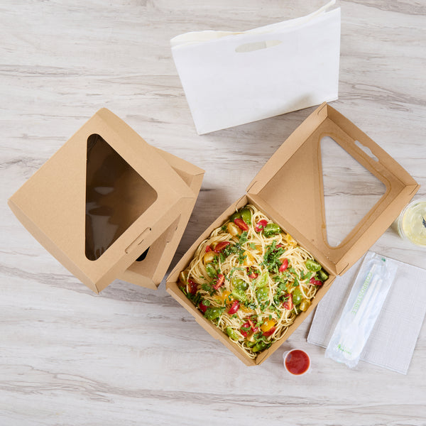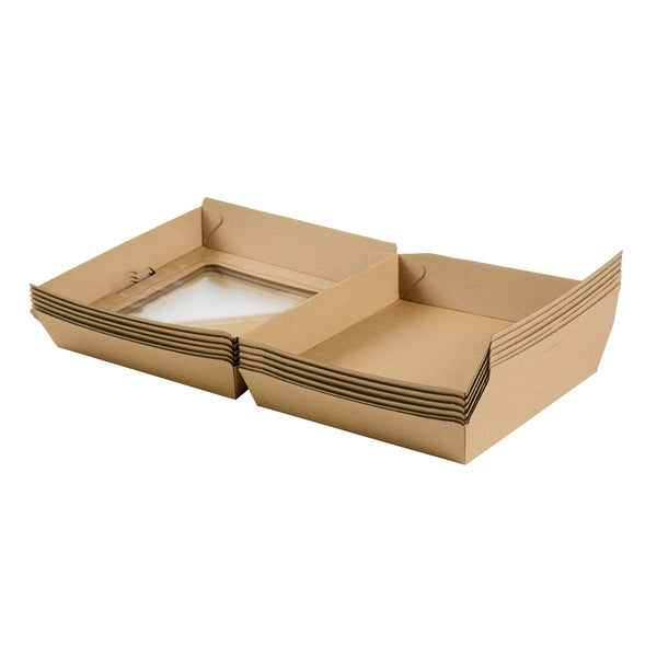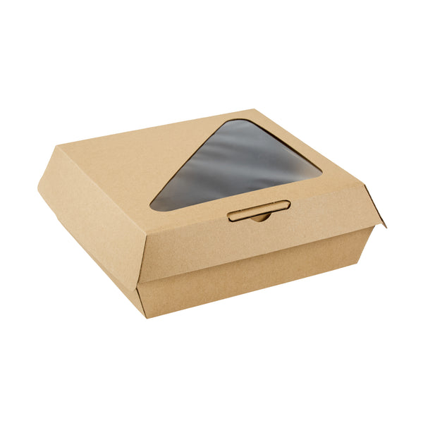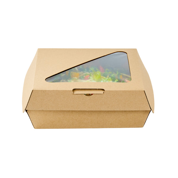 RECTANGLE KRAFT PAPER CORRUGATED CLAMSHELL CONTAINER - WITH PLA WINDOW