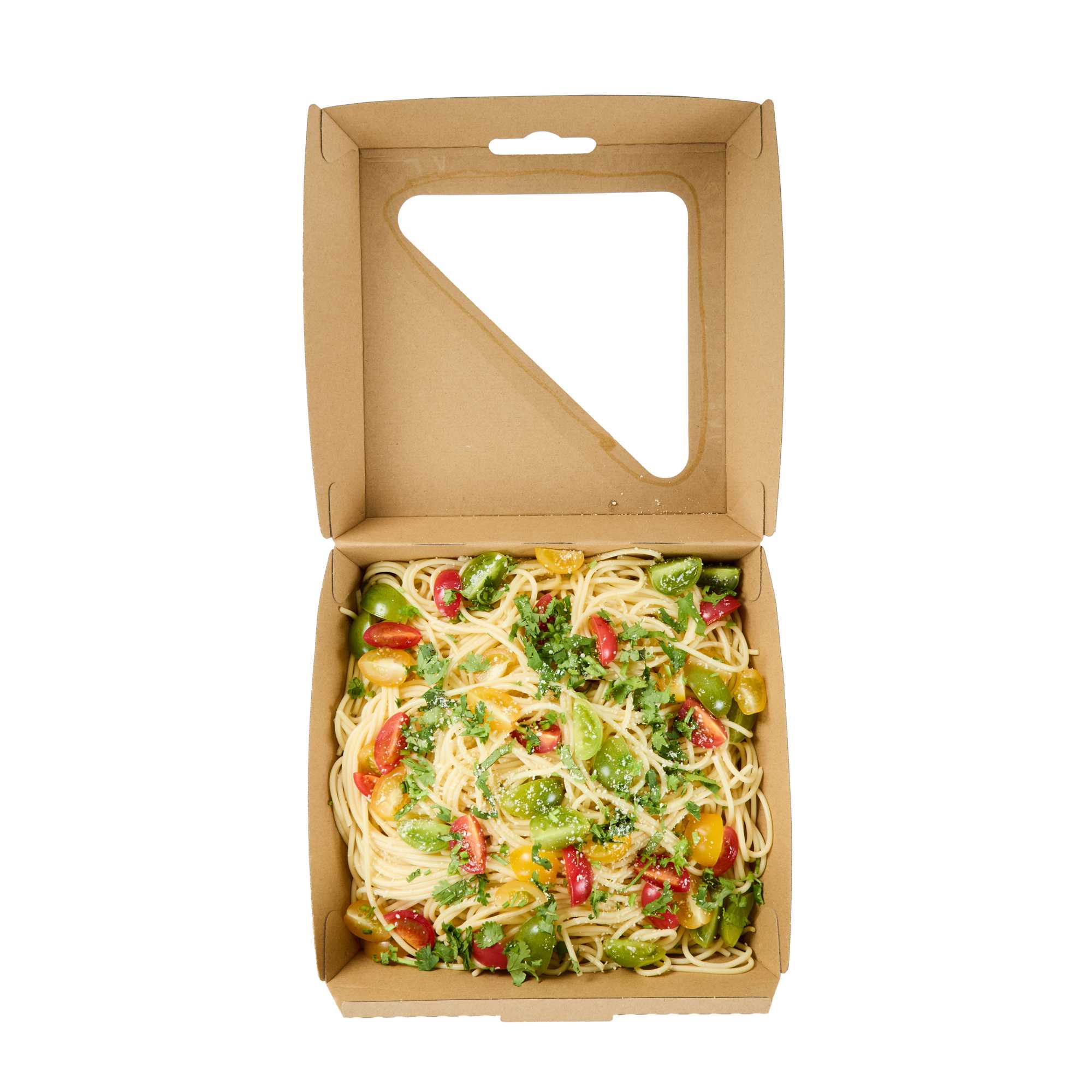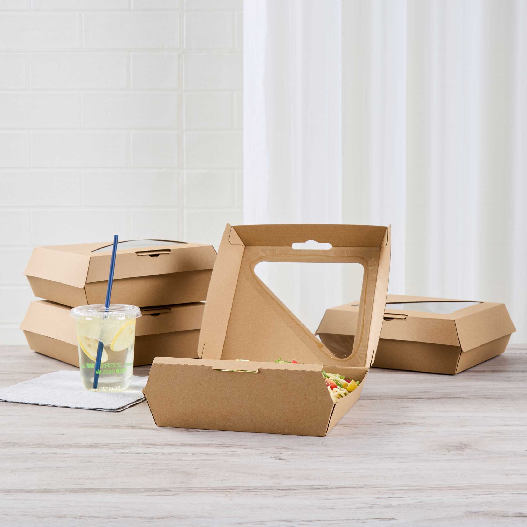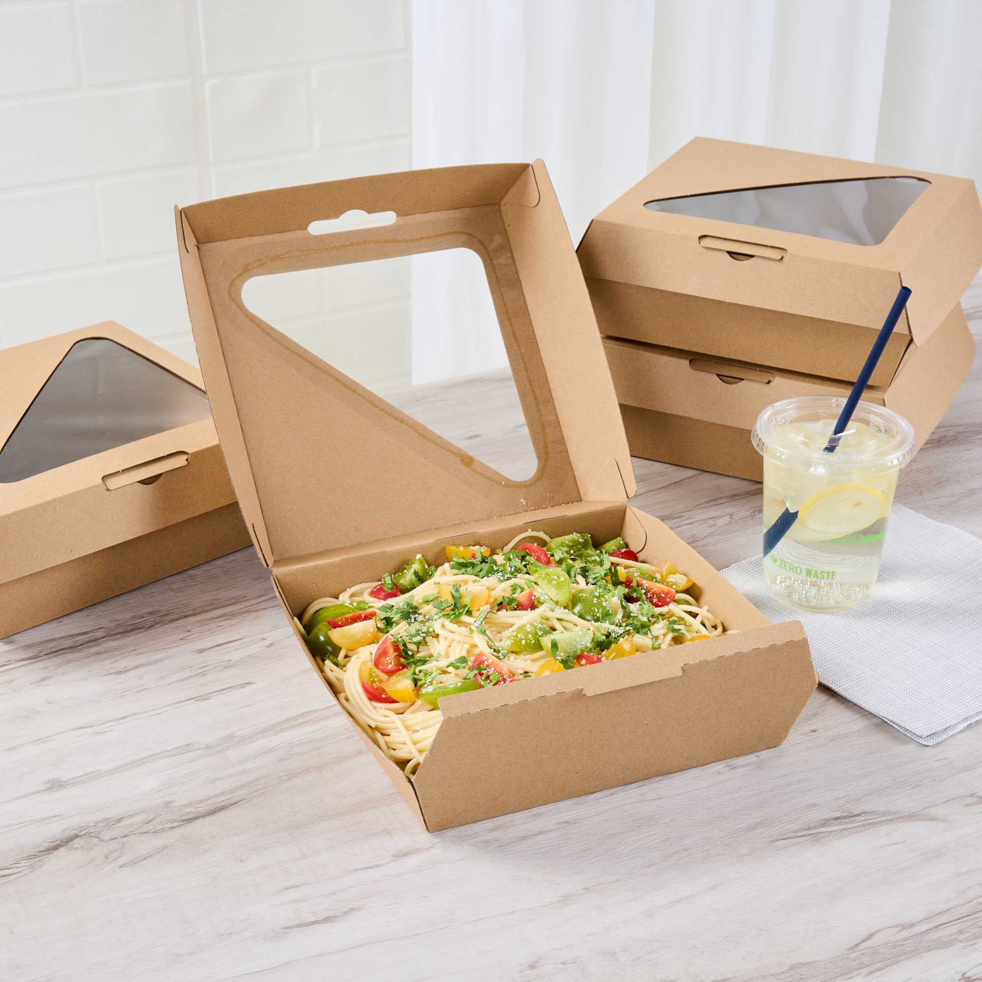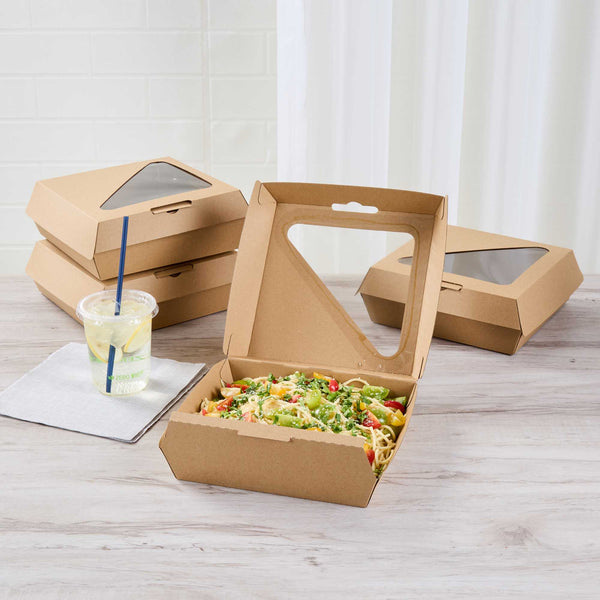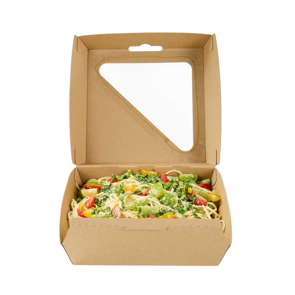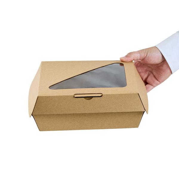 RECTANGLE KRAFT PAPER CORRUGATED CLAMSHELL CONTAINER - WITH PLA WINDOW