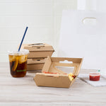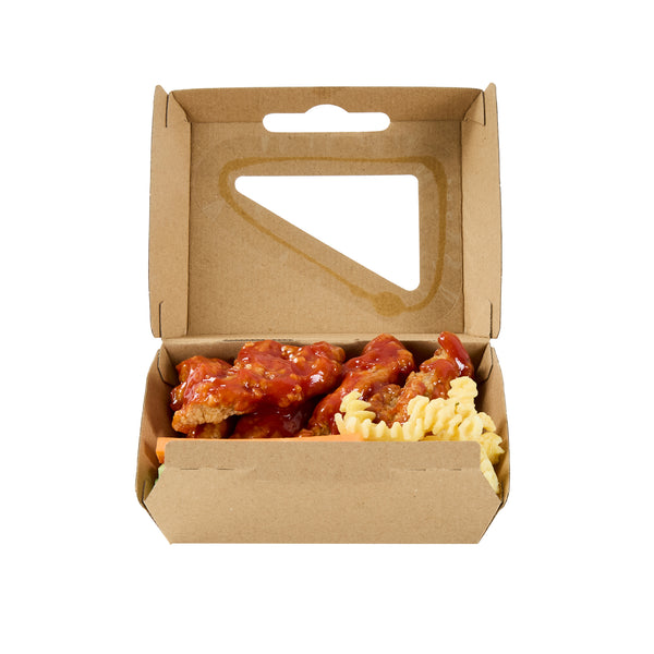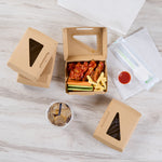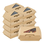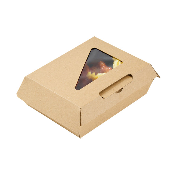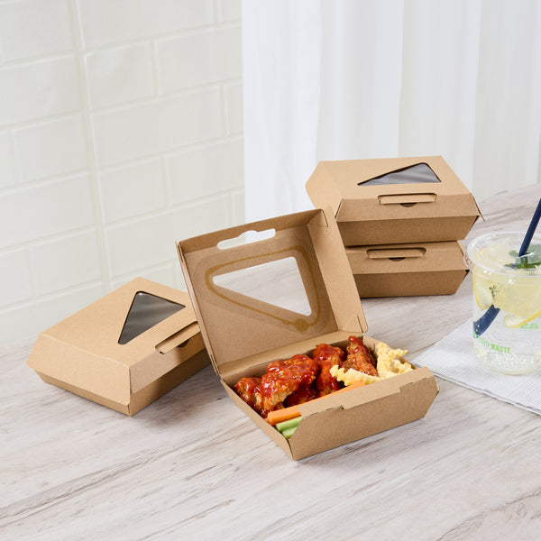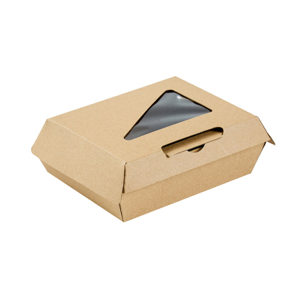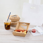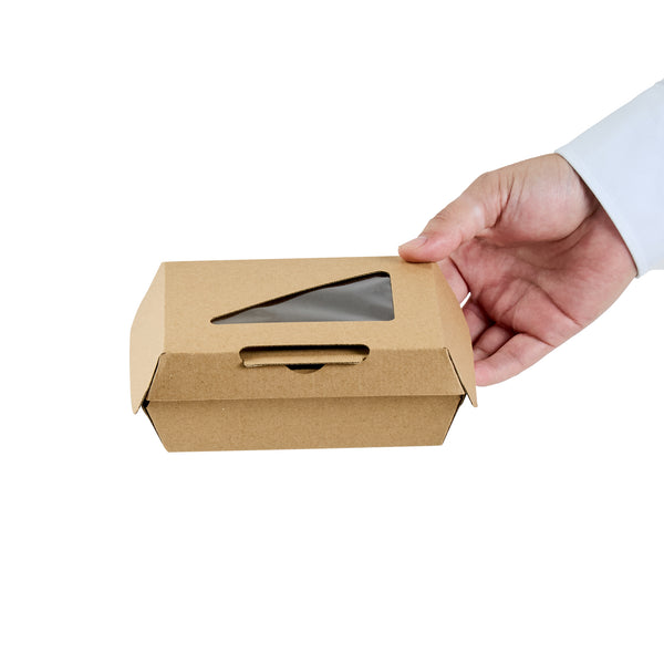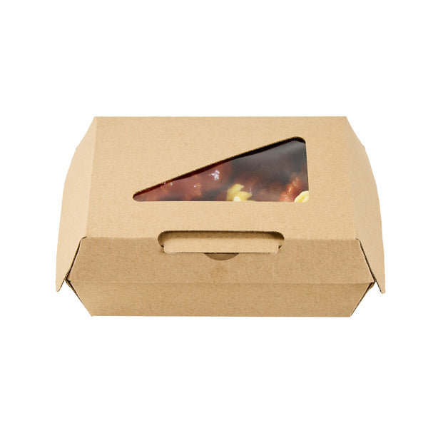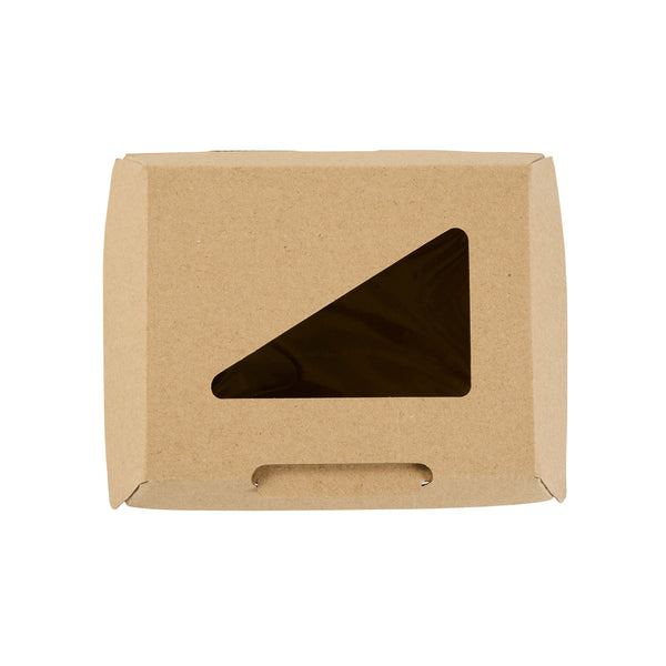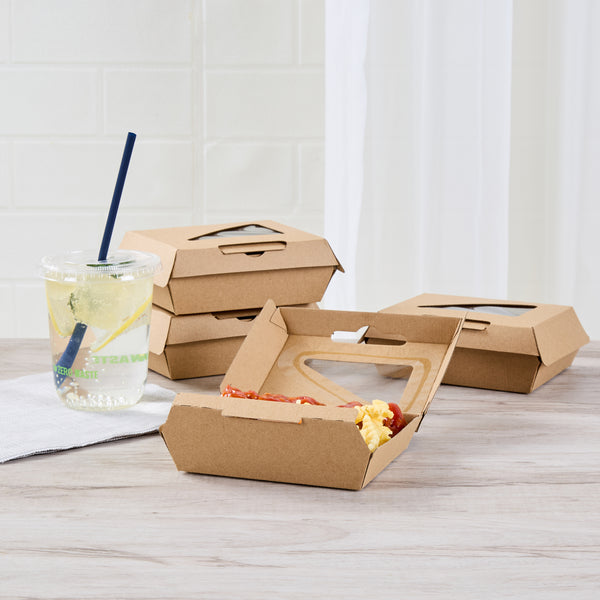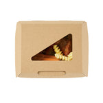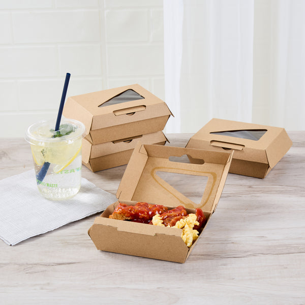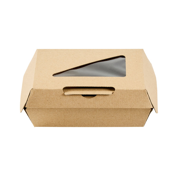 SQUARE KRAFT PAPER CORRUGATED CLAMSHELL CONTAINER - WITH PLA WINDOW