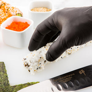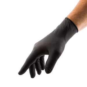 These extra large black nitrile gloves are designed to help prevent cross-contamination and keep your employee's hands clean throughout the day. Made from high-quality nitrile, these disposable gloves are puncture-resistant to protect your employee's hands during use. These black nitrile gloves are ideal for handling raw meats, such as sushi and barbecue prep. A must-have for cafes, food trucks, and restaurants, these powder-free disposable nitrile gloves are flexible, functional, and easy to put on and take off. These extra large-sized nitrile gloves measure 9 inches in length and 4.72 inches in width and fit most extra-large sized hands. Shipped in a 100 count box. Small, medium and large sizes are also available and sold separately.
