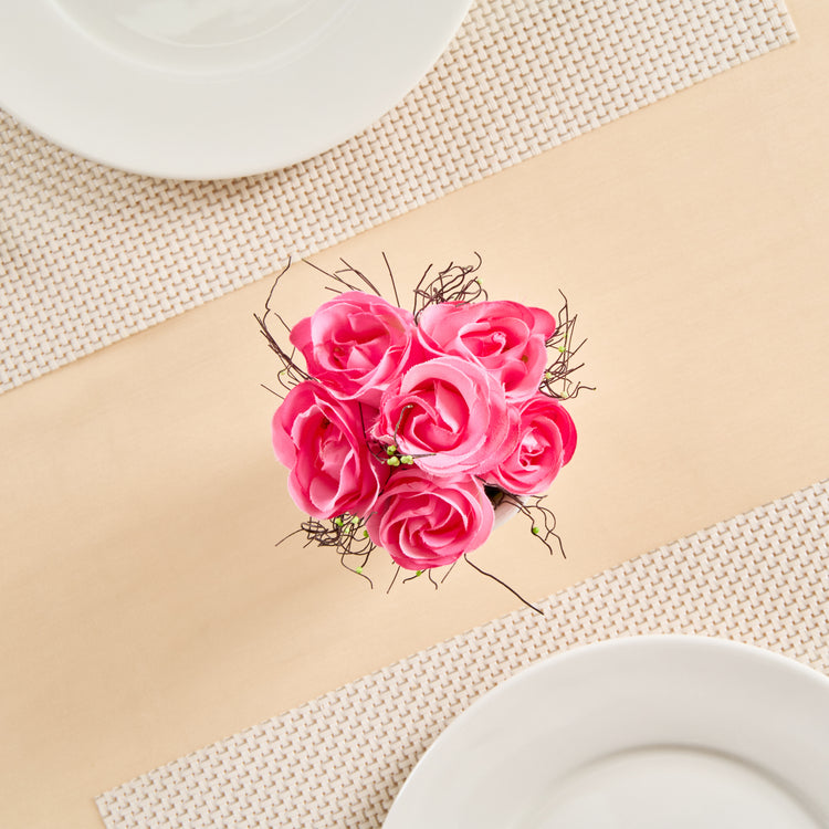 PINK PLASTIC ROSES IN PLASTIC POT - 6 BLOOMS