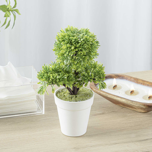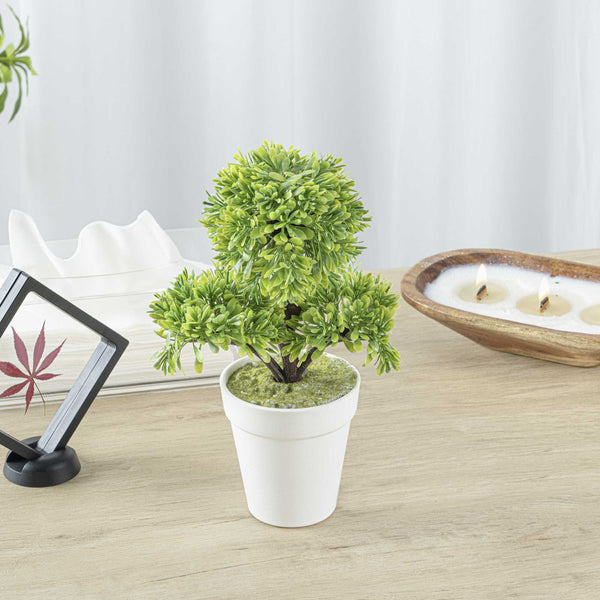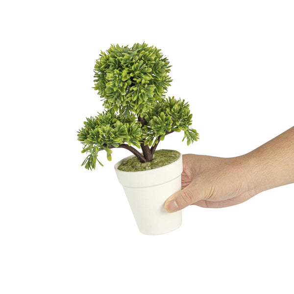 ROUND GREEN PLASTIC PETITE GREEN TREE IN PLASTIC POT