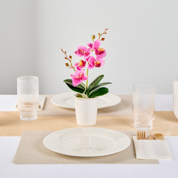 ROUND PURPLE PLASTIC ORCHID IN PORCELAIN POT - 5 BLOOMS