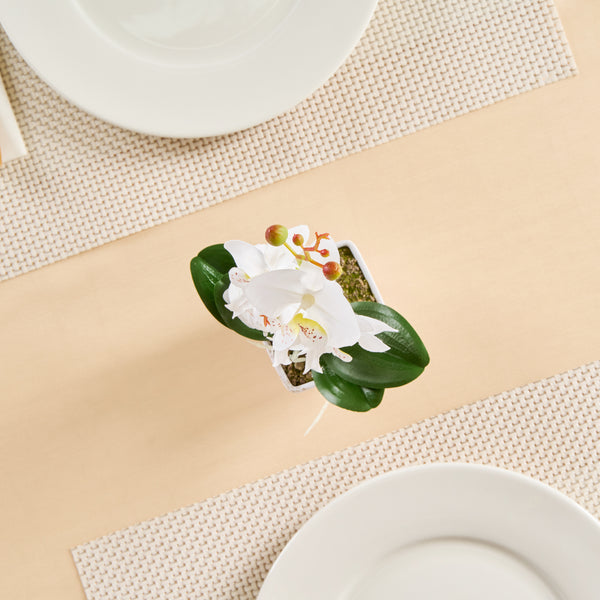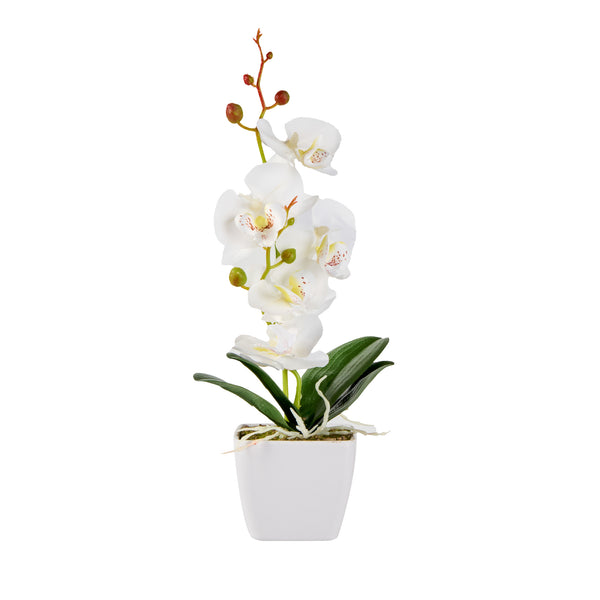 WHITE PLASTIC ORCHID IN PLASTIC POT - 5 BLOOMS