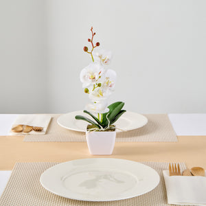 WHITE PLASTIC ORCHID IN PLASTIC POT - 5 BLOOMS