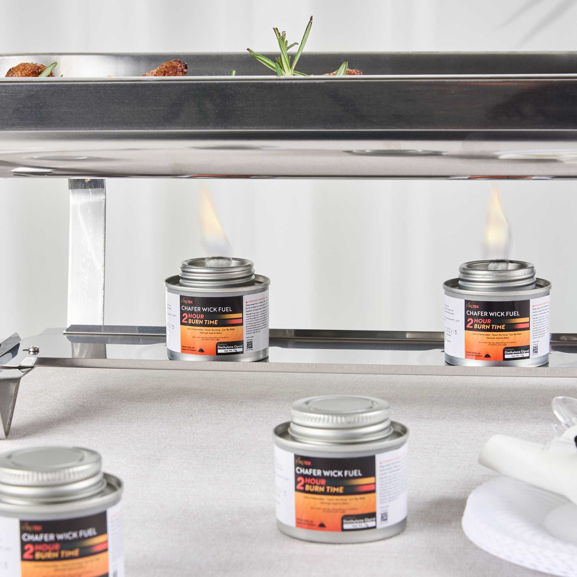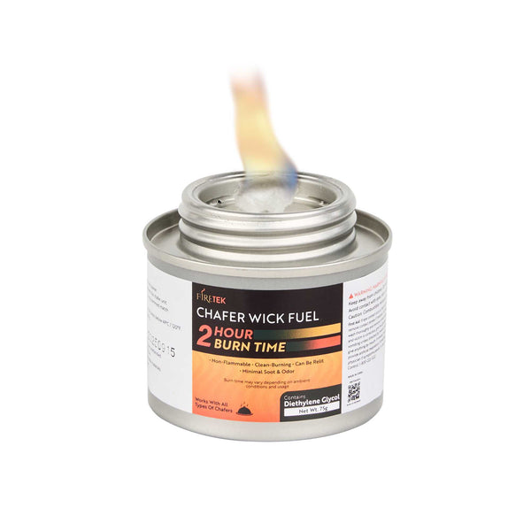 Ensure safe and effective food warming with reliable chafing dish fuel. Fire Tek Non-Flammable Chafing Dish Fuel offers a non-flammable liquid formulation that reduces fire hazards during service, making it an ideal choice for busy foodservice operations. Designed with a 2-hour burn time, this diethylene glycol fuel keeps dishes hot and ready for extended events, ensuring your culinary creations remain at optimal serving temperatures. The screw cap top allows for convenient, safe storage, minimizing spillage and evaporation risks, which is crucial for maintaining efficiency in high-traffic environments. Measuring 9.9 inches in length, this food warming fuel is lightweight and compact, providing a practical solution for catering services and food trucks where space is at a premium. Enhance your table service with chafing dish fuel that prioritizes safety and performance. Each order includes 24 Fire Tek Non-Flammable Chafing Dish Fuels – Screw-Cap, Lid Opener.