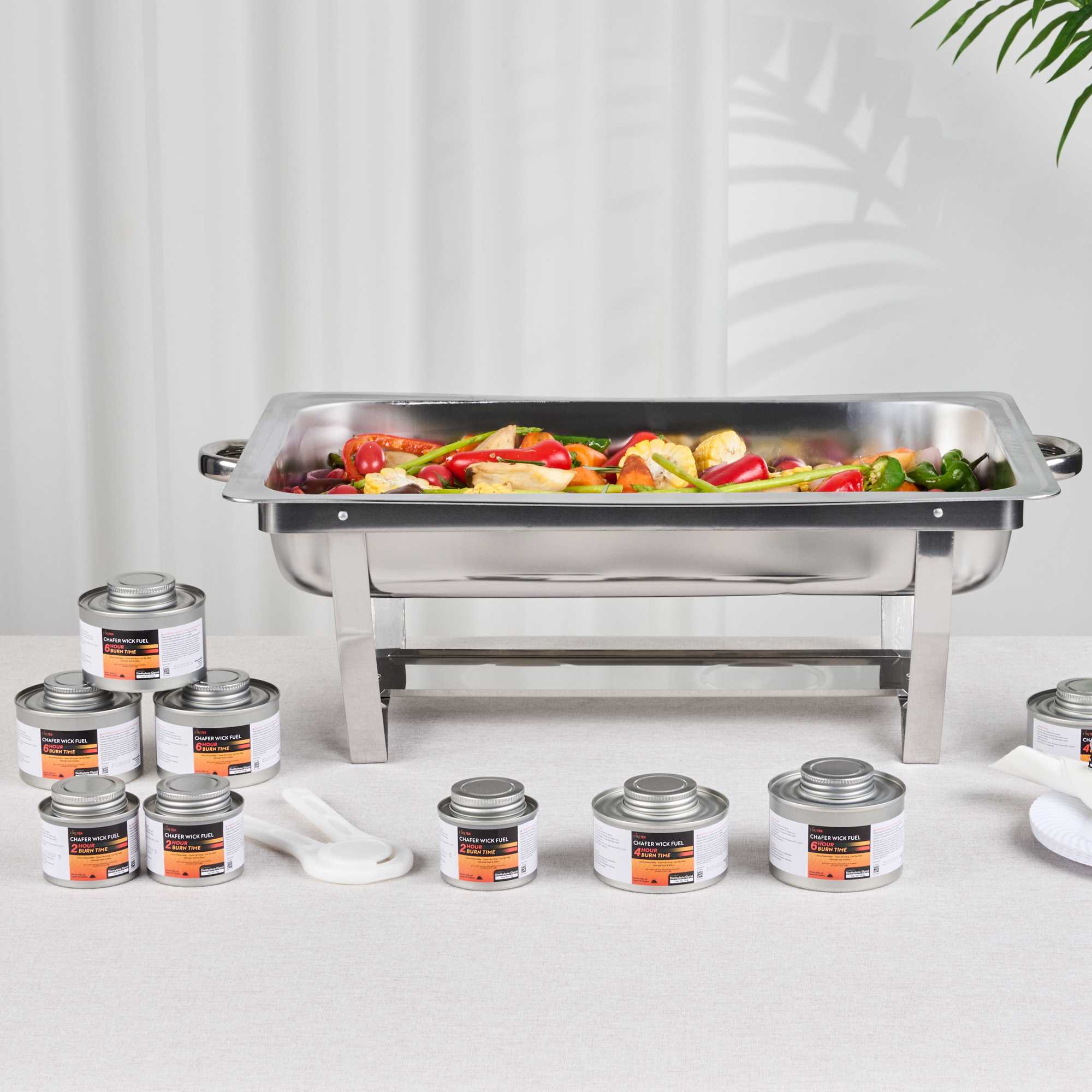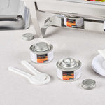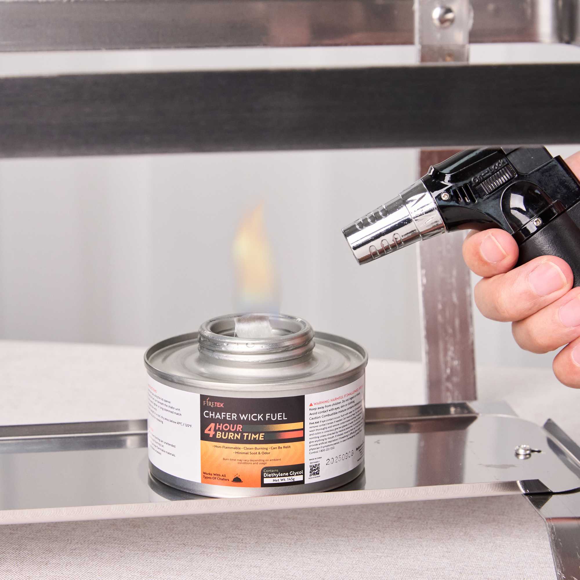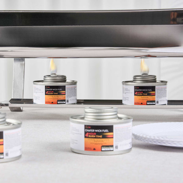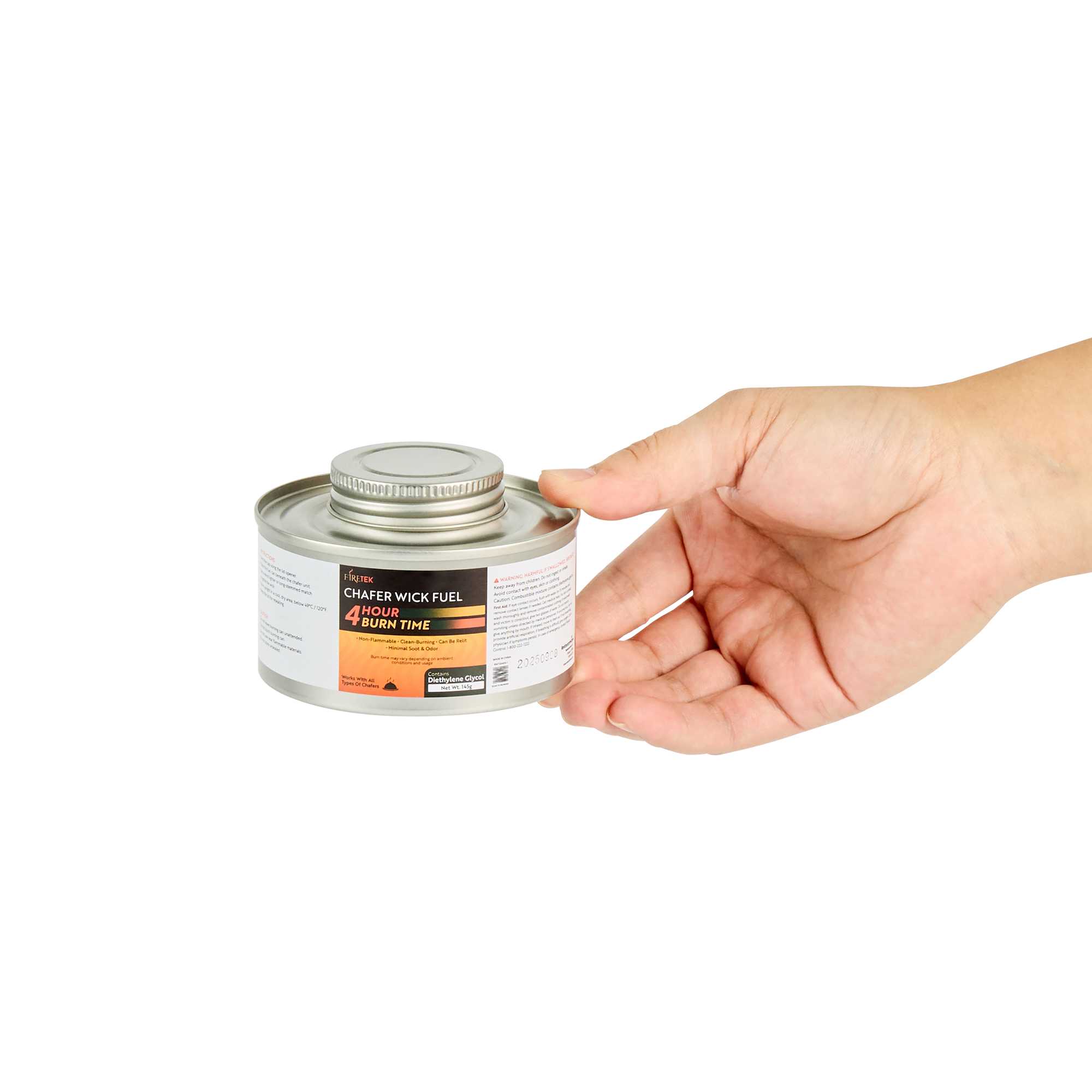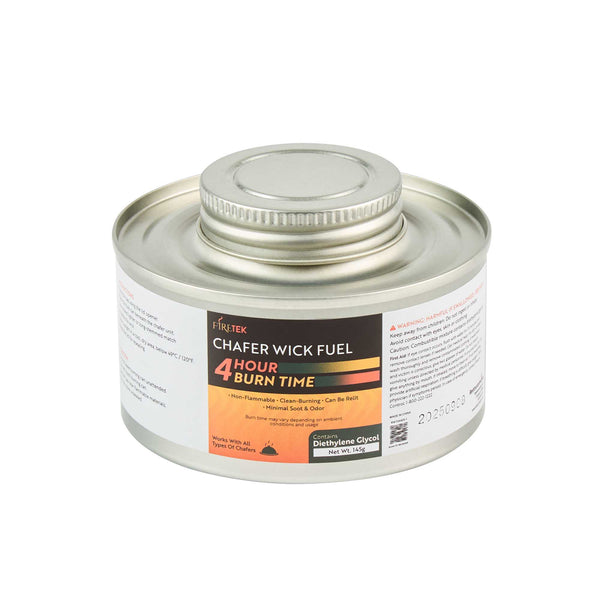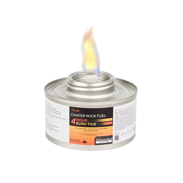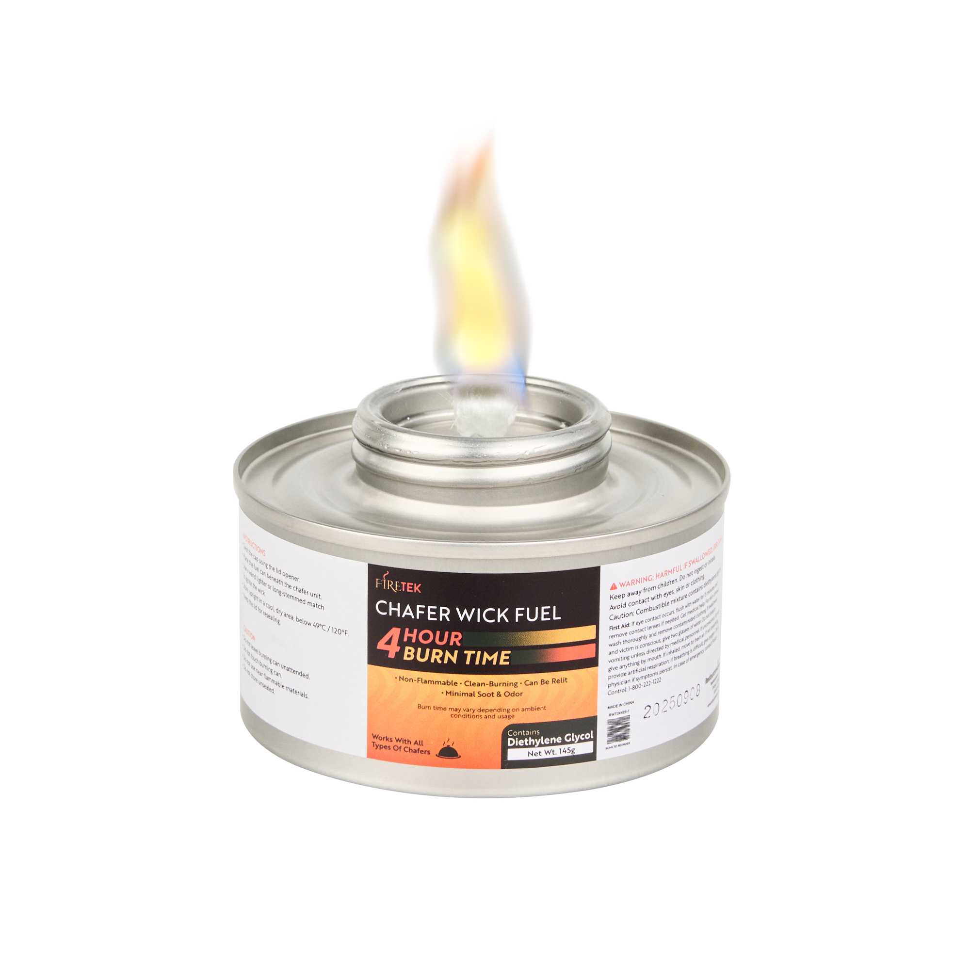 Ensure seamless service with clean-burning wick chafing fuel. The Fire Tek Clean-Burning Wick Chafing Fuel boasts an impressive four-hour duration, providing consistent heat while minimizing soot and odor release to simplify kitchen cleanup. Featuring a diethylene glycol burner, this food warming fuel ensures dishes remain hot and ready for timely service, enhancing customer satisfaction during buffet setups. Its convenient screw cap top offers safe storage, preventing spills and evaporation. Designed with a compact size of 10.63 inches by 6.89 inches, it fits seamlessly into any chafing dish setup, making it an indispensable tool for caterers and buffet managers seeking efficient and reliable food warming solutions. Elevate your foodservice operations and maintain the perfect serving temperature with this versatile food warming fuel. Each order includes 24 Fire Tek Non-Flammable Chafing Dish Fuels – Screw-Cap, Lid Opener.
