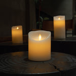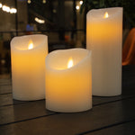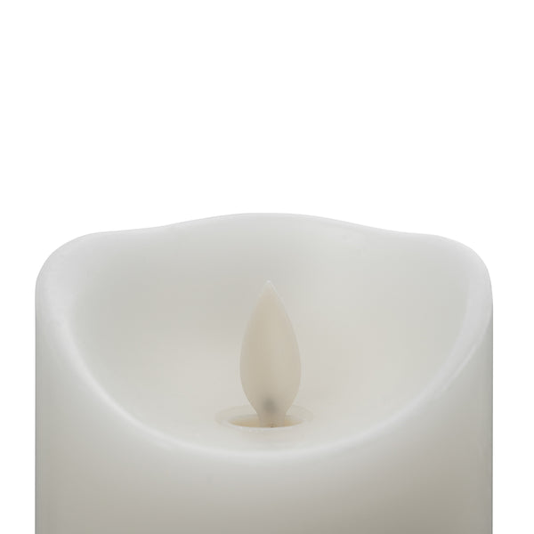 WHITE PLASTIC FLAMELESS PILLAR CANDLE - REAL WAX, PROGRAMMABLE