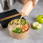 The wide mouth of these squeeze bottles is large enough for you to pour in sauces with minimal drips. A selection of our condiment bottles have a lid on the bottom to easily fill them from the base and ensure remaining sauces are dispensed first.