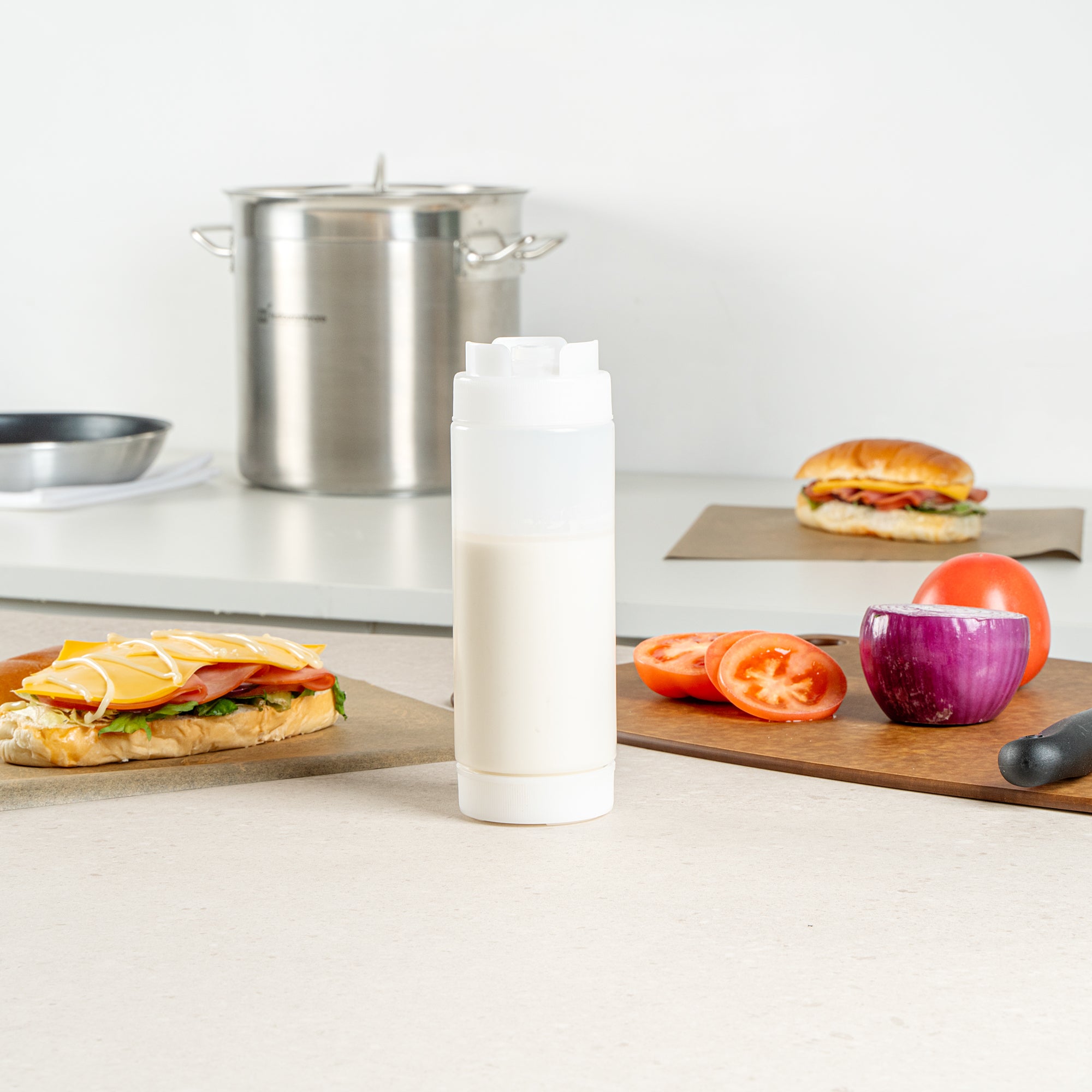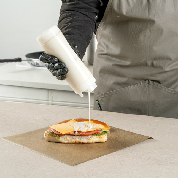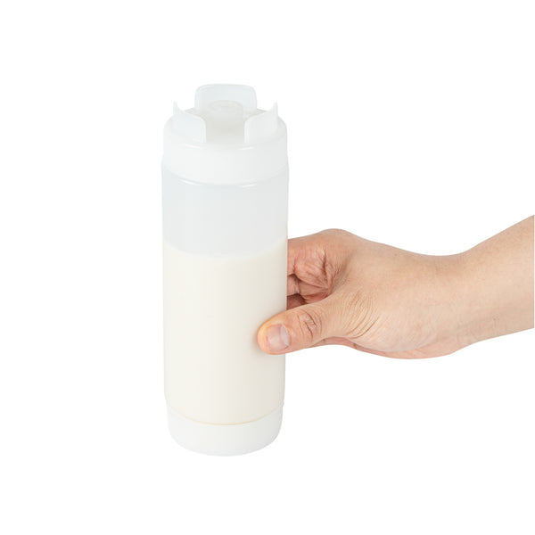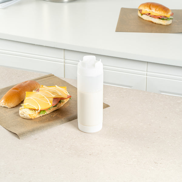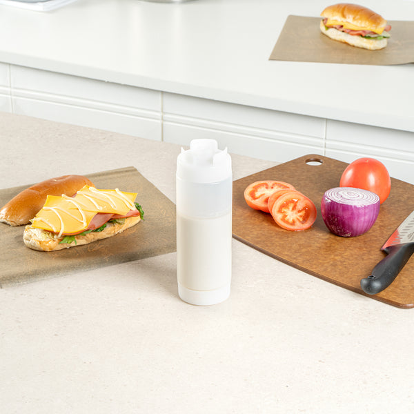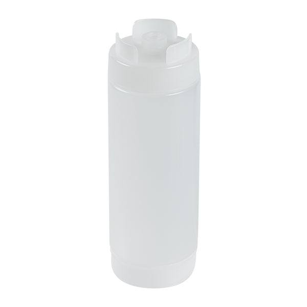 Our First In First Out 20-ounce Clear Plastic Squeeze Bottle ensures your condiments stay fresh and easily accessible. Crafted from durable and food-grade plastic, this squeeze dispenser retains its shape after every use. Designed with an innovative refillable lid, this condiment dispenser uses a 'first in, first out' system to ensure consistent freshness. Featuring an inverted precision tip, this refillable squeeze bottle delivers accurate and even dispensing for precise portion control. An automatic sealable valve on this plastic squeeze bottle opens only when squeezed, preventing spills and ensuring mess-free use. For easy maintenance, this sauce bottle is dishwasher-safe, saving time in busy kitchens. Measuring 2.72 inches in diameter by 7.87 inches in height, this squeeze dispenser has a generous 20-ounce capacity. Sold in a 1 count box.