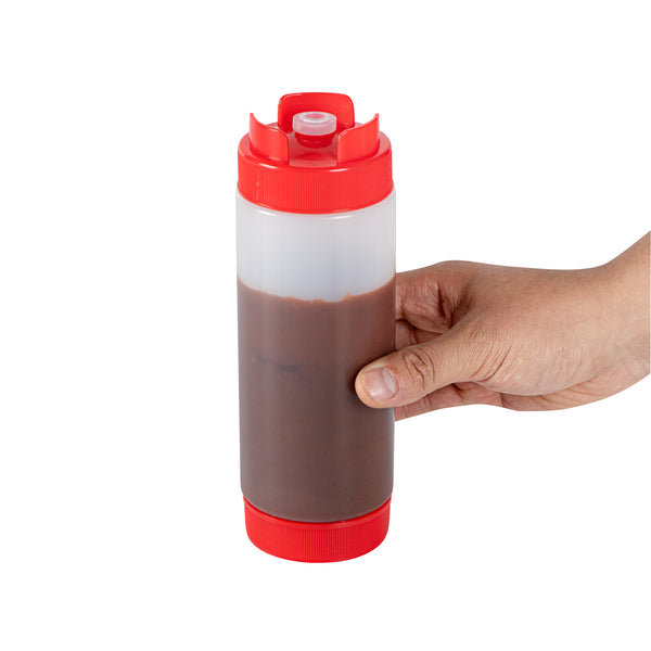 20 OZ RED PLASTIC SQUEEZE BOTTLE - INVERTED, REFILL & DISPENSING LID
