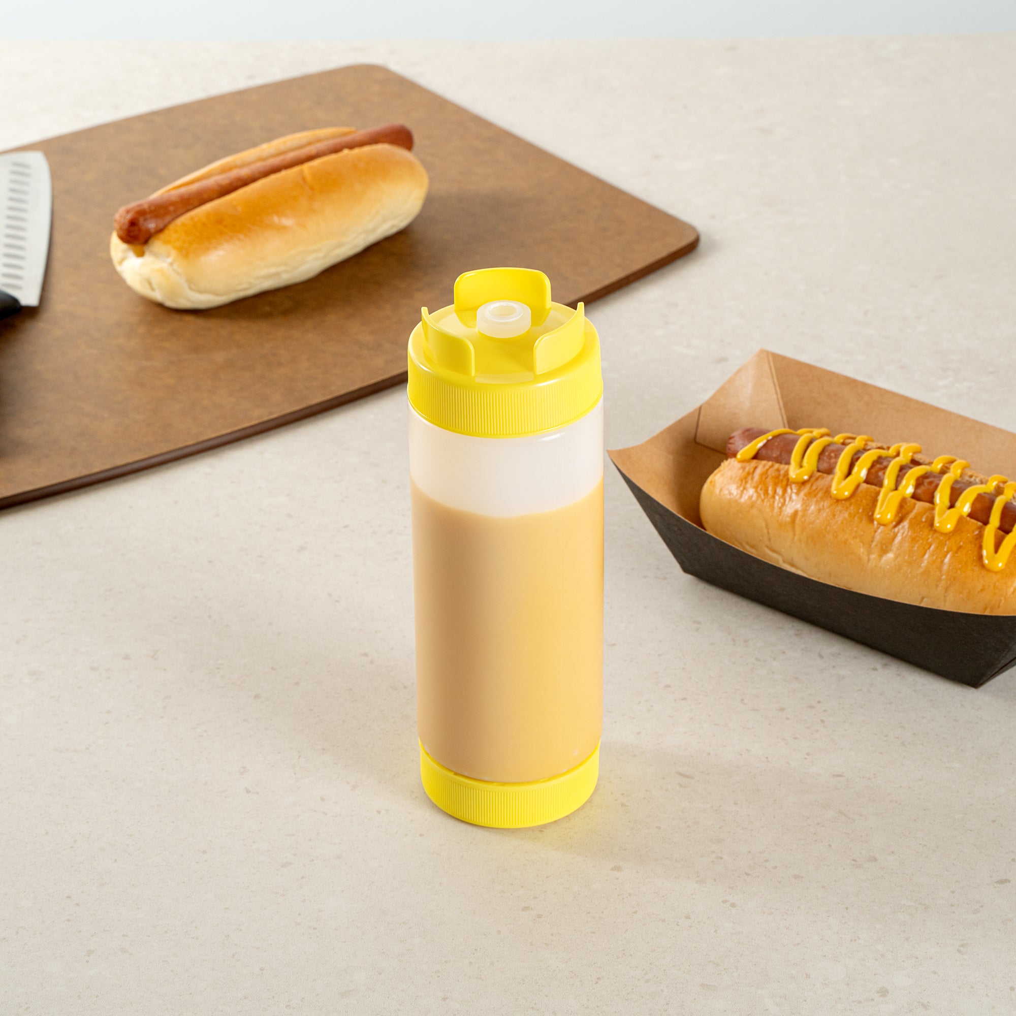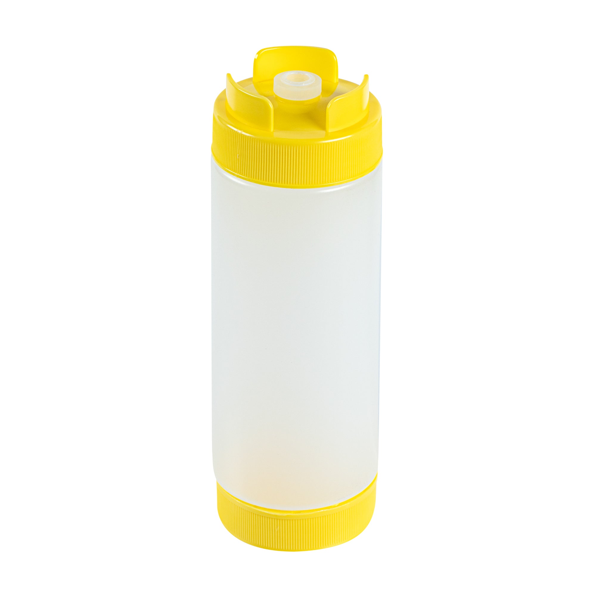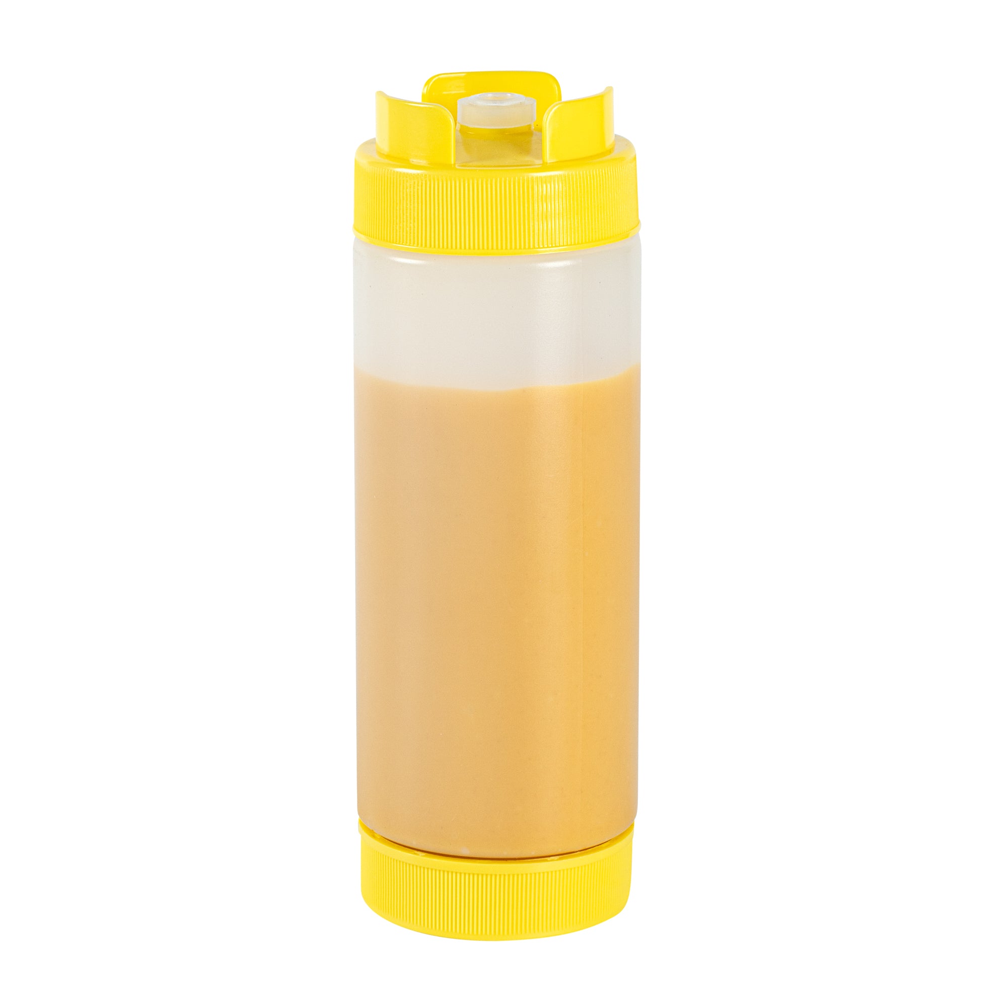 Elevate your kitchen efficiency with our First In First Out 20-ounce Yellow Plastic Squeeze Bottle, designed to streamline condiment management with style and functionality. This innovative condiment dispenser features a 'first in, first out' refillable lid, ensuring that your sauces are always fresh and ready for use. Crafted from food-grade plastic, this squeeze dispenser effortlessly retains its shape. The inverted precision tip of this refillable squeeze bottle allows for accurate and even dispensing, offering precise portion control with every squeeze. Equipped with an automatic sealable valve, this plastic squeeze bottle avoids spills and ensures use without mess. For added convenience, this sauce bottle is suitable for dishwashers, allowing for quick cleaning that saves valuable time. Measuring 2.72 inches in diameter and standing 7.87 inches tall, this squeeze bottle boasts a generous capacity of 20 ounces, apt for storing a variety of condiments. Sold in a 1 count box.
