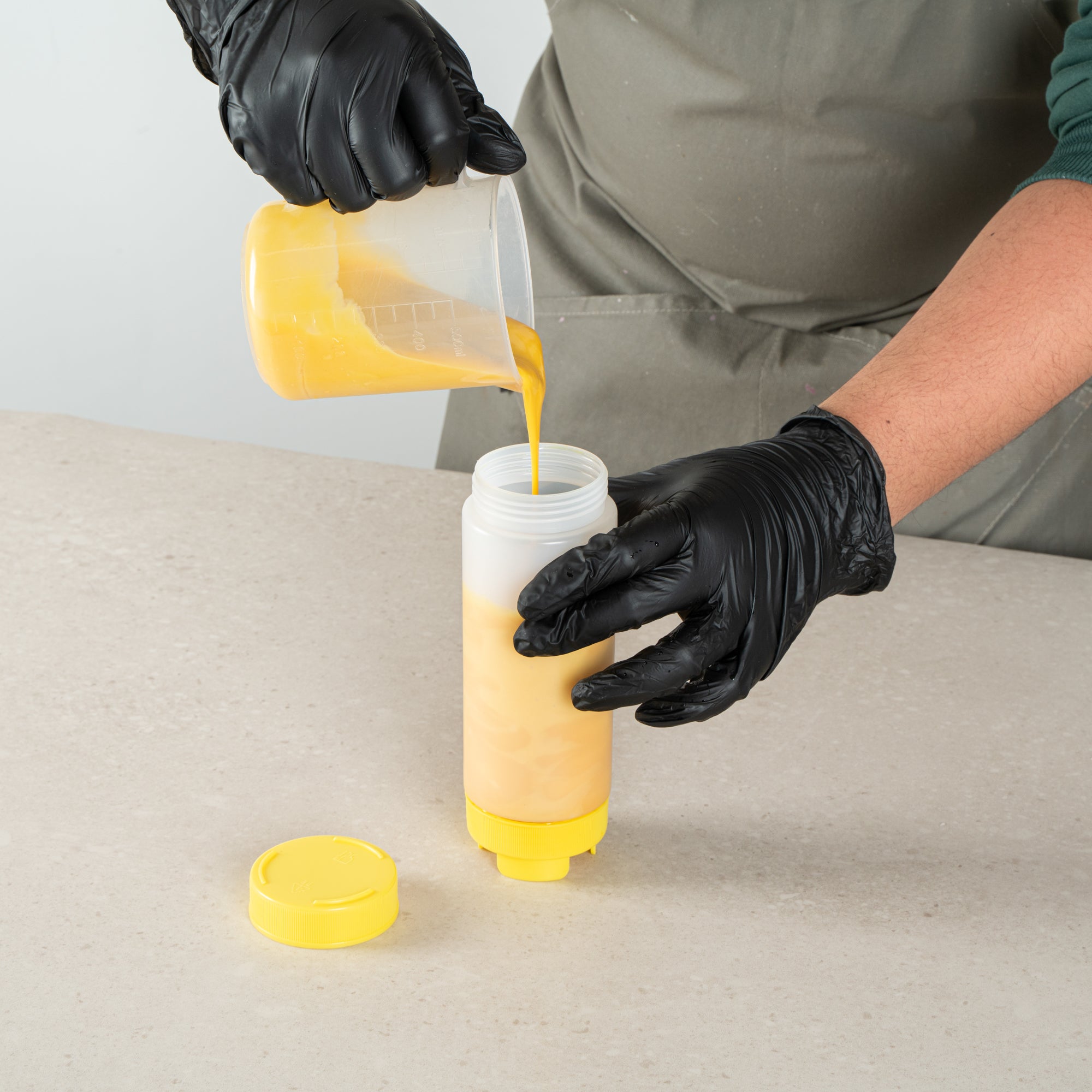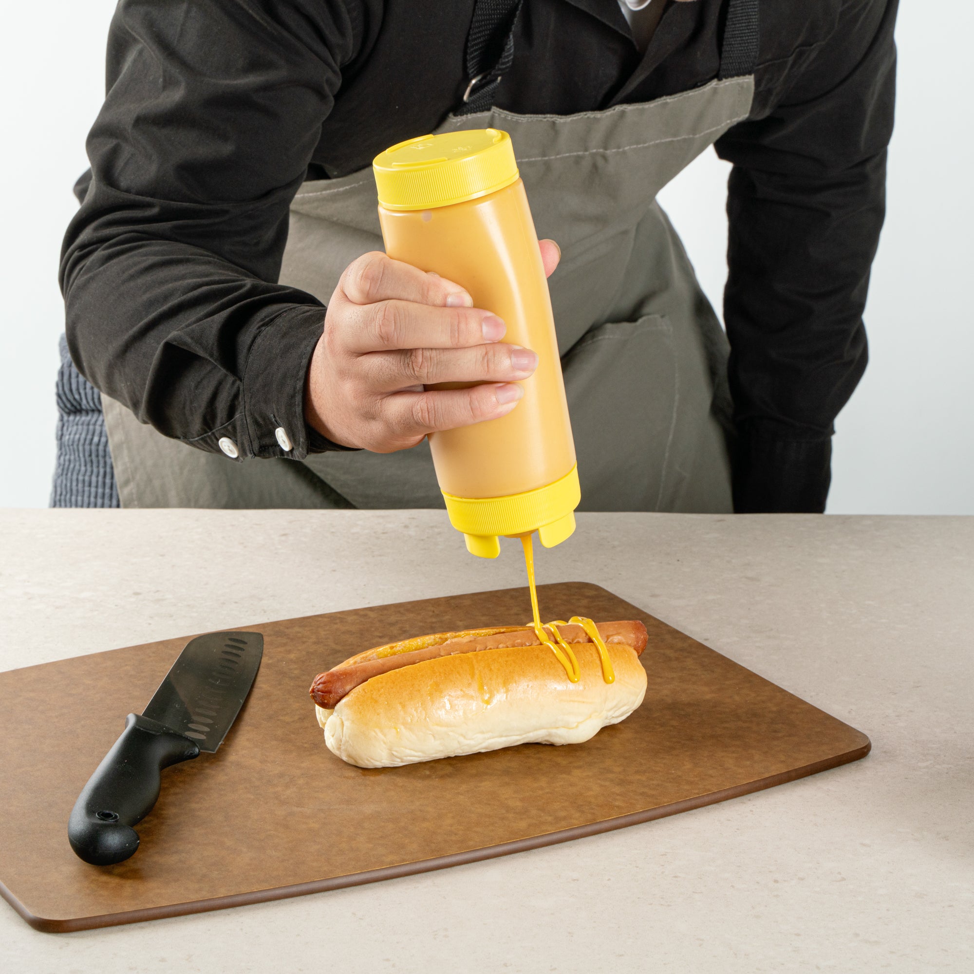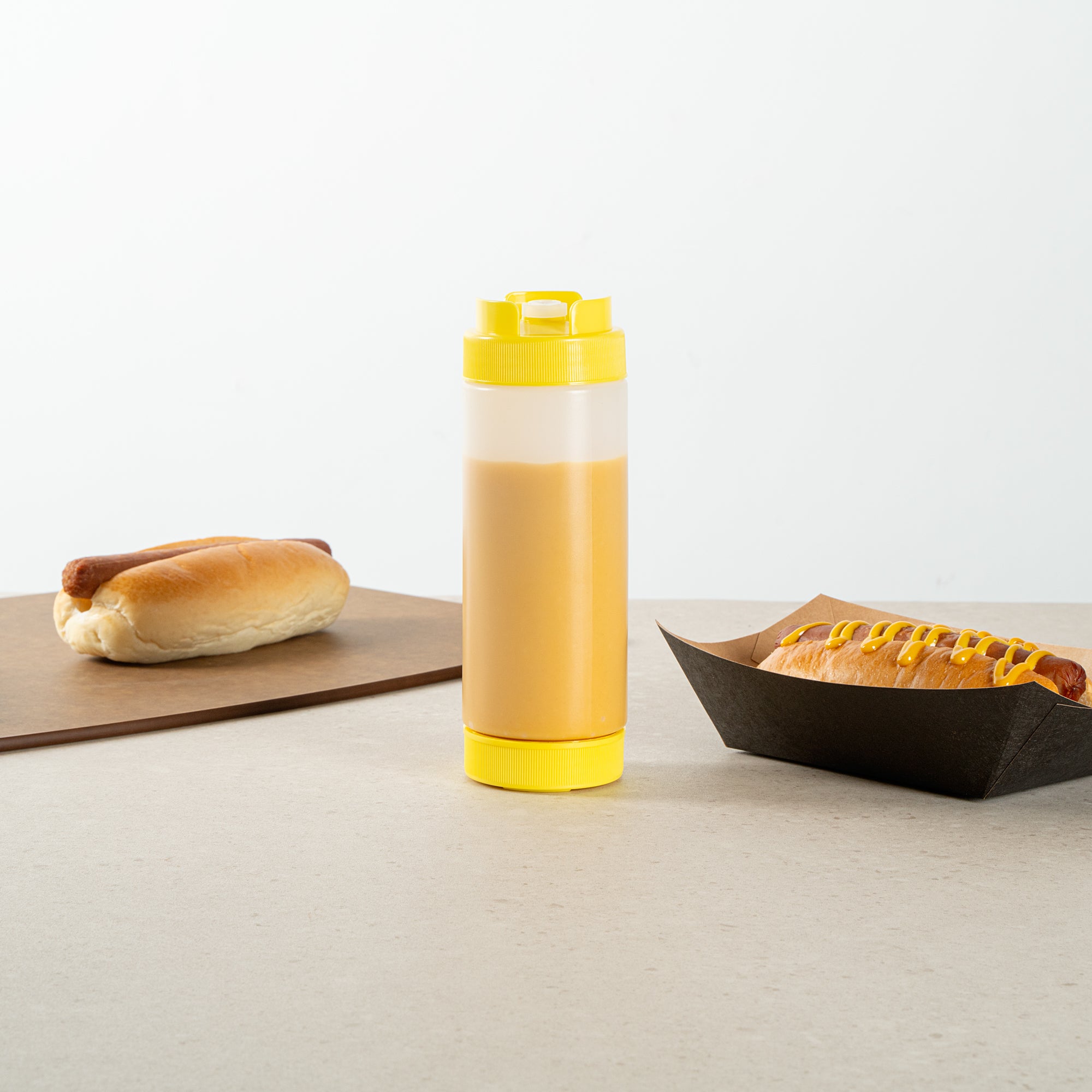 Elevate your kitchen efficiency with our First In First Out 20-ounce Yellow Plastic Squeeze Bottle, designed to streamline condiment management with style and functionality. This innovative condiment dispenser features a 'first in, first out' refillable lid, ensuring that your sauces are always fresh and ready for use. Crafted from food-grade plastic, this squeeze dispenser effortlessly retains its shape. The inverted precision tip of this refillable squeeze bottle allows for accurate and even dispensing, offering precise portion control with every squeeze. Equipped with an automatic sealable valve, this plastic squeeze bottle avoids spills and ensures use without mess. For added convenience, this sauce bottle is suitable for dishwashers, allowing for quick cleaning that saves valuable time. Measuring 2.72 inches in diameter and standing 7.87 inches tall, this squeeze bottle boasts a generous capacity of 20 ounces, apt for storing a variety of condiments. Sold in a 1 count box.