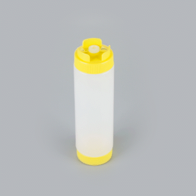 24 OZ YELLOW PLASTIC SQUEEZE BOTTLE- INVERTED, REFILL & DISPENSING LID