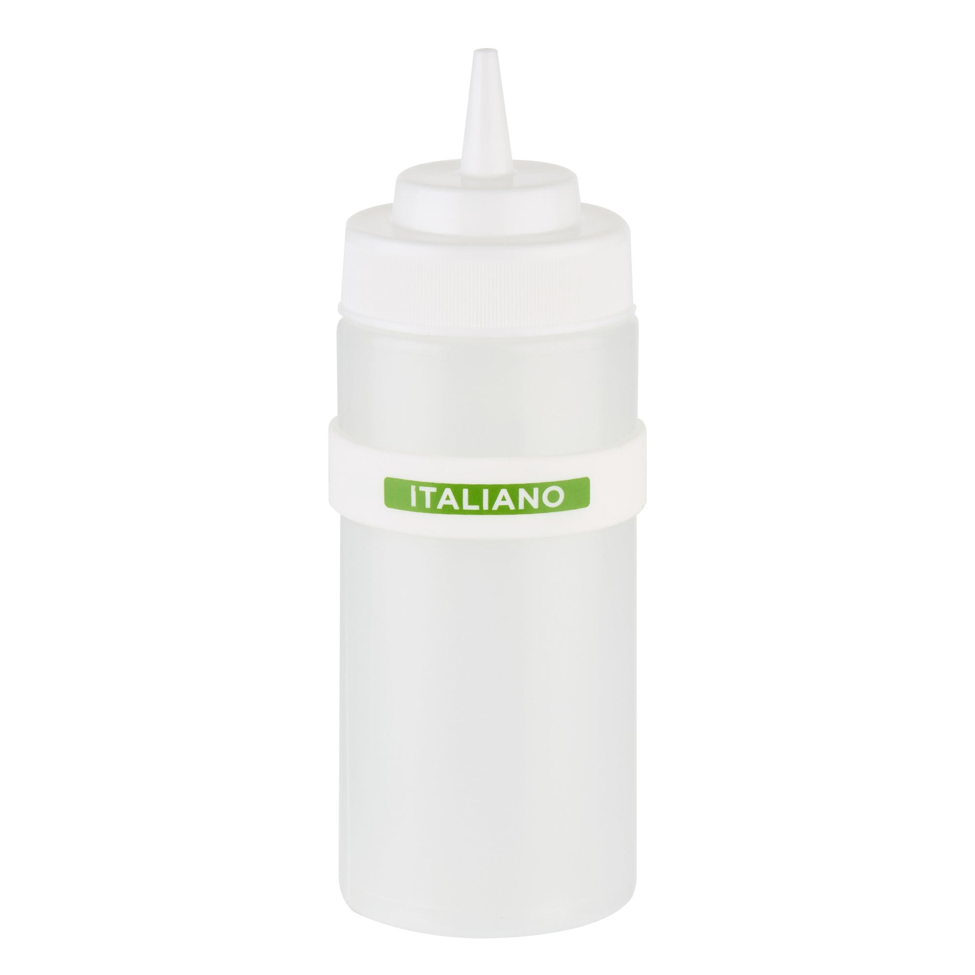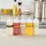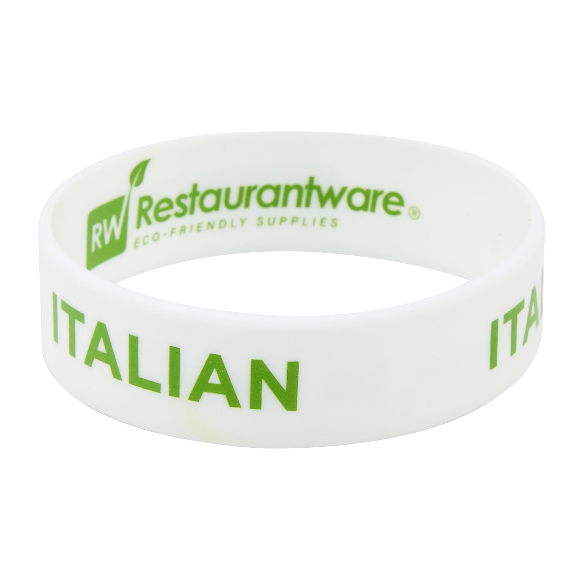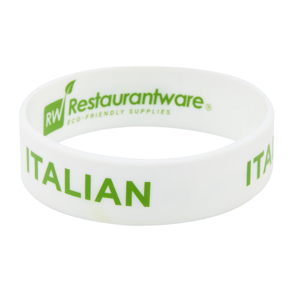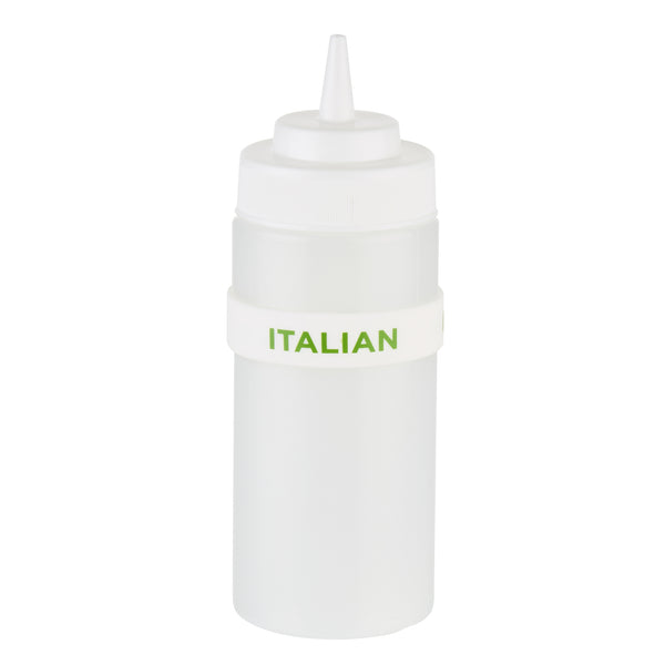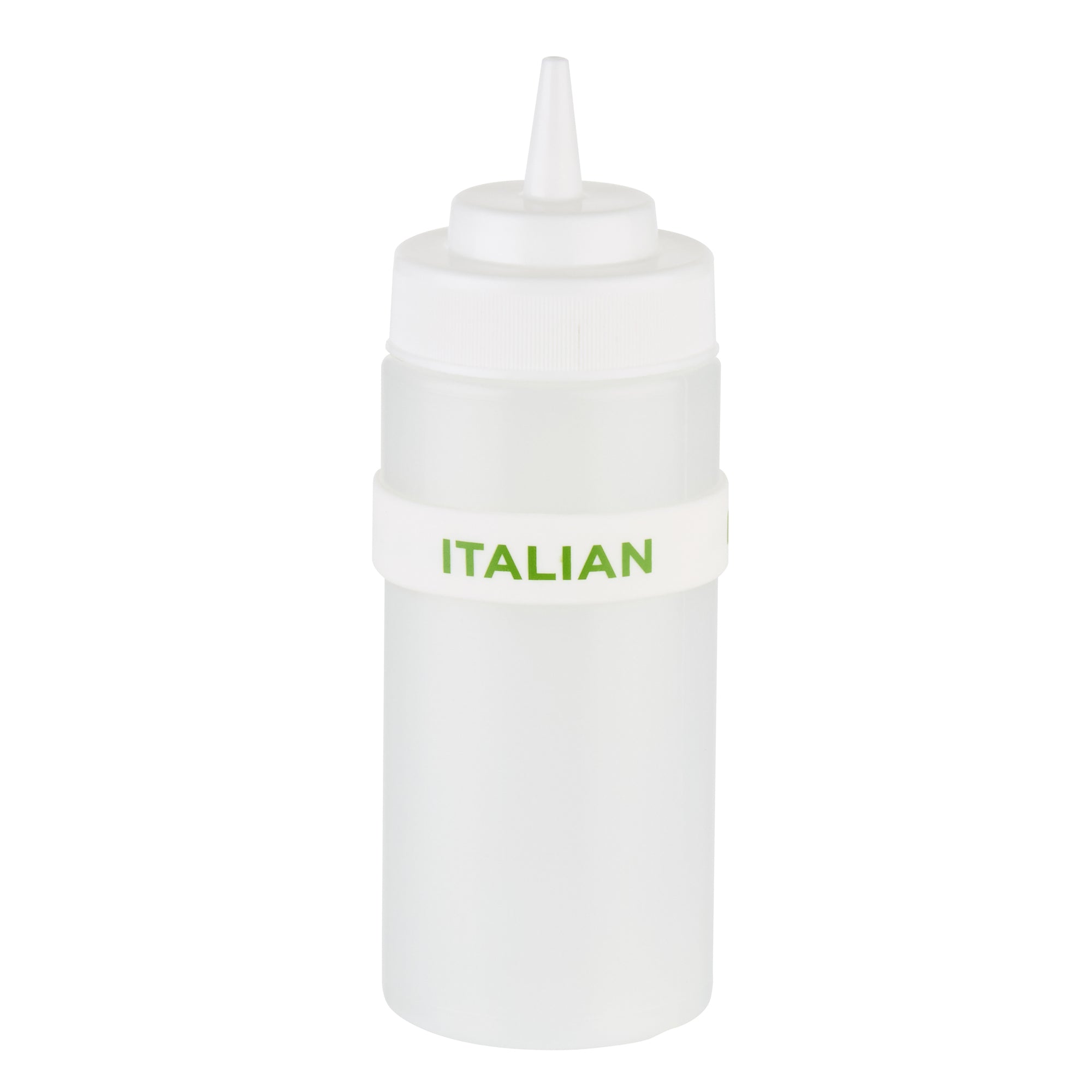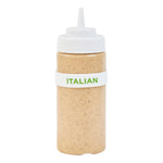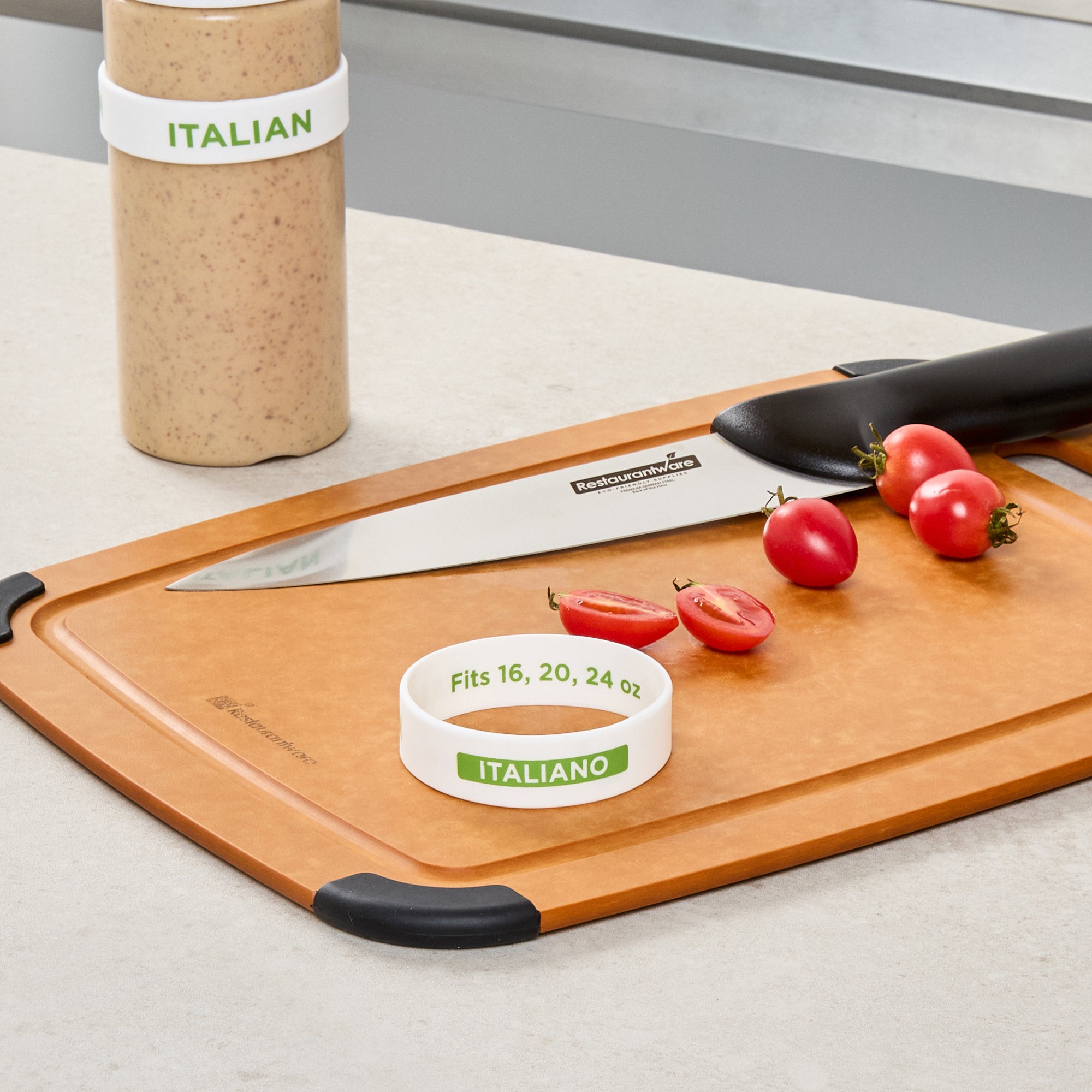 Ensure optimal freshness with the First In First Out Silicone Label Band. Designed to fit 16, 20, and 24-ounce squeeze bottles, this silicone label band enhances kitchen efficiency. Featuring a durable silicone construction, this condiment label band withstands frequent use in busy kitchen environments and provides additional grip to prevent bottle slips. The clearly printed Italian labels ensure accurate ingredient identification, reducing errors. With dimensions of 2.75 inches by 2.75 inches and a height of 0.75 inches, this label band for squeeze bottles offers a versatile fit across various container sizes, making it an invaluable tool for culinary professionals. Its easy application and removal facilitate quick changes and cleaning, helping maintain high hygiene standards. Enhance your kitchen's operational efficiency with this essential food safety tool. Each order includes 10 First In First Out Silicone Label Bands.