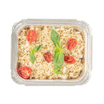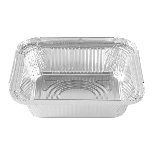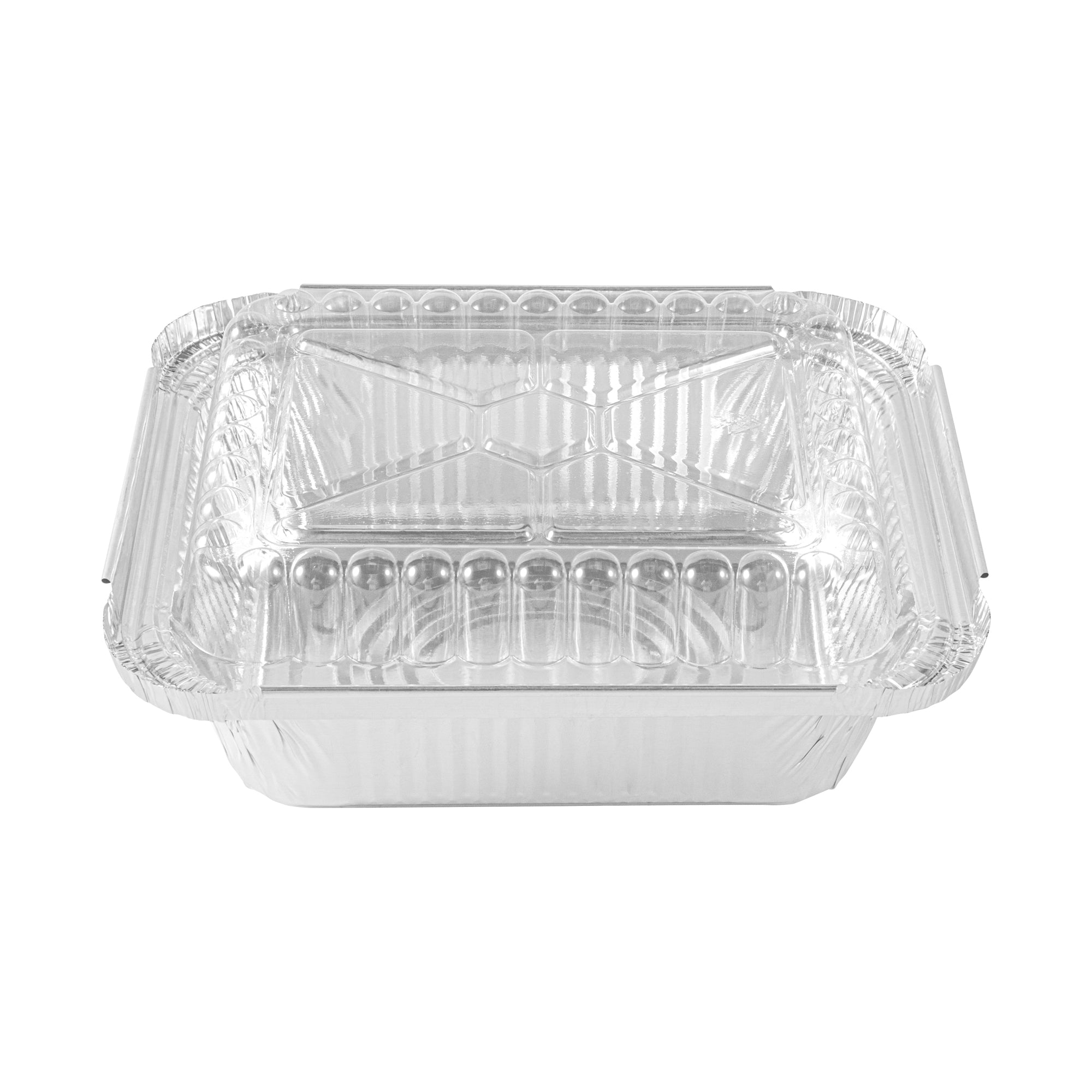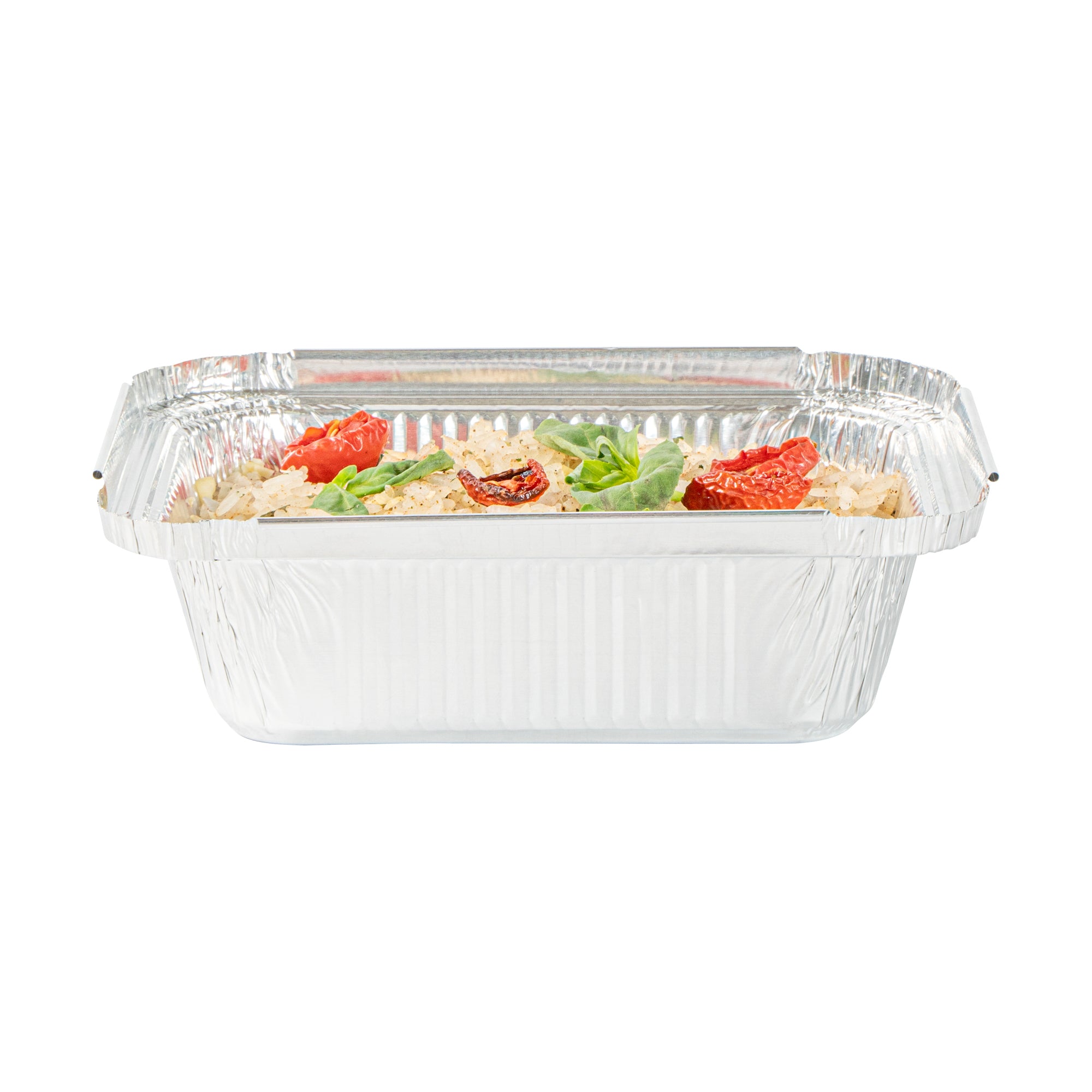 Enhance your foodservice efficiency with versatile storage solutions. Foil Lux Foil Takeout Containers feature foil lid and plastic lid compatibility, giving you flexibility in food storage needs. Made from oven-safe aluminum, these containers allow you to bake and serve dishes in the same container, saving time and reducing cleanup efforts. With their unique oblong shape, measuring 5.75 inches by 4.75 inches, these aluminum take-out containers provide ample room to accommodate a wide range of food items, from entrees to sides and desserts. Whether you're storing hot meals or cold treats, these foil containers with lids are freezer-safe and recyclable, making them an eco-conscious choice for restaurants and catering services. Equip your kitchen with these multipurpose containers and streamline your food preparation and storage processes. Sold in a 100 count box.