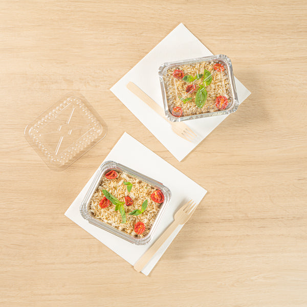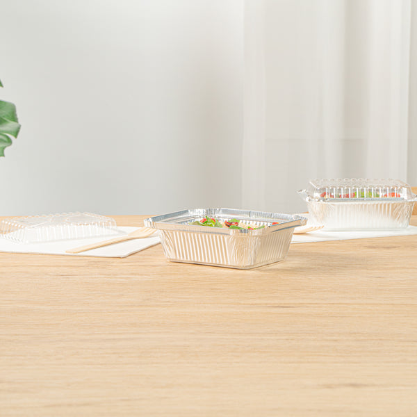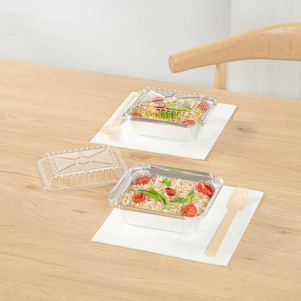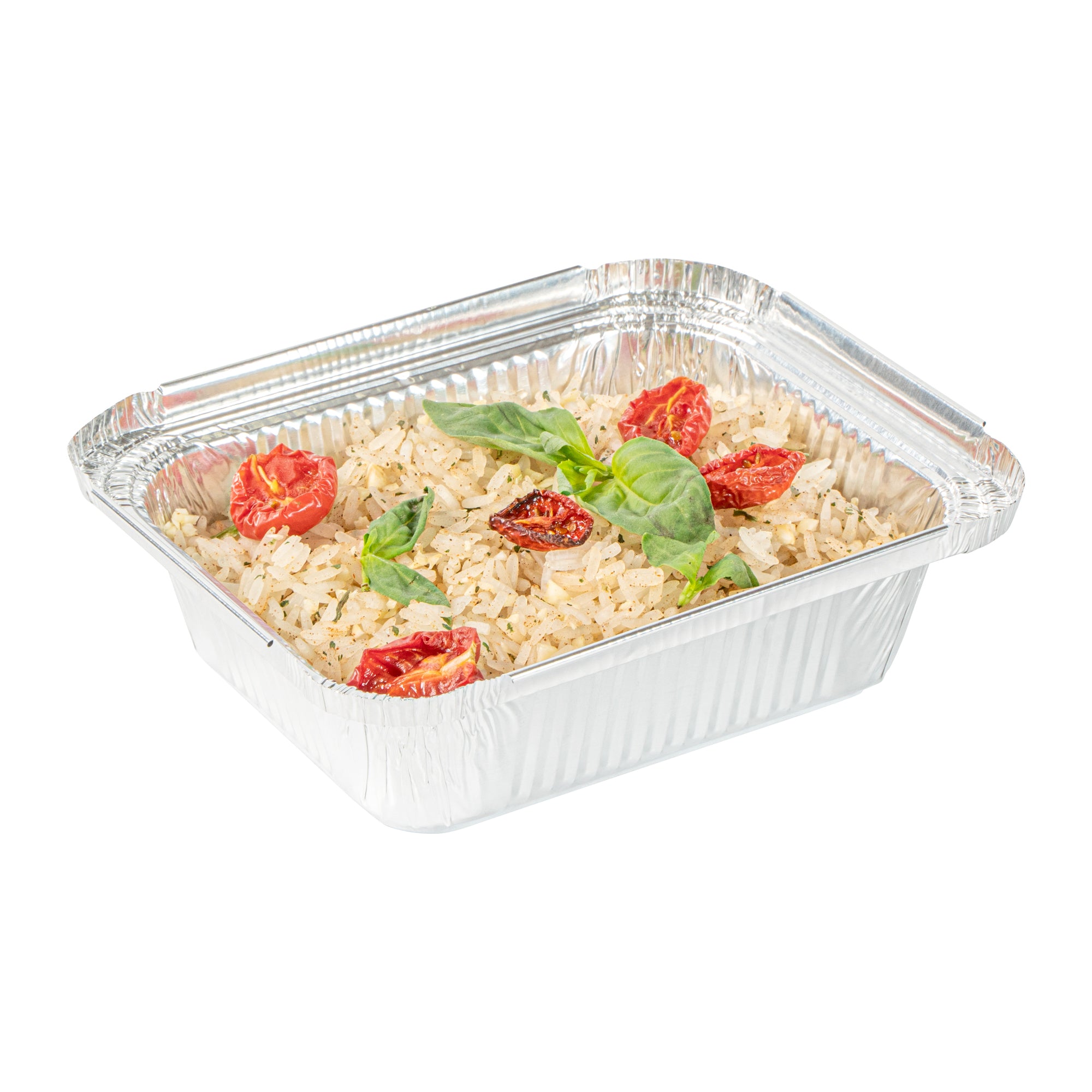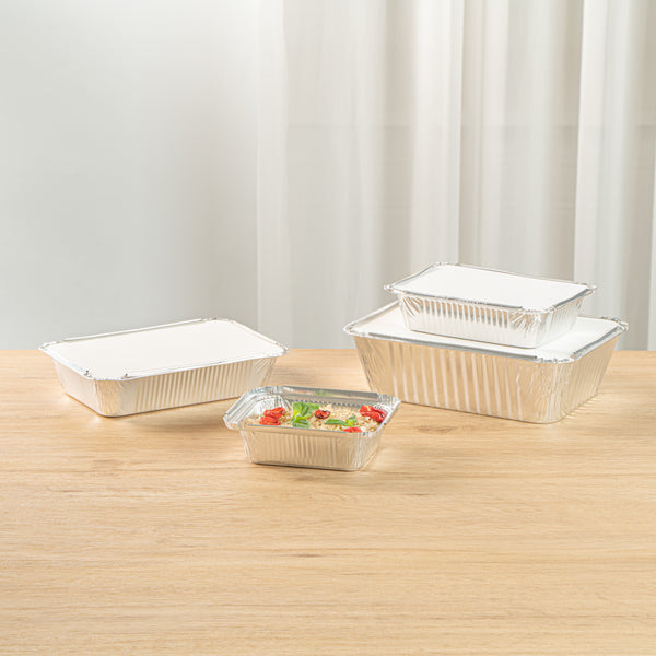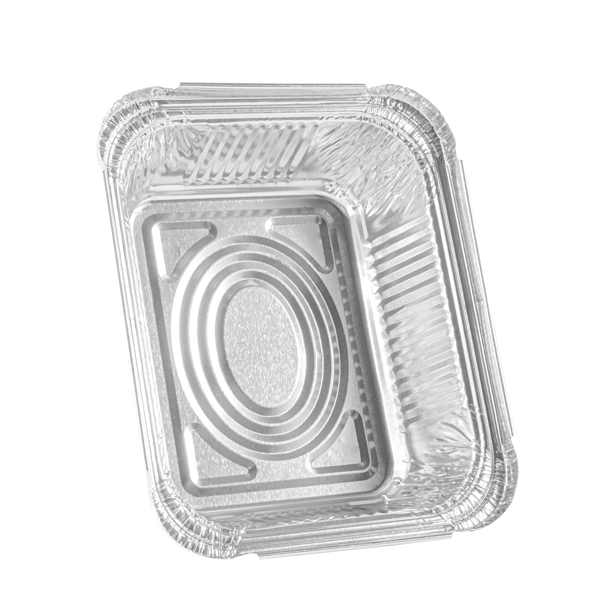 Enhance your foodservice efficiency with versatile storage solutions. Foil Lux Foil Takeout Containers feature foil lid and plastic lid compatibility, giving you flexibility in food storage needs. Made from oven-safe aluminum, these containers allow you to bake and serve dishes in the same container, saving time and reducing cleanup efforts. With their unique oblong shape, measuring 5.75 inches by 4.75 inches, these aluminum take-out containers provide ample room to accommodate a wide range of food items, from entrees to sides and desserts. Whether you're storing hot meals or cold treats, these foil containers with lids are freezer-safe and recyclable, making them an eco-conscious choice for restaurants and catering services. Equip your kitchen with these multipurpose containers and streamline your food preparation and storage processes. Sold in a 100 count box.