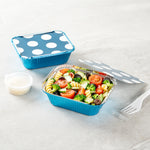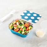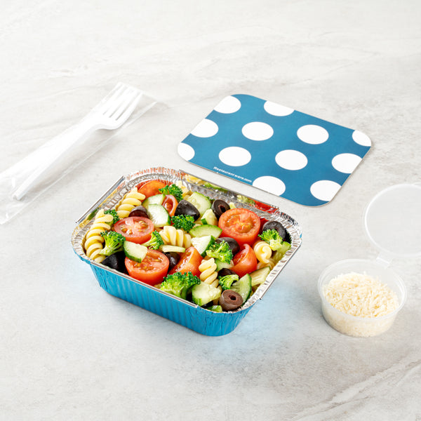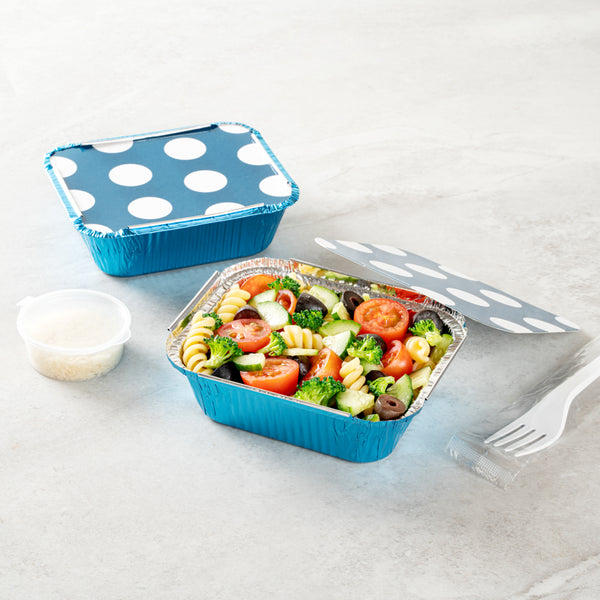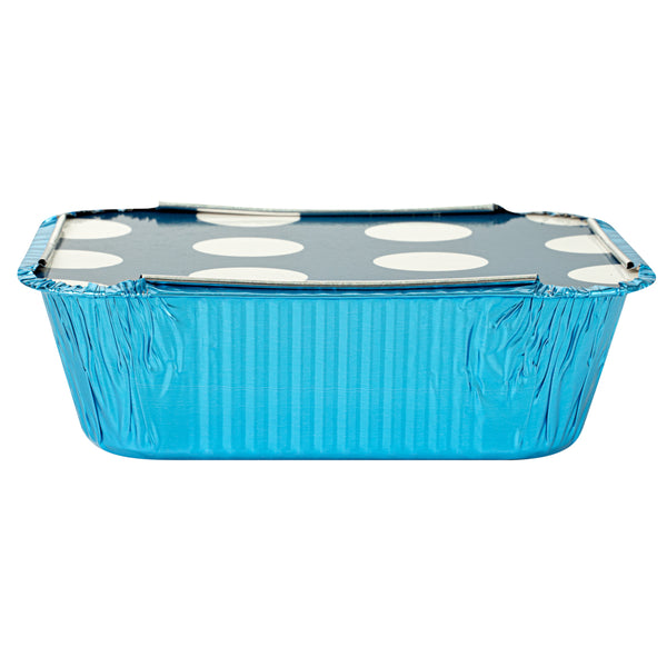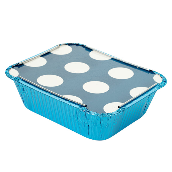 12 OZ BLUE ALUMINUM TAKE OUT CONTAINER - POLKA DOT PAPER LID
