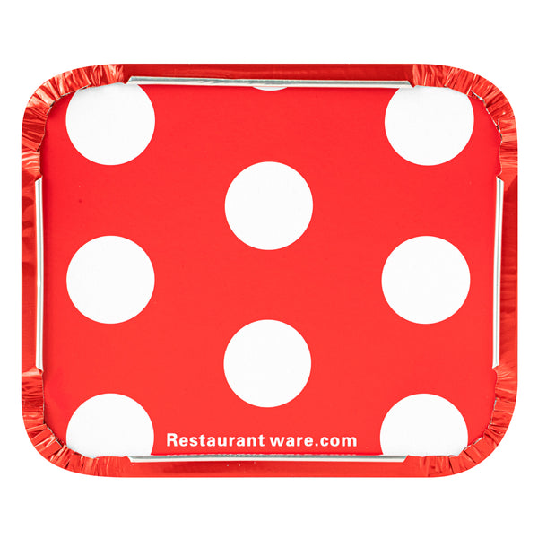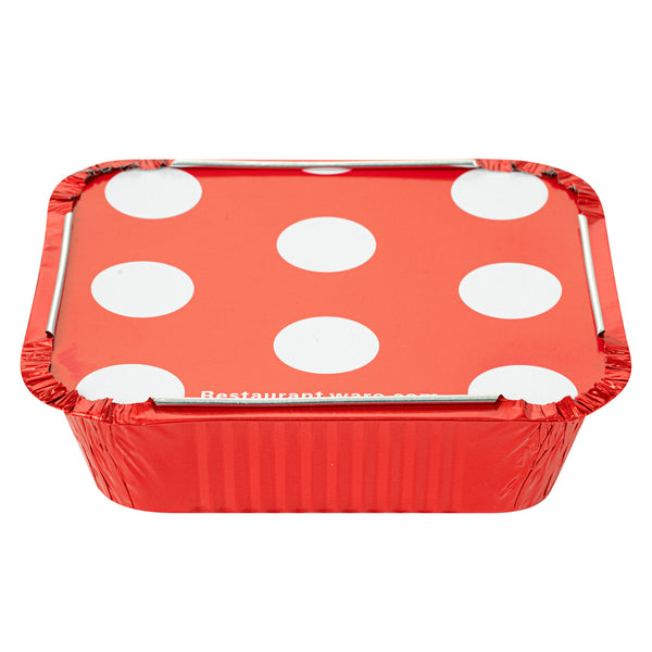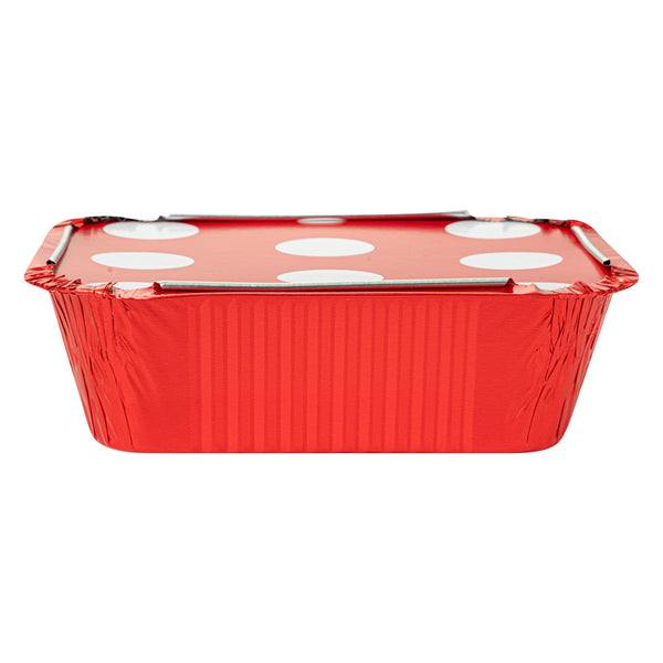 12 OZ RED ALUMINUM TAKE OUT CONTAINER - POLKA DOT PAPER LID
