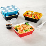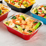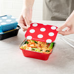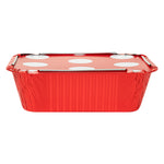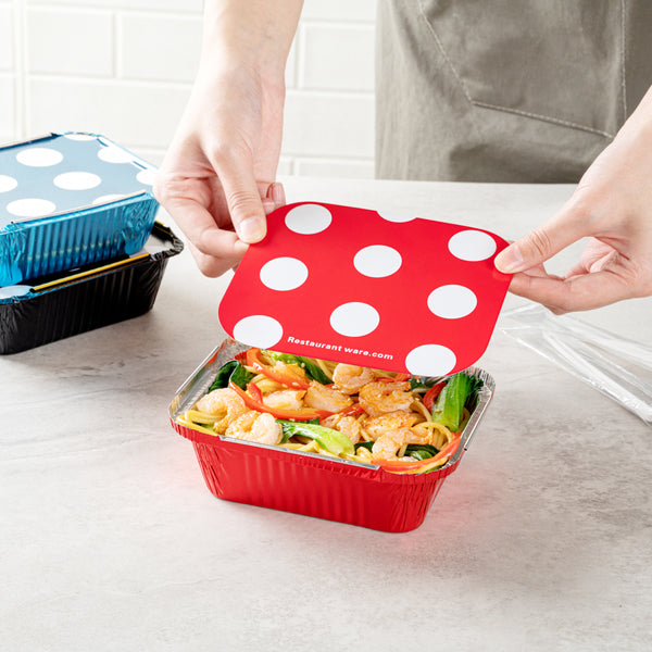 Introduce a splash of vibrancy and functionality to your food delivery service with our Foil Lux 12-Ounce Rectangle Red Aluminum Take Out Containers. Showcasing a brilliant red shade, these freezable aluminum containers bring excitement and flair to the meal delivery experience. The delightful polka dot paper lid perfectly complements the oven-ready food containers, enhancing their overall appeal. Robust and durable, these disposable take out containers are crafted from supreme aluminum, ensuring they can weather the stresses of delivery while maintaining their structure. The silver foil lining of these takeaway containers is instrumental in preserving the optimal temperature of hot meals, ensuring customers' satisfaction. Mindful of consumer convenience, these recyclable red take out containers have been designed as disposable, alleviating post-meal tidying up. Measuring 5.75 inches long by 4.75 inches wide by 1.75 inches tall and containing up to 12 ounces, these aluminum containers are perfect for housing hearty servings. Sold in a 50 count box.