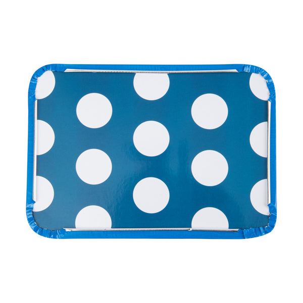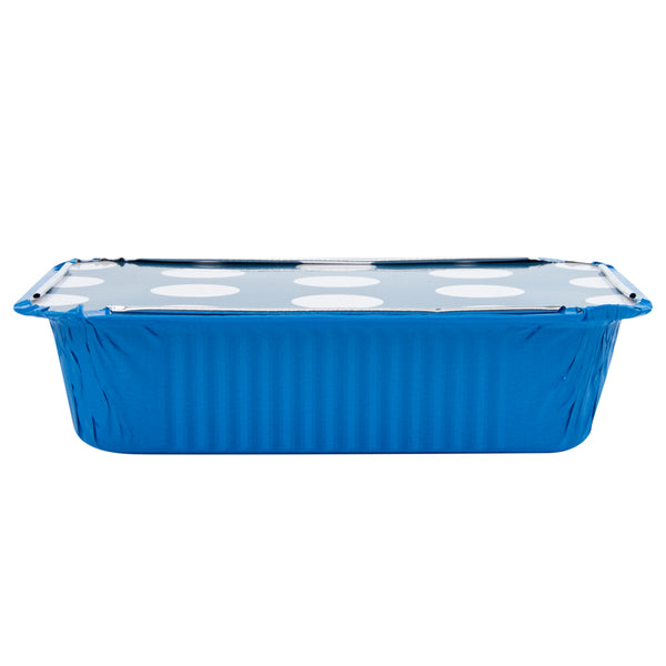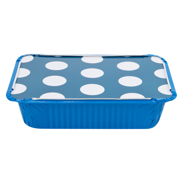 Foil Lux 16 oz Rectangle Blue Aluminum Take Out Container - Polka Dot Paper Lid - 7 1/4