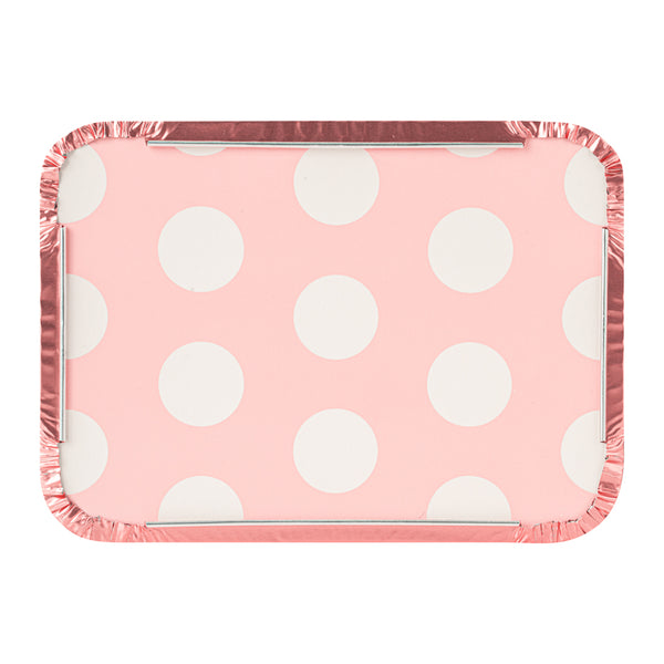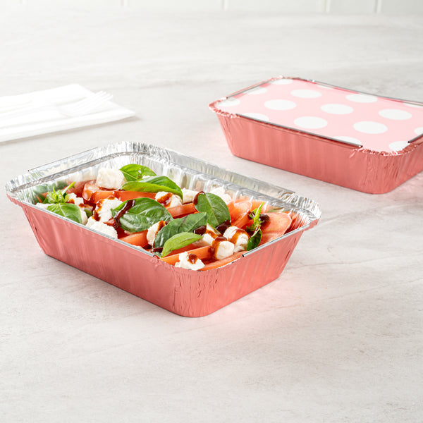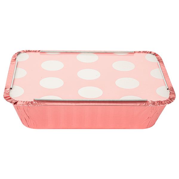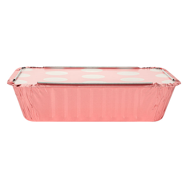 Foil Lux 16 oz Rectangle Pink Aluminum Take Out Container - with Polka Dot Paper Lid - 7 1/4