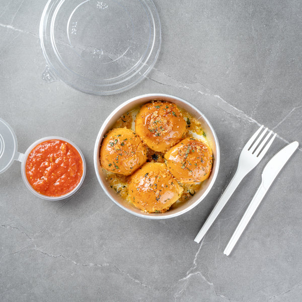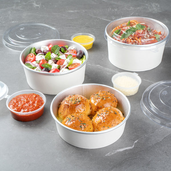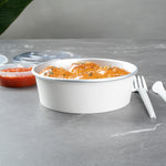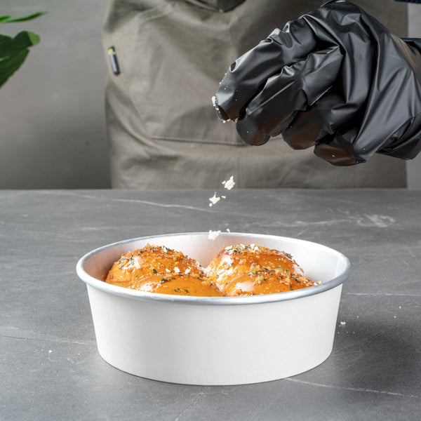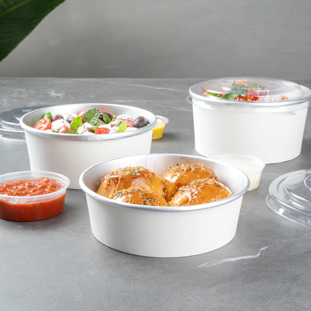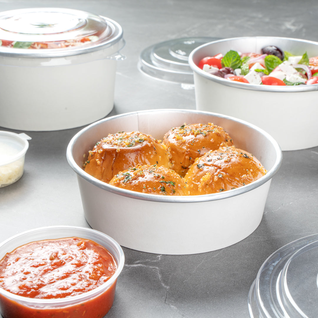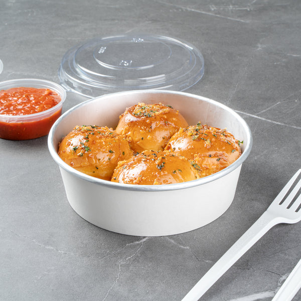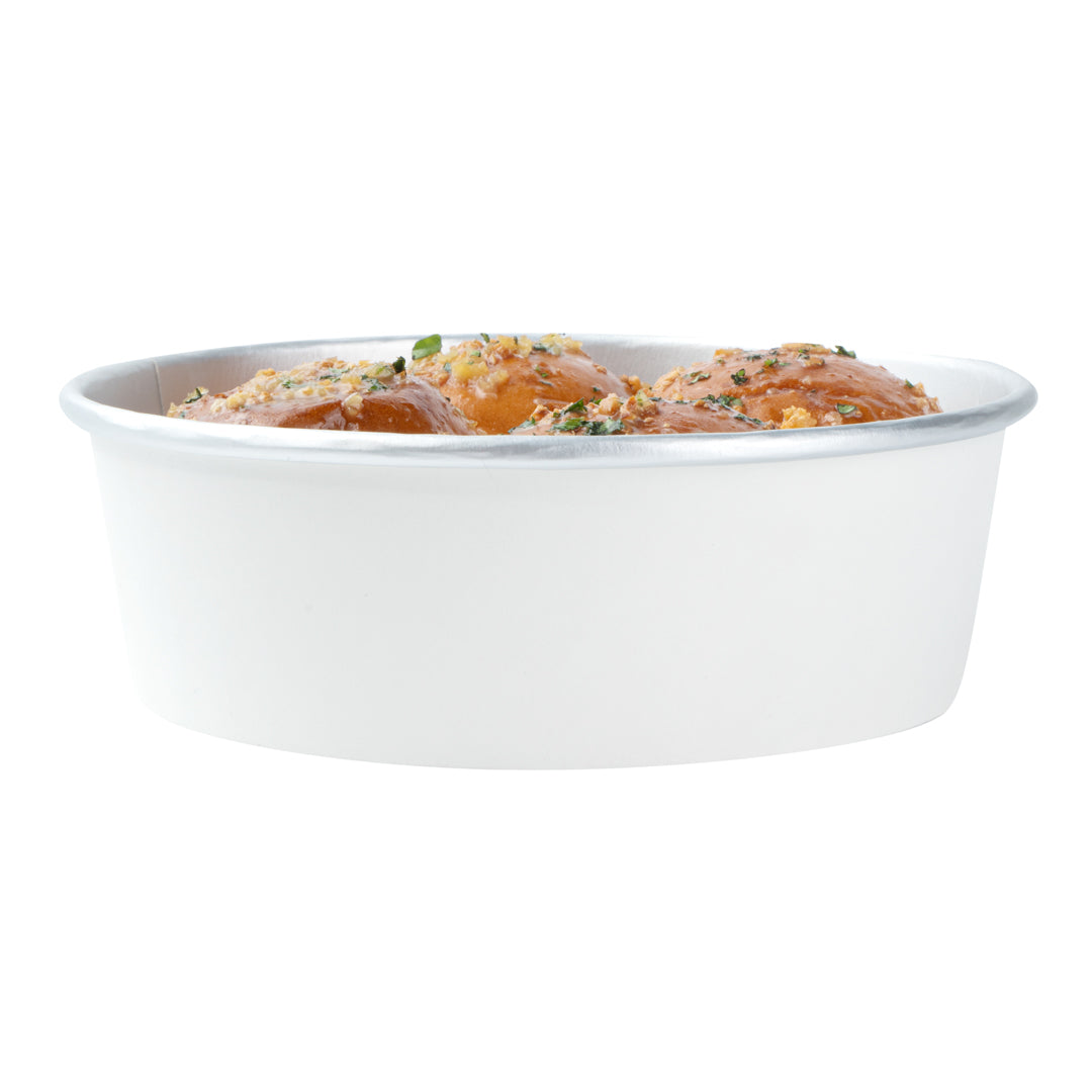 Package customers' to go orders using our Foil Lux 17-ounce White Paper Take Out Containers. Constructed with an interior foil lining, these take out containers are insulated to keep meals warmer for longer. Pair these foil take out containers with our compatible Foil Lux lids to securely cover dishes during transport (SKU: RWM0150C). Crafted from premium paper and aluminum foil, these food containers are greaseproof and perfect for serving hot or cold fare. Featuring a white finish, these take away containers provide a clean look to your establishment's to go orders. For space-saving storage in your restaurant, these take out food containers are stackable. With a total capacity of 17 ounces, these take out containers measure 6 inches in diameter by 1.75 inches in height. Sold in a 200 count box. Compatible lids are available and sold separately.