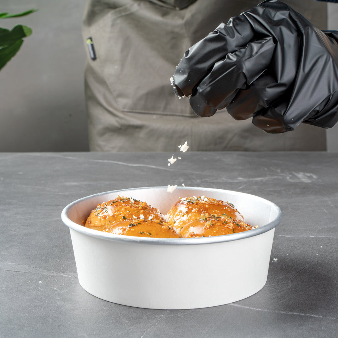 - Greaseproof lining ensures a clean presentation by preventing oils from seeping through