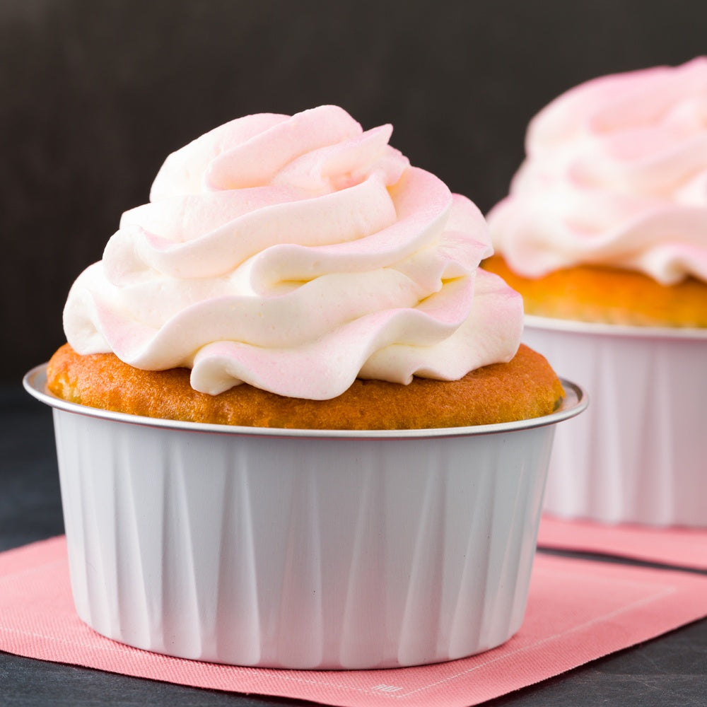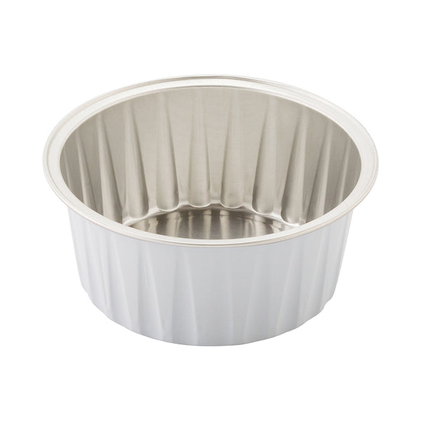 Serve creme brulees and small souffles using our Foil Lux 4-ounce Round White Aluminum Baking Cups. For food trucks or delivery services, add on our Foil Lux matching flat and dome plastic lids (SKU: RWM0089C and RWM0090C) for easy portability. Crafted from premium aluminum, these small baking cups are recyclable and ideal for any food service establishment. These small baking cups are oven-safe up to 500 F, and freezer-safe, enabling you to store your delicious desserts in hot or cold temperatures. Grease-resistant and scratch-resistant, these white baking cups ensure an easy lift for all kinds of baked goods. These pleated baking cups have a flat bottom, offering a level surface so that heat can be distributed evenly during baking. Featuring a textured design and a white finish, these baking cups provide a classic touch to the most elaborate desserts. Measuring 3.25 inches in diameter and 1.5 inches in height, these 4-ounce baking cups are perfect for cupcakes. Shipped in a 100 count box. Lids available and sold separately.