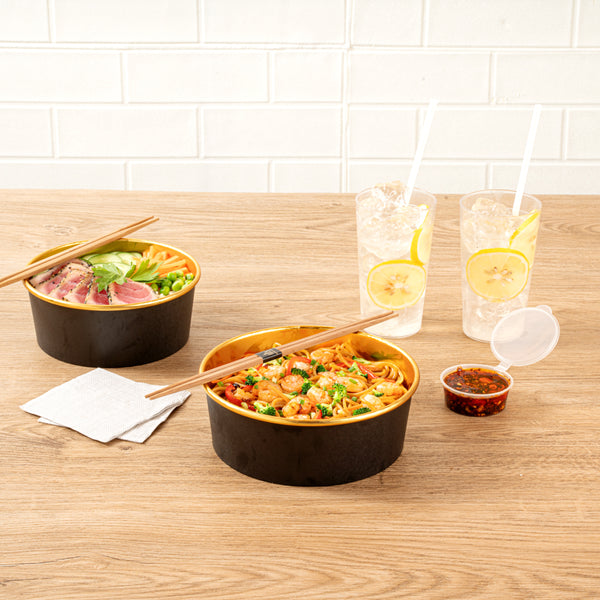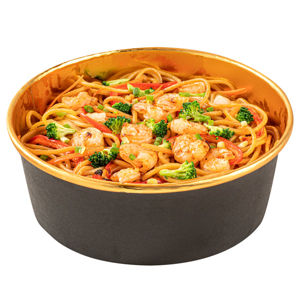 45 OZ BLACK AND GOLD PAPER TAKE OUT CONTAINER - WITH FOIL INTERIOR