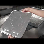 Prep, bake, and serve food with our Foil Lux Aluminum Full Size Deep Steam Table Pans. Made from high-quality aluminum, these full-size steam table pans are strong and sturdy to hold up to 346 ounces of your casseroles or lasagnas. Match these full steam pans with our compatible lid (SKU: RWM0120S) to keep food from spilling and creating a mess during transport. These full-size foil pans are oven-safe so you can easily bake or broil entrees. Plus, they're also freezer-safe to store leftovers in the refrigerator or freezer. To save space in your storage area, these chafing dish steam pans are conveniently stackable. For avoiding the hassle of cleaning up after events, these aluminum steam table pans are recyclable. These disposable steam table pans measure 20.75 inches long by 12.75 inches wide by 3.5 inches tall. Sold in a 25 count box. Lids are available and sold separately.