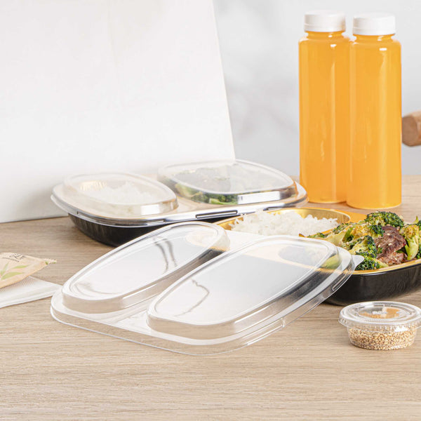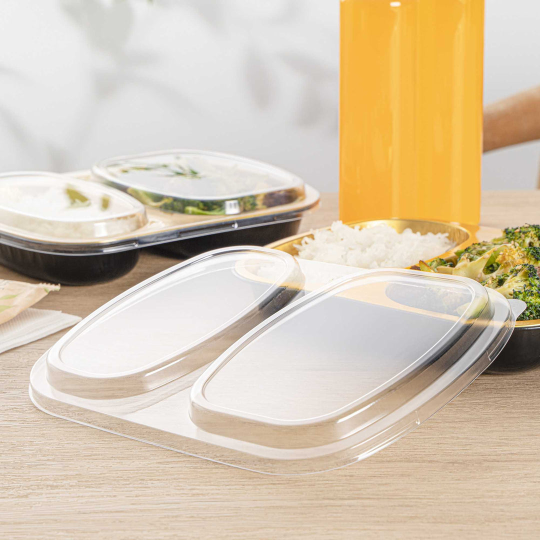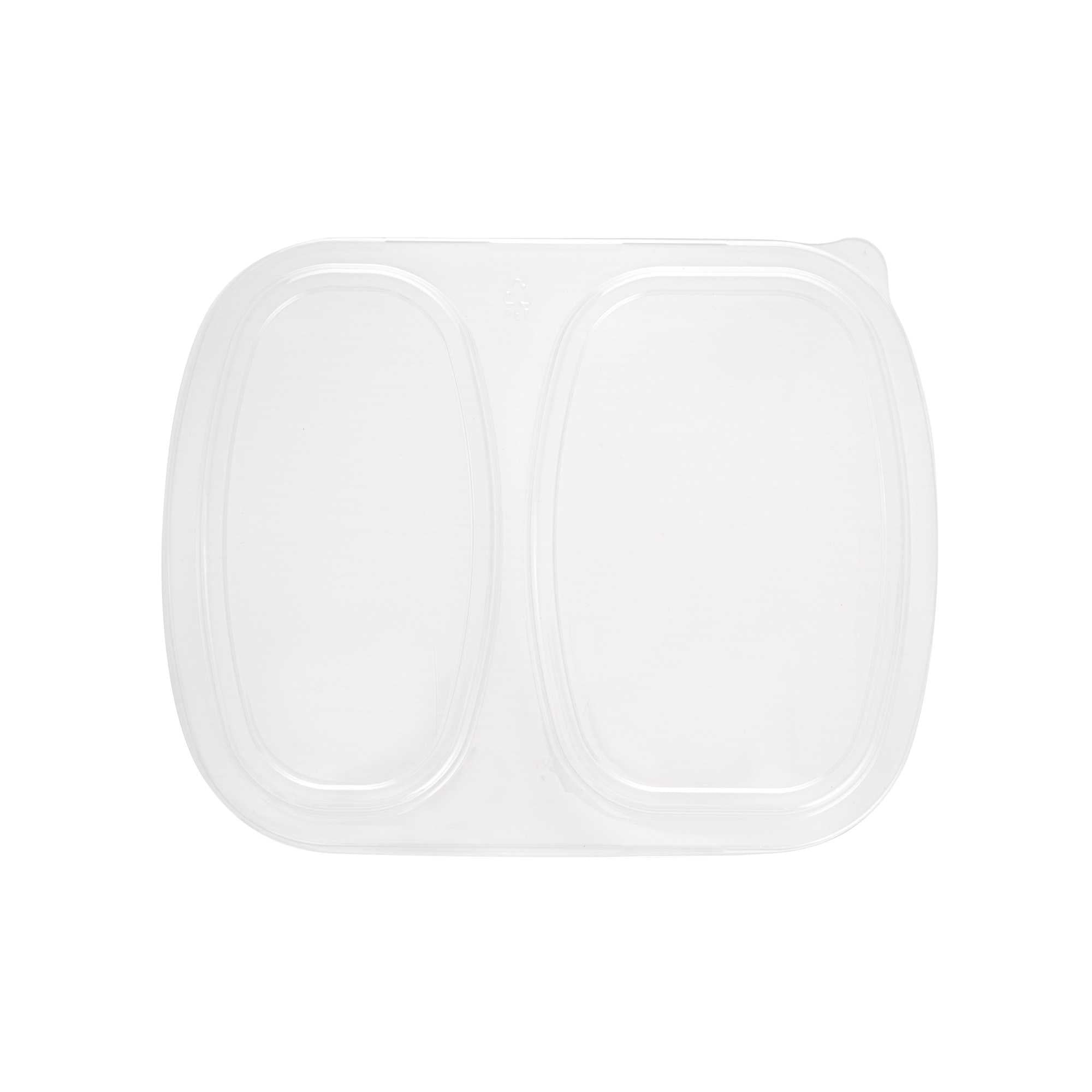 CLEAR PLASTIC FLAT LID - FITS 2-COMPARTMENT FOIL CONTAINER