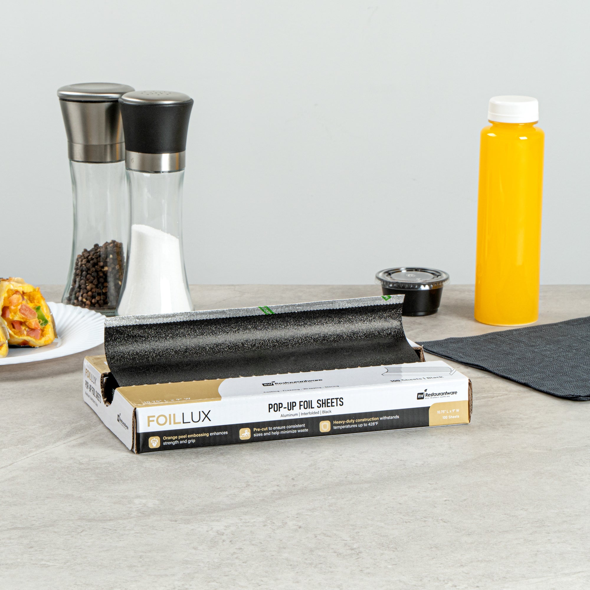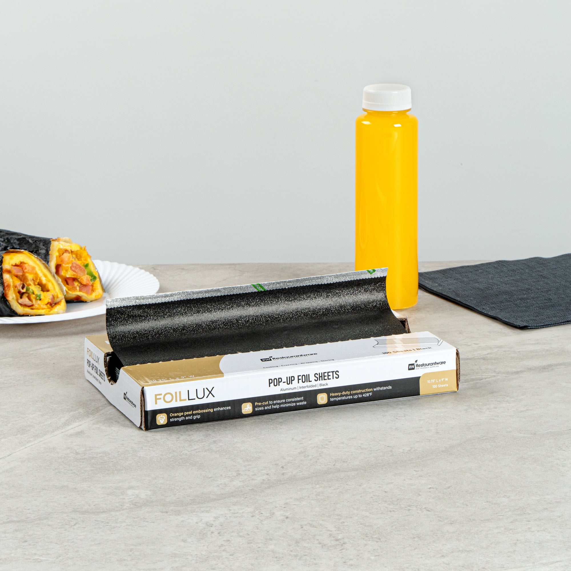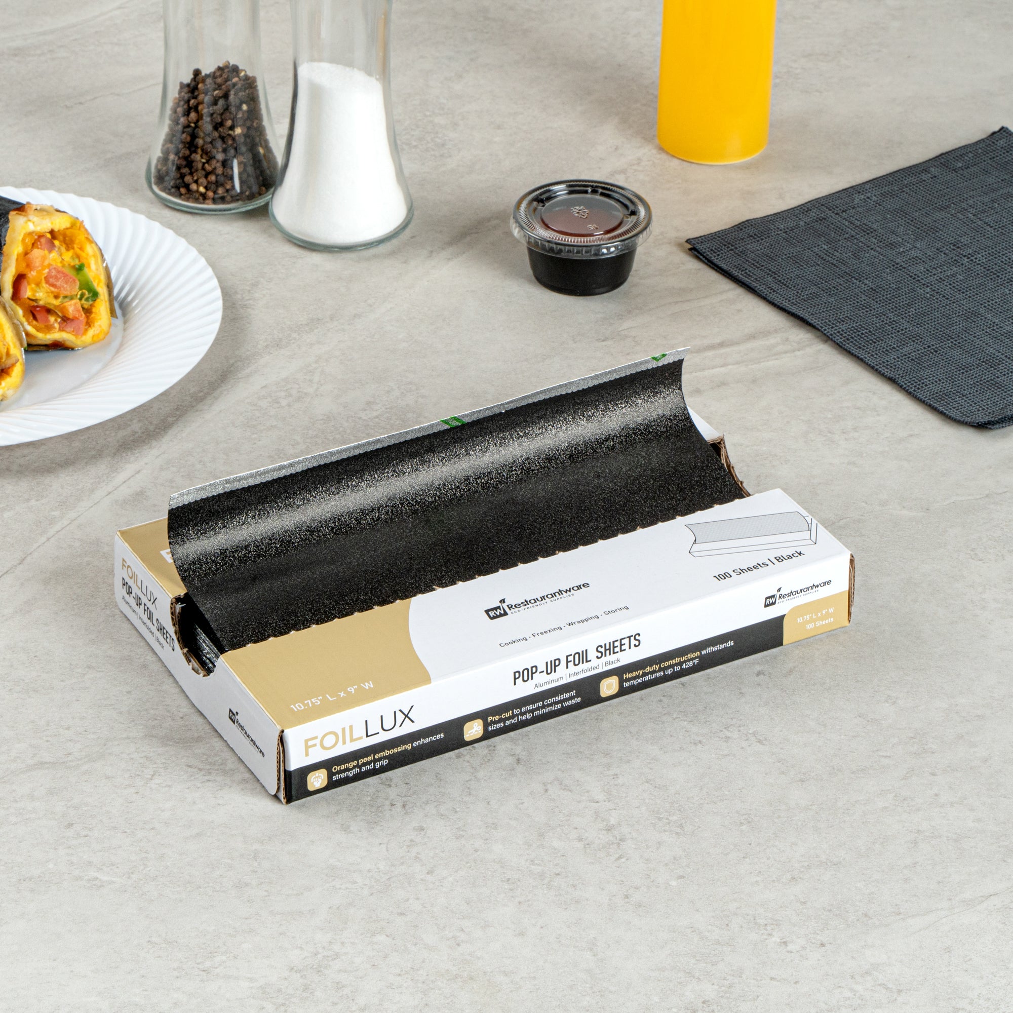 Enhance food presentation with sleek and efficient wrapping solutions. Foil Lux Pop-Up Aluminum Foil Sheets provide a robust aluminum construction that ensures reliable performance in wrapping and insulating various food items, making them ideal for busy kitchens. The interfolded design of these pop-up foil wrap sheets allows quick access, saving time and effort during peak service hours. Featuring orange peel embossing, these aluminum foil sheets offer a firm grip, reducing spills and enhancing operational efficiency. The sheets' durable construction maintains optimal heat retention, thus improving the texture of wrapped foods like sandwiches and burgers. With dimensions of 10.75 inches by 9 inches, these sandwich wrap foil sheets are suitable for a range of applications, from wrapping takeout items to lining serving baskets. Equip your foodservice establishment with these versatile sheets to ensure consistent results. Each order includes 2000 Foil Lux Pop-Up Aluminum Foil Sheets.