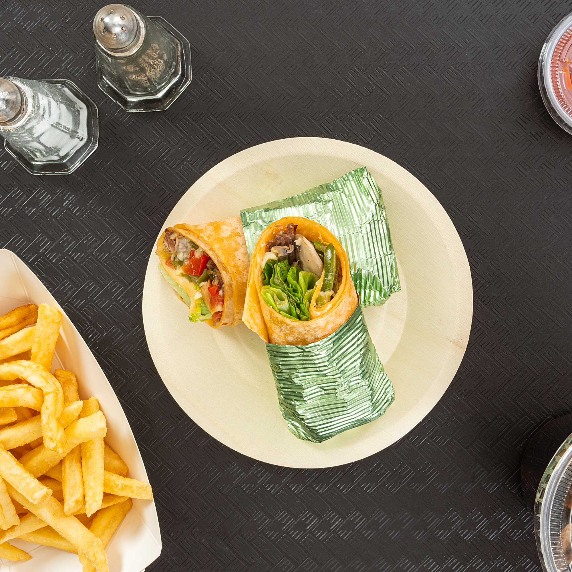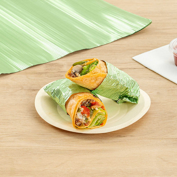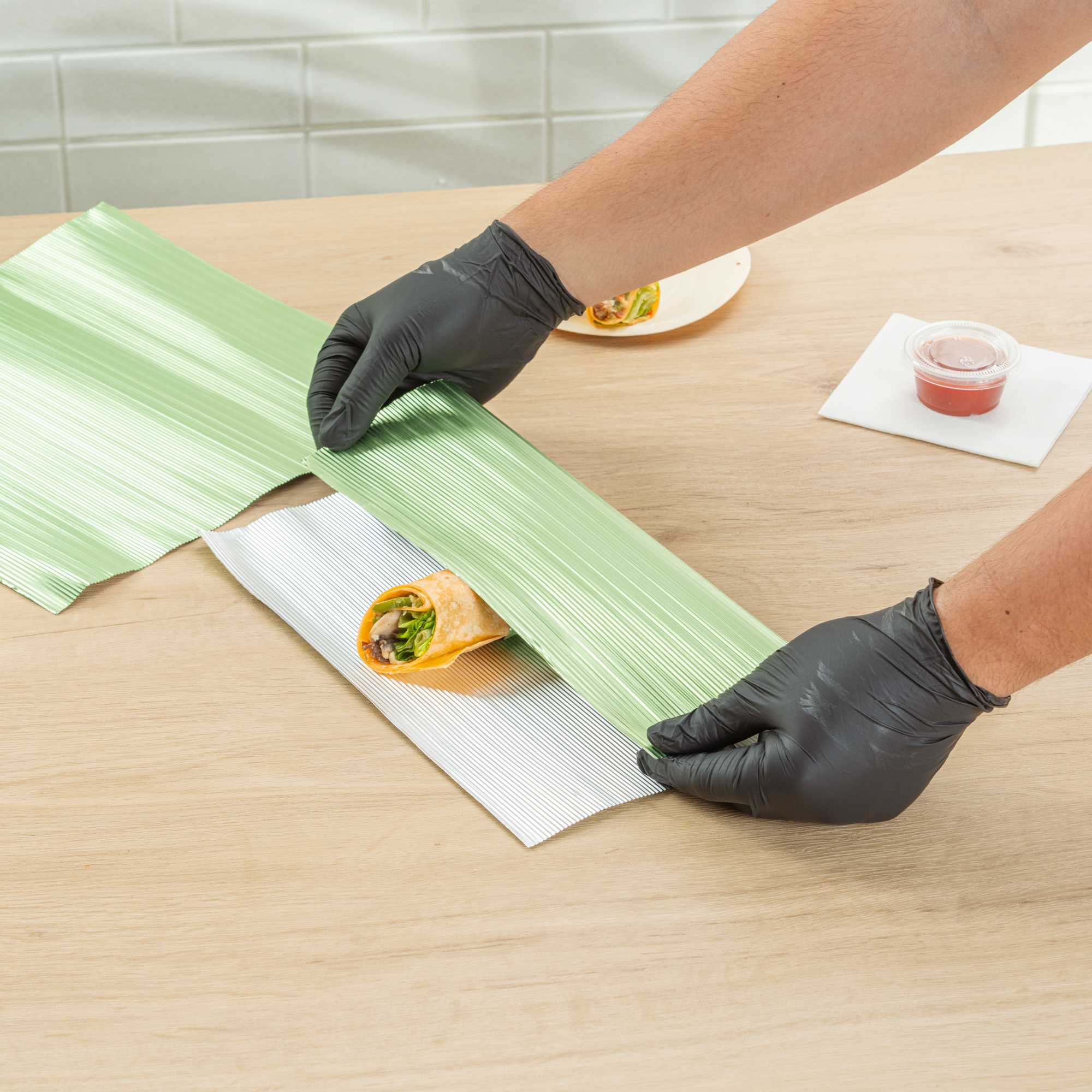 Keep hamburgers and sandwiches mess-free and delicious with these Foil Lux Green Ripple Aluminum Wrap and Basket Liners. Crafted from micro-rippled aluminum, these insulated hamburger wrapping papers are built to lock in flavor and keep prepared foods enjoyably warm. These multi-functional foil sheets can be used as heat-insulating deli sandwich wrap papers or grease-resistant basket liners. Featuring a bright apple green finish, these insulated food wraps are perfect to add a touch of eye-catching pizzazz to your dishes and attract your customers' attention. Ideal for fast-paced restaurants and delis, these foil sheets are conveniently pre-measured and cut into versatile 12 inch by 12 inch squares. Sold in a 500 count box.