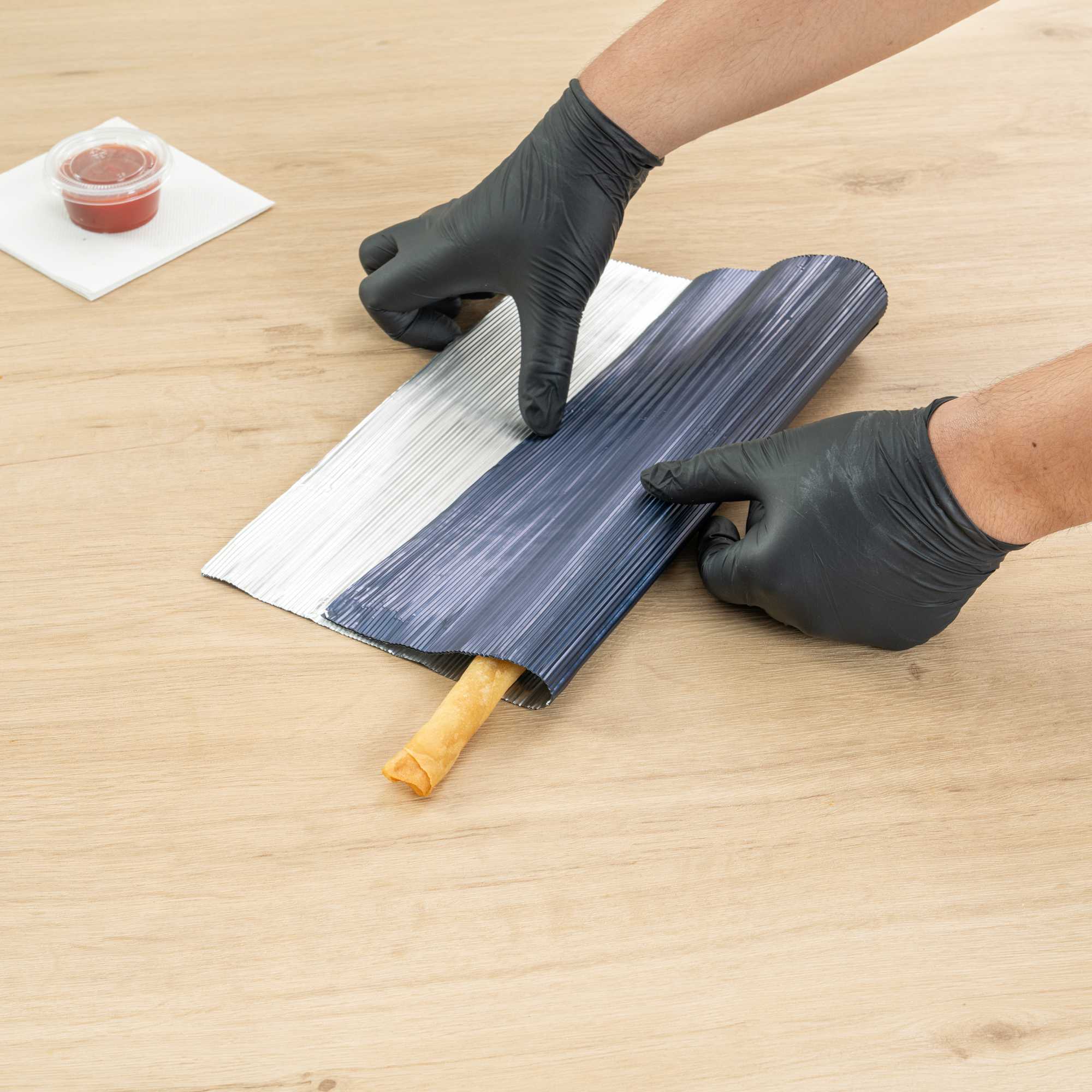Give your sandwiches and deli selections an attention-grabbing makeover with these Foil Lux Navy Ripple Aluminum Wraps and Basket Liners! Designed to be conveniently multi-functional, these insulated food wraps can either be used as heat-insulating sandwich papers or greaseproof basket liners. Ideal as hamburger wrapping papers or burrito wraps, these foil sheets feature a micro-rippled aluminum construction to keep your prepared foods enjoyably warm and flavorful. These foil wraps are premeasured and cut into 12 inch by 12 inch squares to ensure quick and easy service for fast-paced restaurants and delis. Featuring a contemporary navy blue finish, these wraps are sure to add an extra touch of style to your dishes. Sold in a bulk 500 count box.