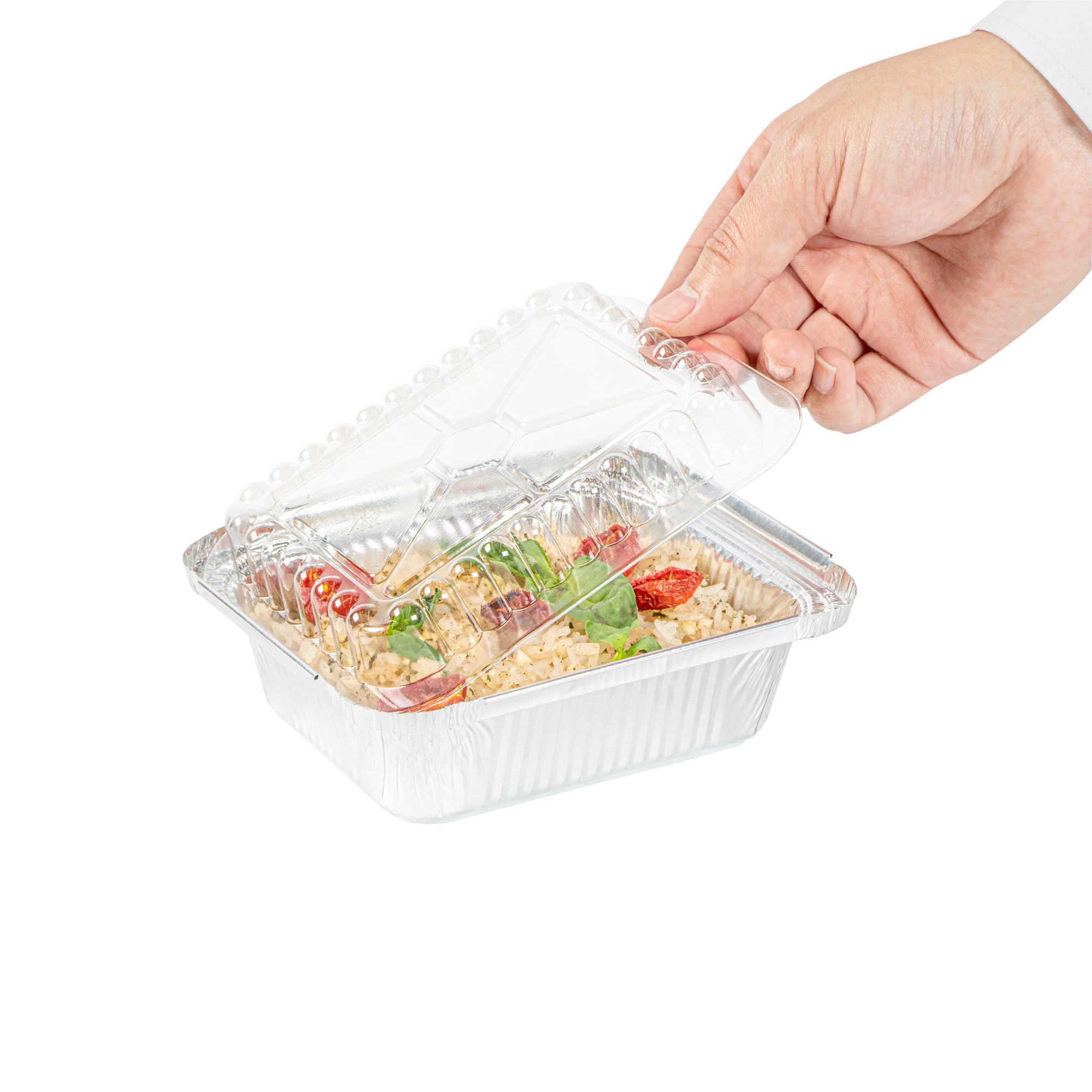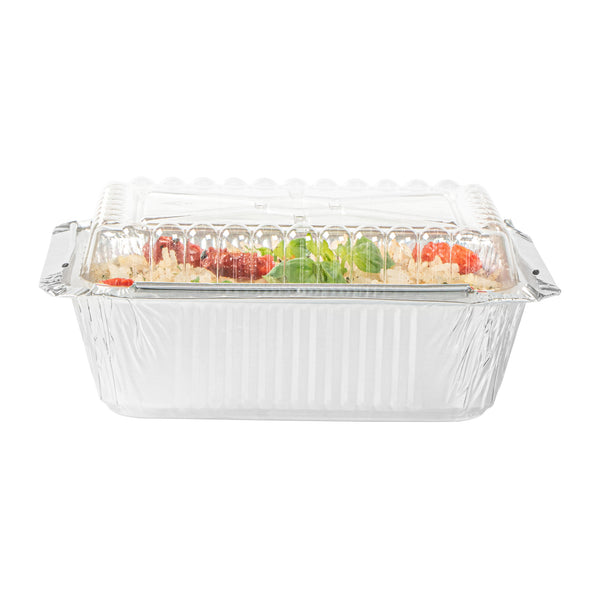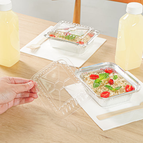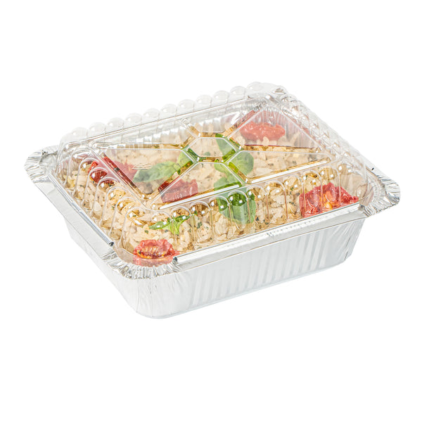 Ensure flawless presentation with our Foil Lux Dome Shape Foil Pan Cover. This plastic dome lid is designed to securely seal containers, preventing food contamination while offering a clear, unobstructed view of your culinary creations. Its dome shape not only protects but also elegantly displays your dishes, making it ideal for caterers and event planners needing a stylish and functional disposable foil pan cover. The crystal clear finish highlights your dishes beautifully, enticing guests with every glance. Measuring 5.75 inches in length, 4.5 inches in width, and 0.8 inches in height, these covers are expertly crafted from durable plastic to withstand the rigors of foodservice environments. Elevate your food presentation while ensuring safety and ease with this essential foil pan cover. Sold in a 100 count box.