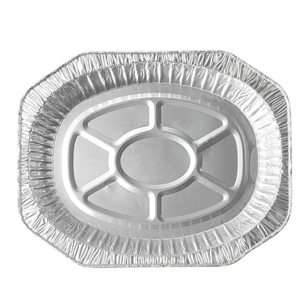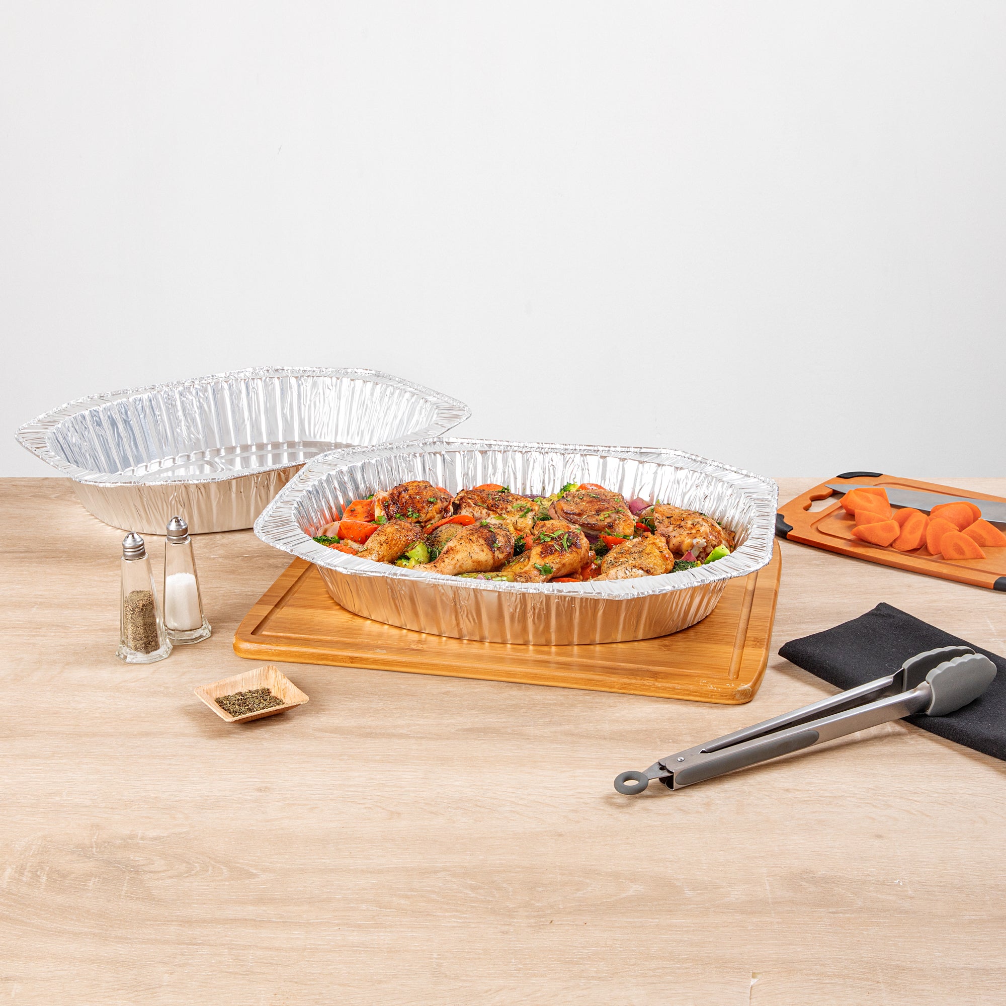 Enhance your kitchen's efficiency with versatile and reliable cookware. Foil Lux Aluminum Baking Pans offer oven and freezer compatibility, supporting your cooking, baking, and storage needs with ease. These disposable aluminum pans are crafted from thick aluminum foil, ensuring even heat distribution for perfectly consistent cooking results every time. Their stackable design maximizes space in your kitchen or pantry, allowing you to store them conveniently without clutter. Measuring 17.6 inches in length, 14 inches in width, and 3.1 inches in height, these aluminum roasting pans are ideal for a variety of dishes, from roasting meats to baking desserts. Recyclable and disposable, these pans provide an eco-friendly and time-saving solution for busy foodservice operations. Elevate your culinary capabilities with these durable and versatile pans, perfect for any professional kitchen. Sold in a 10 count box.