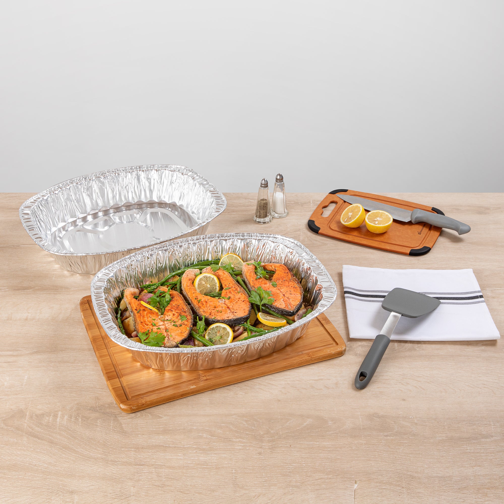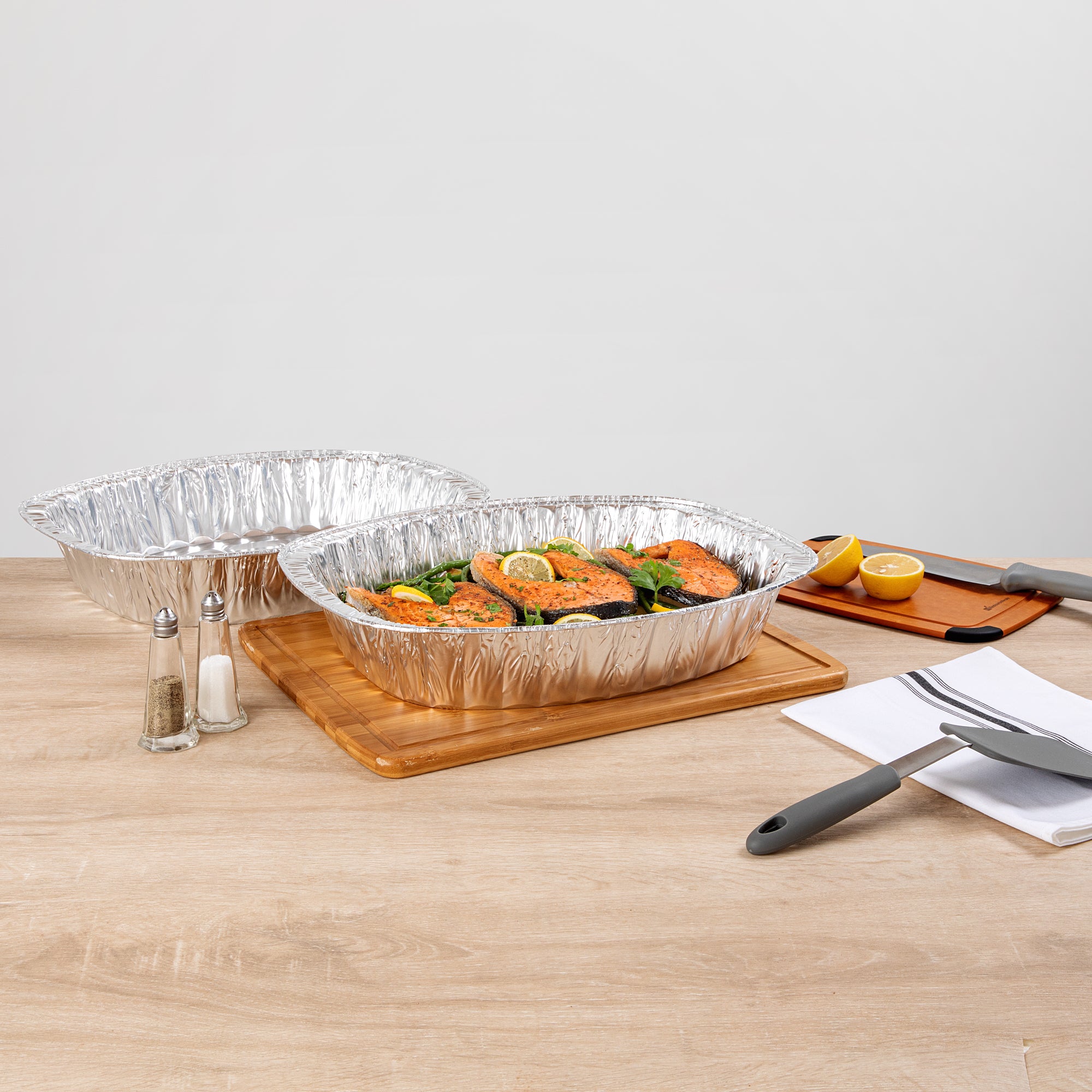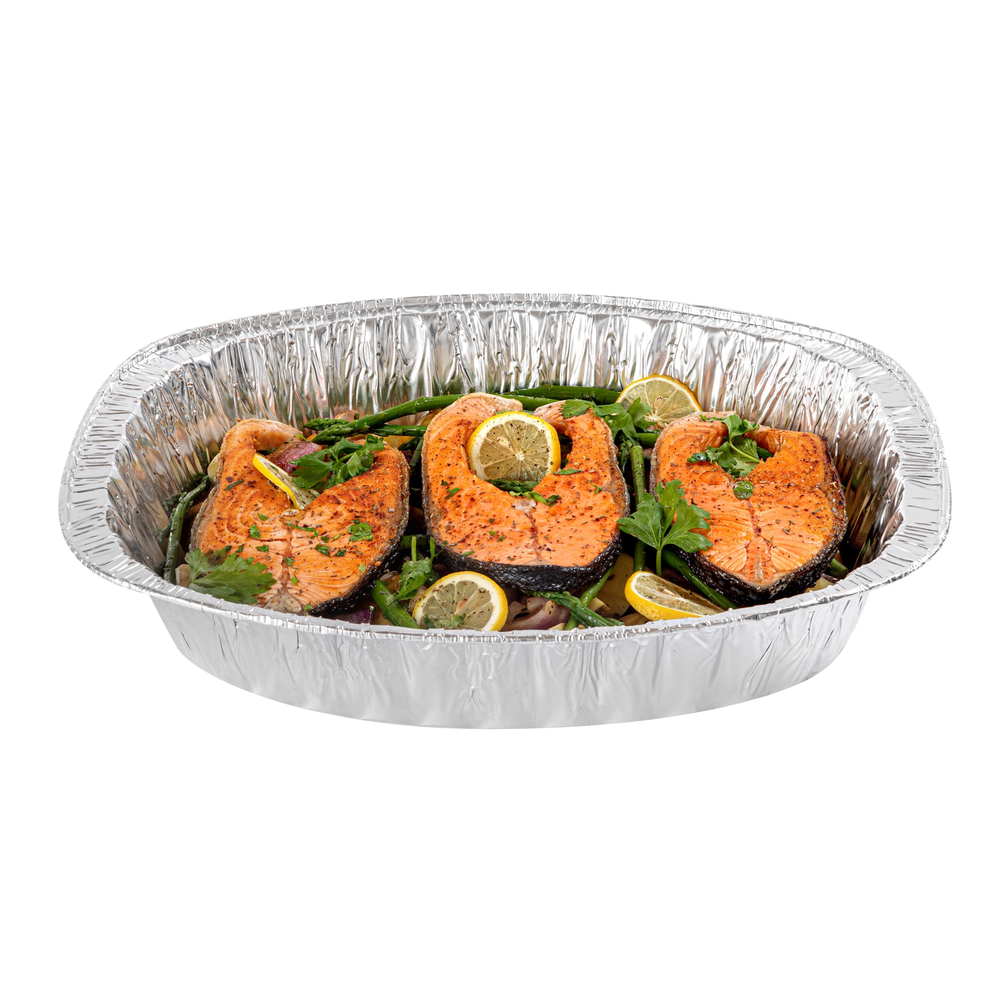 Enhance your culinary operations with versatile cooking solutions. The Foil Lux Aluminum Tray offers oven and freezer compatibility, making it ideal for a wide range of cooking, baking, and storage needs. Designed with stackable convenience, these trays maximize your kitchen and pantry space, ensuring efficient organization. Crafted from thick aluminum foil, each tray provides even heat distribution for consistent cooking results, making it an essential foil pan for professional kitchens. With dimensions of 17.9 inches in length, 14.2 inches in width, and 3.3 inches in height, this baking tray is perfect for handling various dishes while maintaining its durable structure. Its recyclable and disposable nature supports sustainable practices, aligning with eco-conscious foodservice operations. Elevate your culinary presentations with this aluminum tray that meets both practical and environmental demands. Sold in a 10 count box.