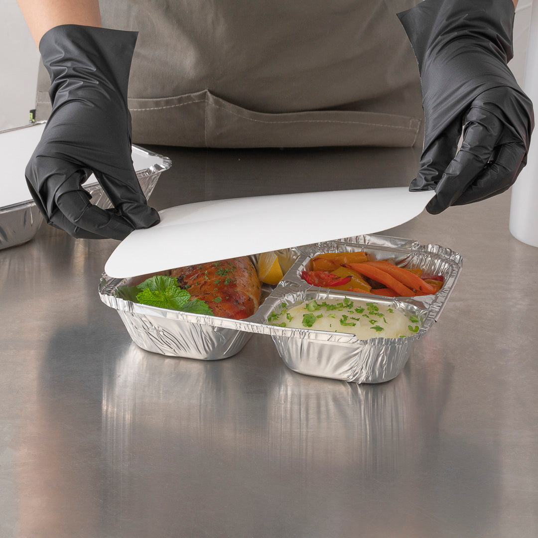 WHITE PAPER FLAT FOIL-LAMINATED BOARD LID - FITS 3-COMPARTMENT TRAY