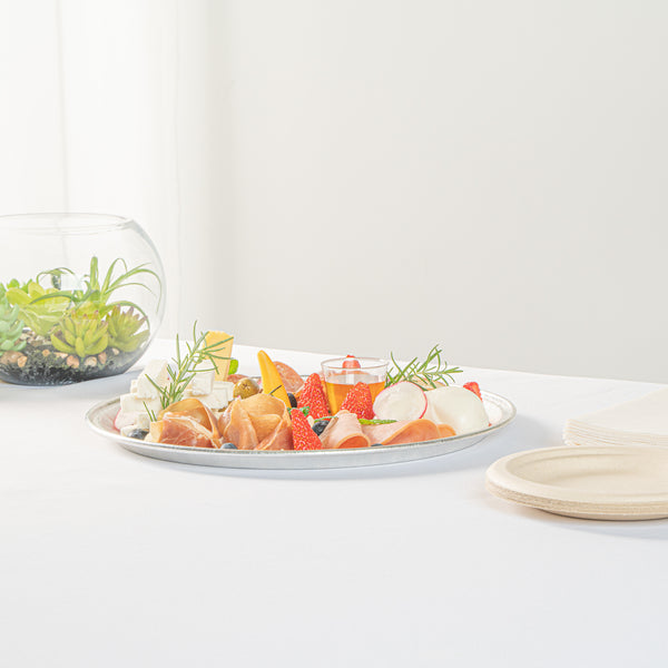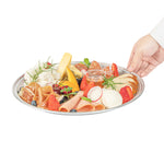 Ensure your pizzas stay fresh and delicious with our Foil Lux Freshness-Sealing Pizza Tray. This 12 inch pizza tray, crafted from durable aluminum, features a compatible lid that securely seals to maintain freshness during storage or transport, perfect for busy pizzerias and catering events. Its intricate engraved pattern not only elevates the presentation of your dishes but also makes each serving an irresistibly appealing centerpiece, making it ideal for round foil catering trays. The premium aluminum construction offers exceptional durability, capable of withstanding the demands of rigorous catering environments, and is recyclable and disposable, providing a sustainable and convenient solution for disposable serving platters. Enhance your foodservice's efficiency and presentation by integrating these trays into your operations today. Sold in a 50 count box.