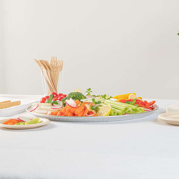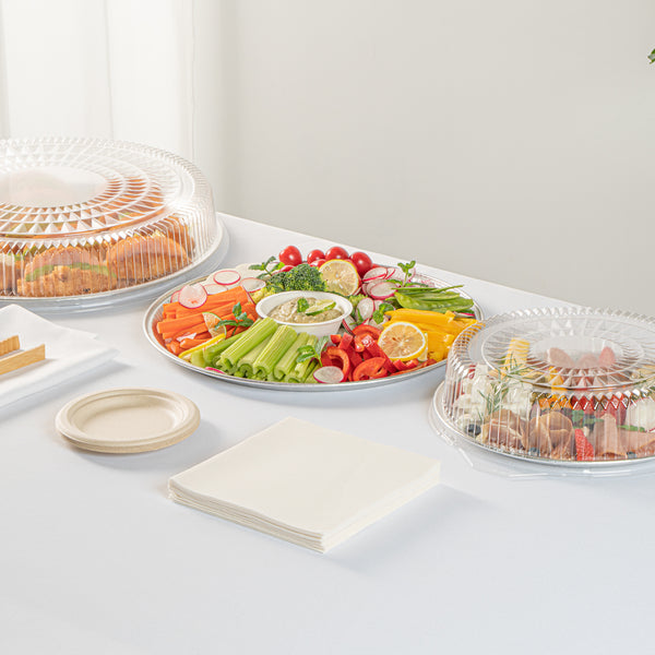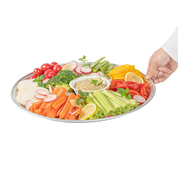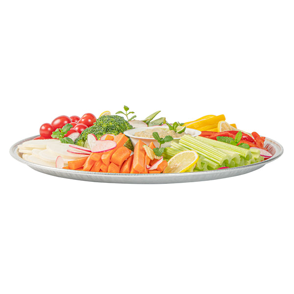 Ensure your pizza stays fresh and delicious with our Foil Lux Freshness-Seal Pizza Tray. This 16 inch pizza tray features a compatible lid that securely seals to maintain freshness during transport or storage, making it ideal for busy pizzerias and catering businesses. Crafted from premium aluminum, this round foil catering tray offers exceptional durability, perfectly suited for rigorous foodservice use. The intricate engraved pattern not only enhances the presentation of your culinary creations but also makes every dish irresistibly appealing at events. With a size of 16 inches by 16 inches and a height of 0.8 inches, this aluminum serving tray is cold food friendly, oven safe, and freezer-safe, providing versatility for both hot and cold offerings. Plus, it’s recyclable, supporting your commitment to sustainability. Elevate your foodservice operation with this indispensable 16 inch pizza tray. Sold in a 20 count box.