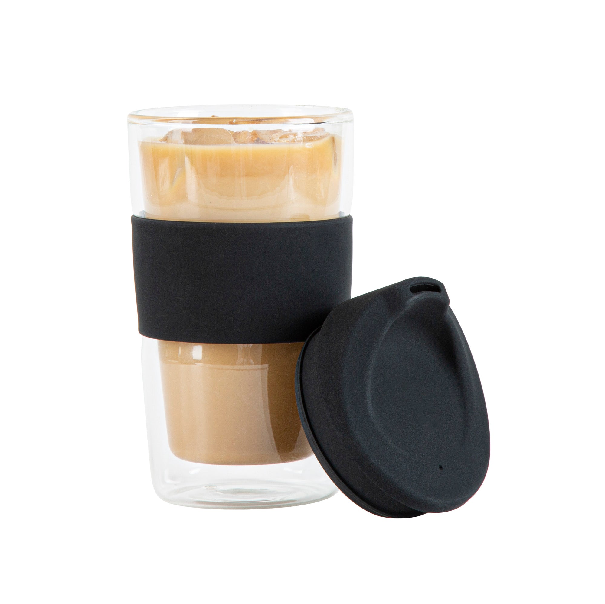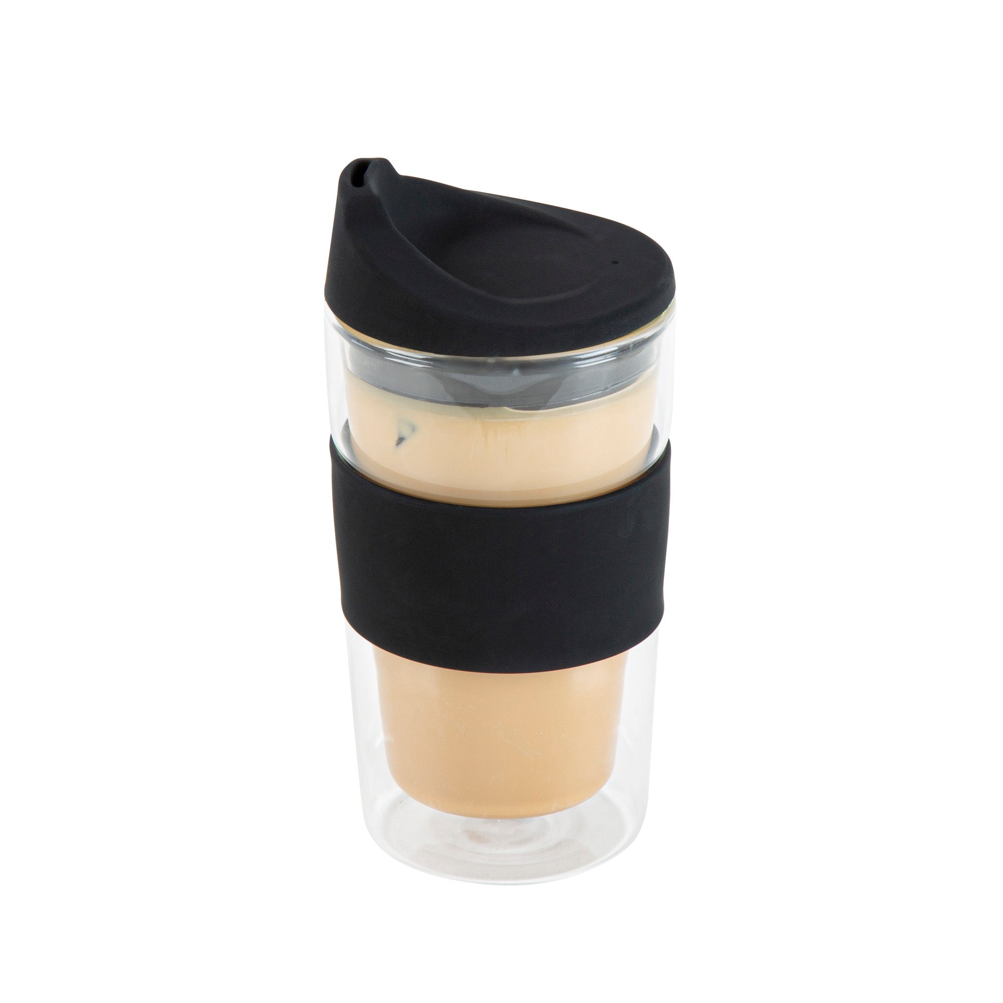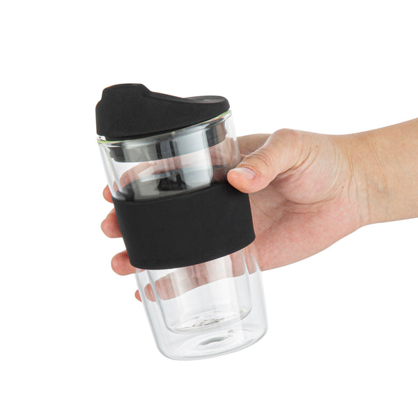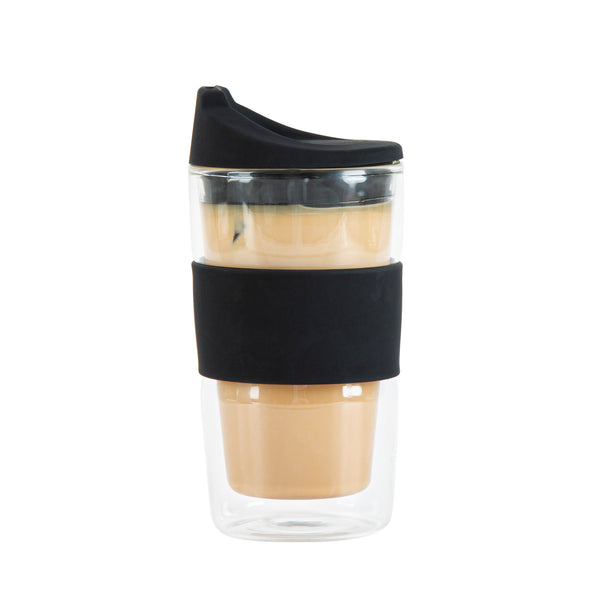 12 OZ GLASS TRAVEL MUG - DOUBLE WALL, BOROSILICATE