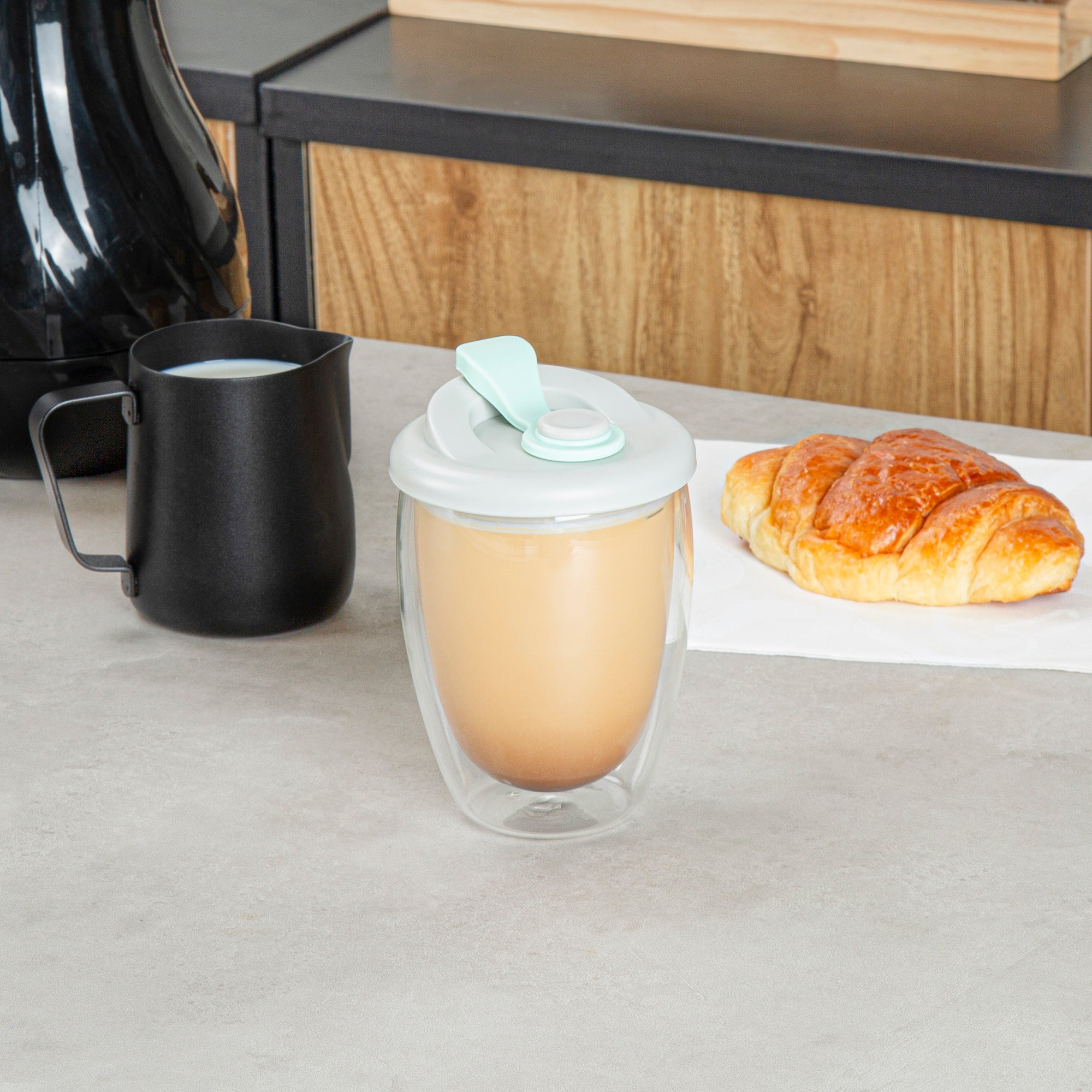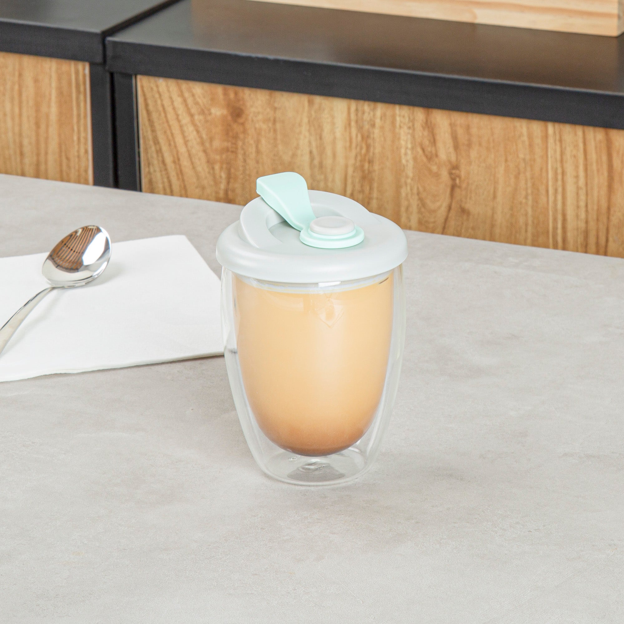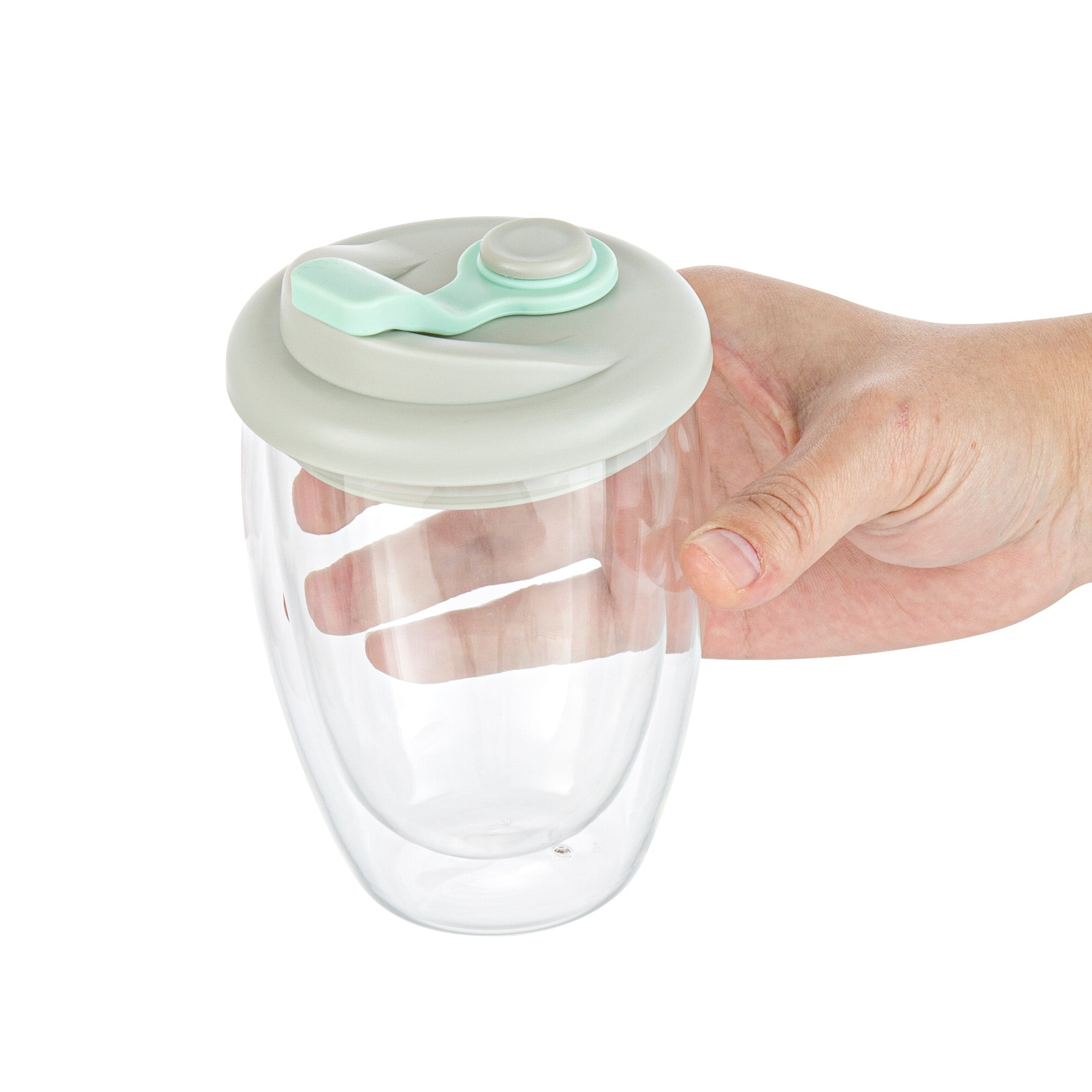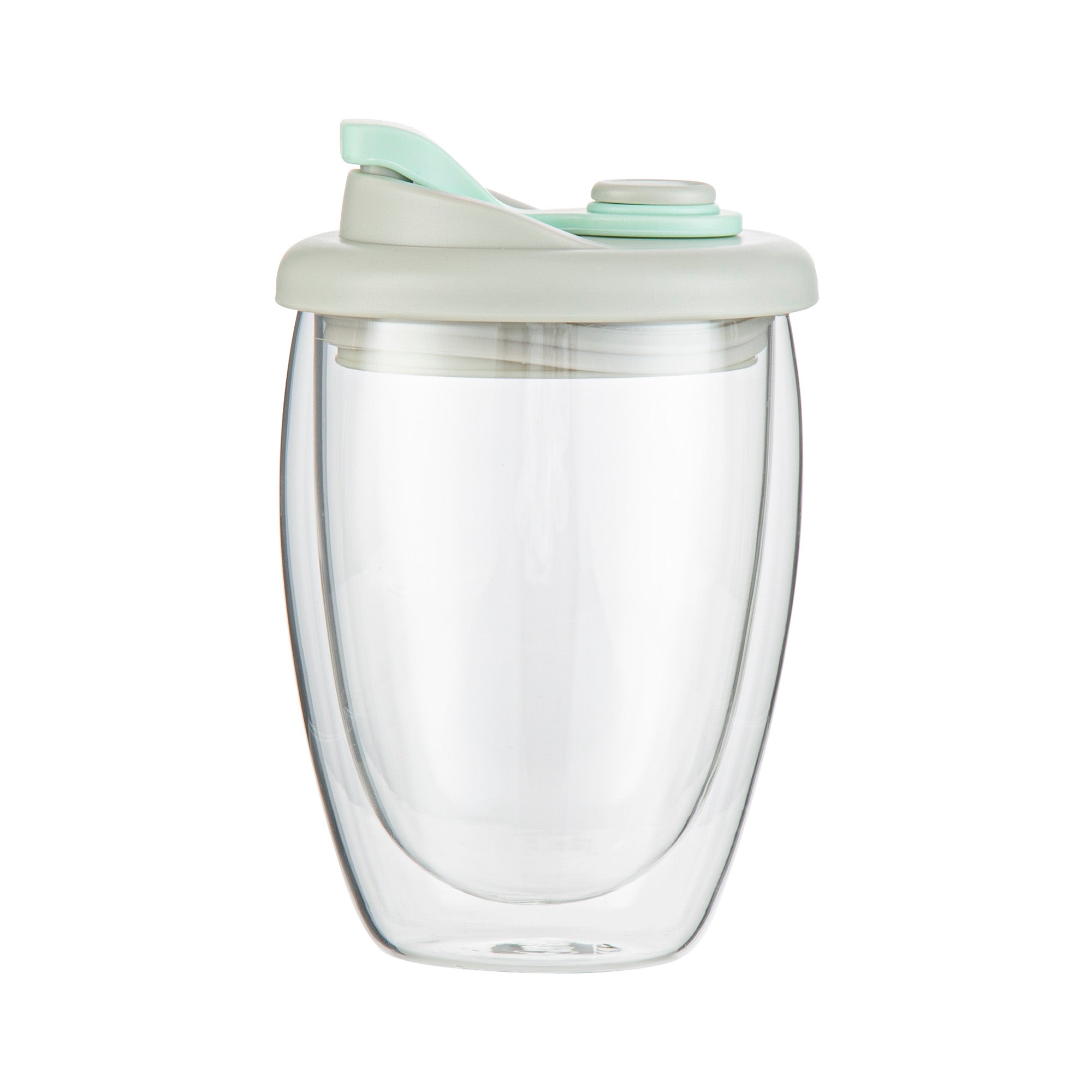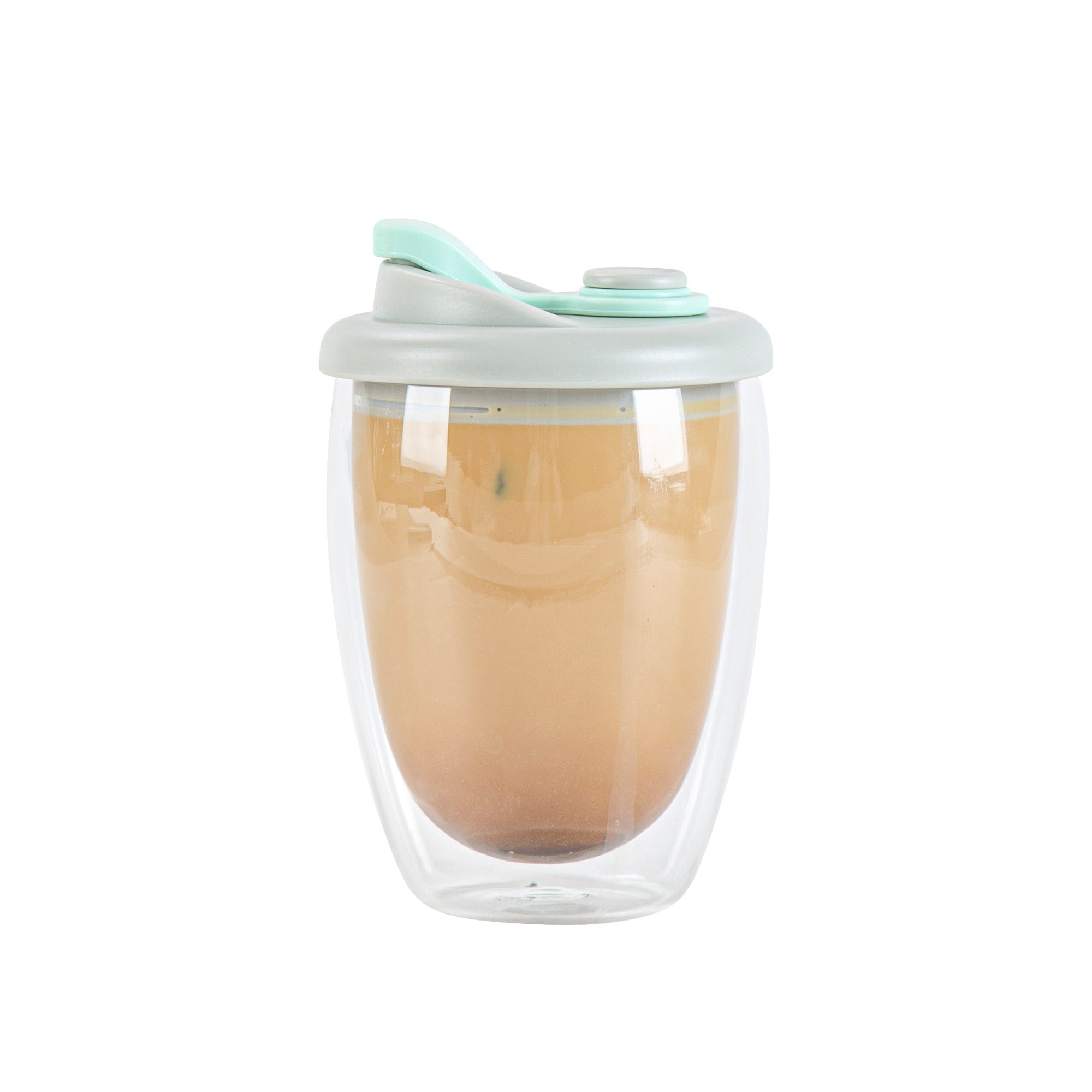 12 OZ GLASS TRAVEL MUG - DOUBLE WALL, BOROSILICATE
