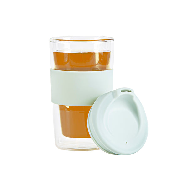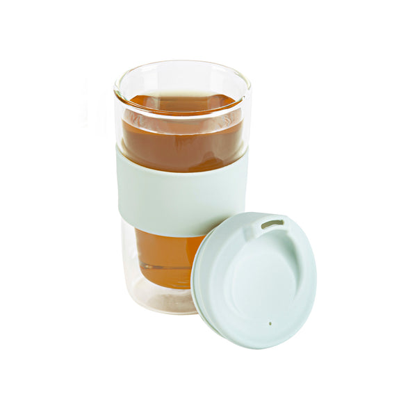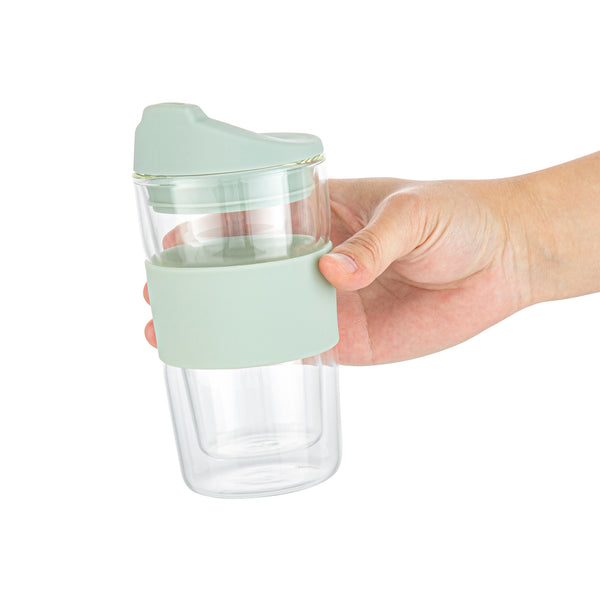 12 OZ GLASS TRAVEL MUG - DOUBLE WALL, BOROSILICATE
