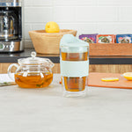Forma Professional 12 oz Glass Travel Mug - Double Wall, Borosilicate, with Mint Green Lid and Sleeve - 10 count box