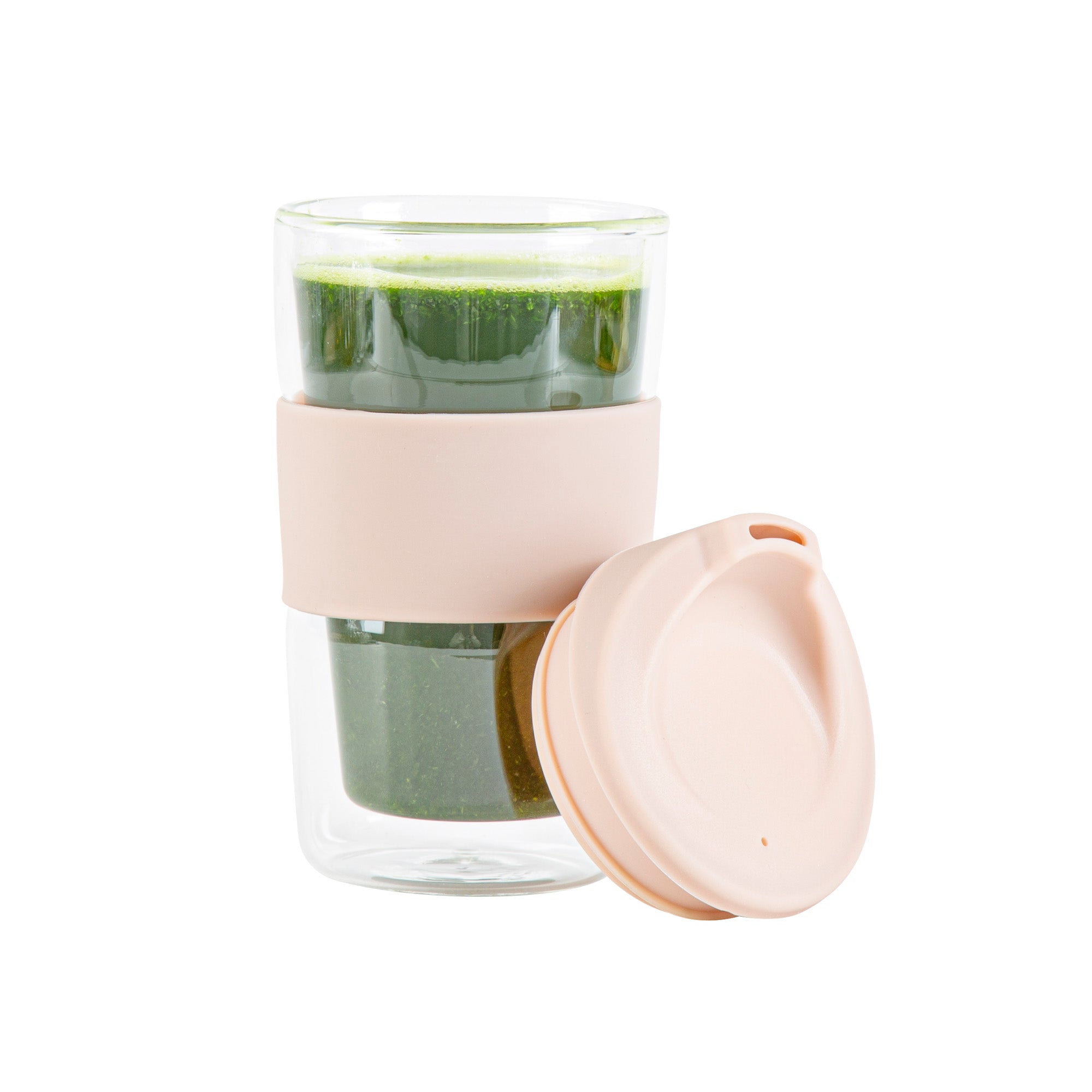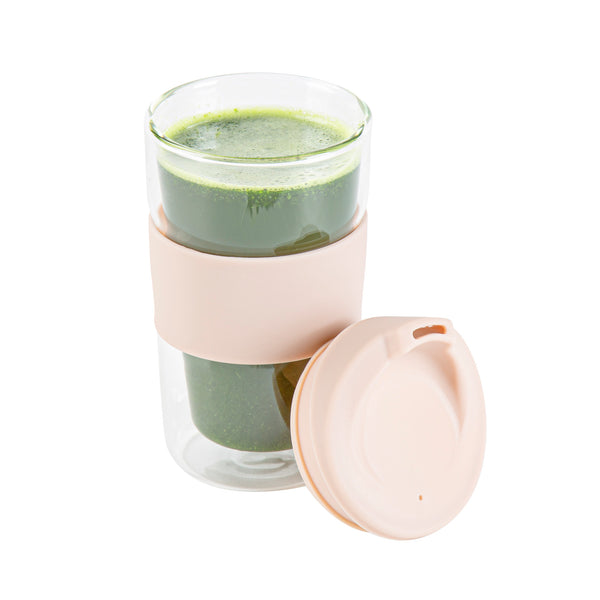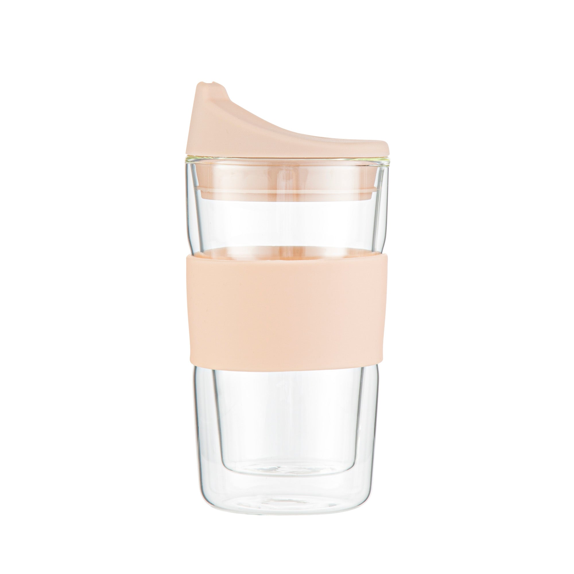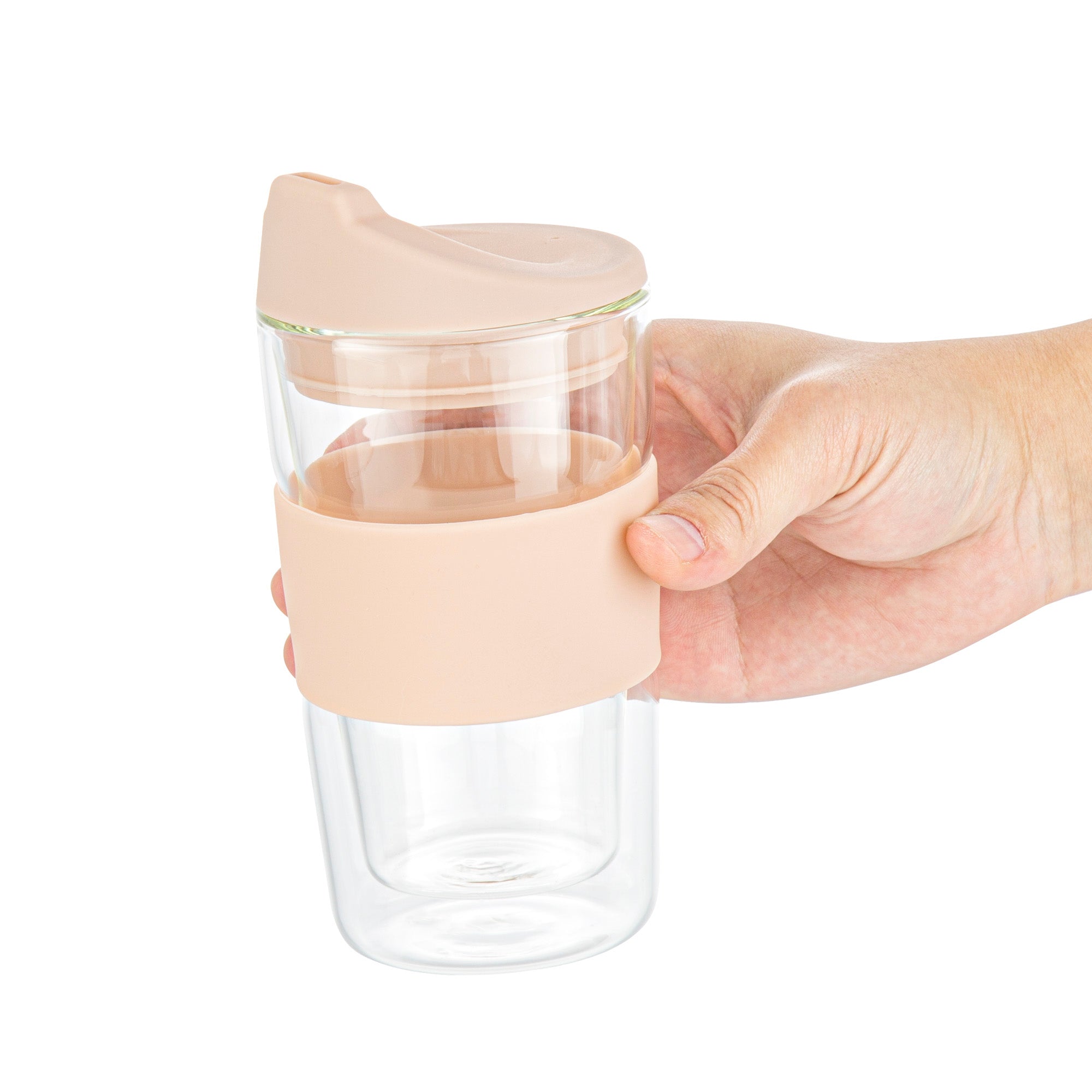 12 OZ GLASS TRAVEL MUG - DOUBLE WALL, BOROSILICATE
